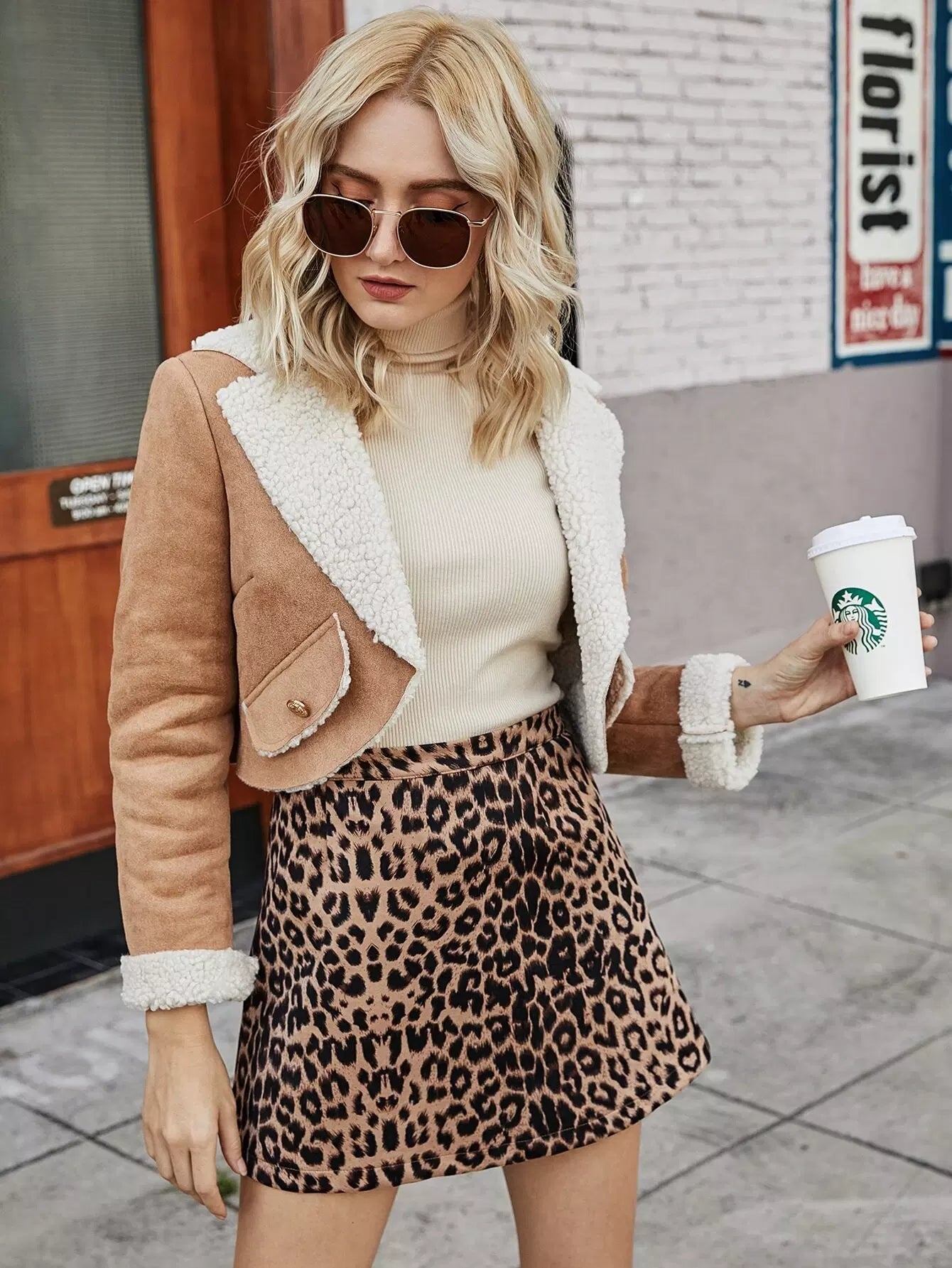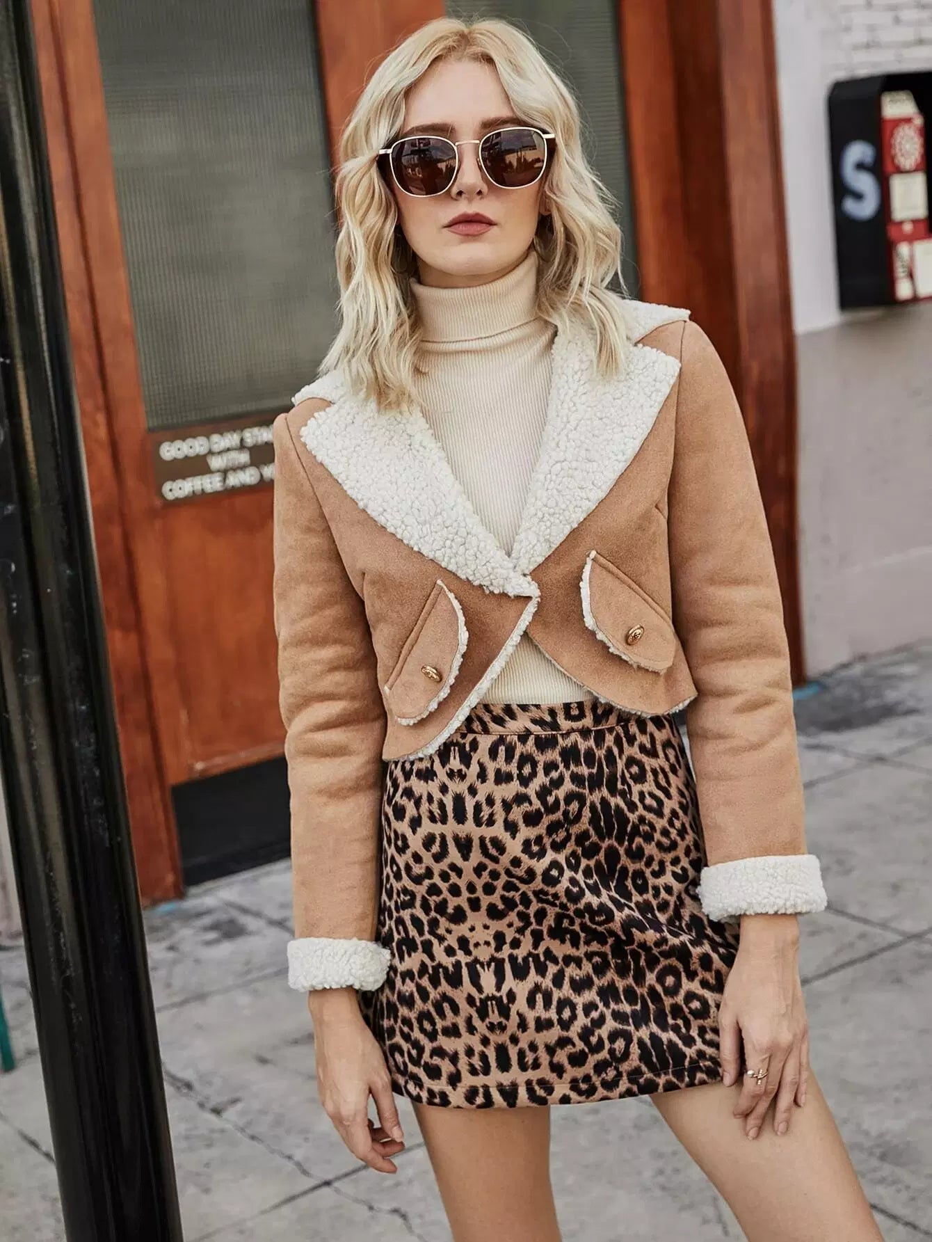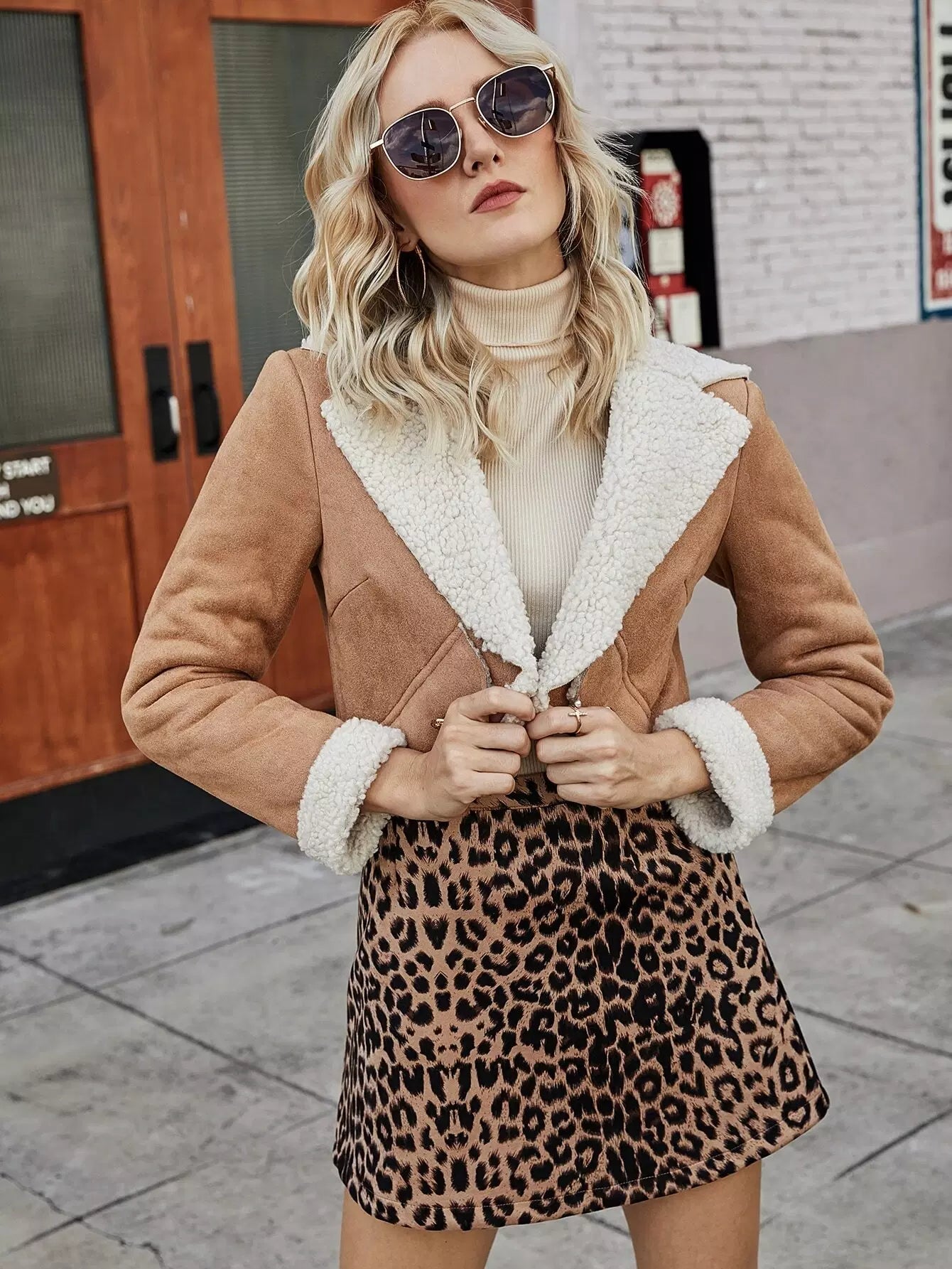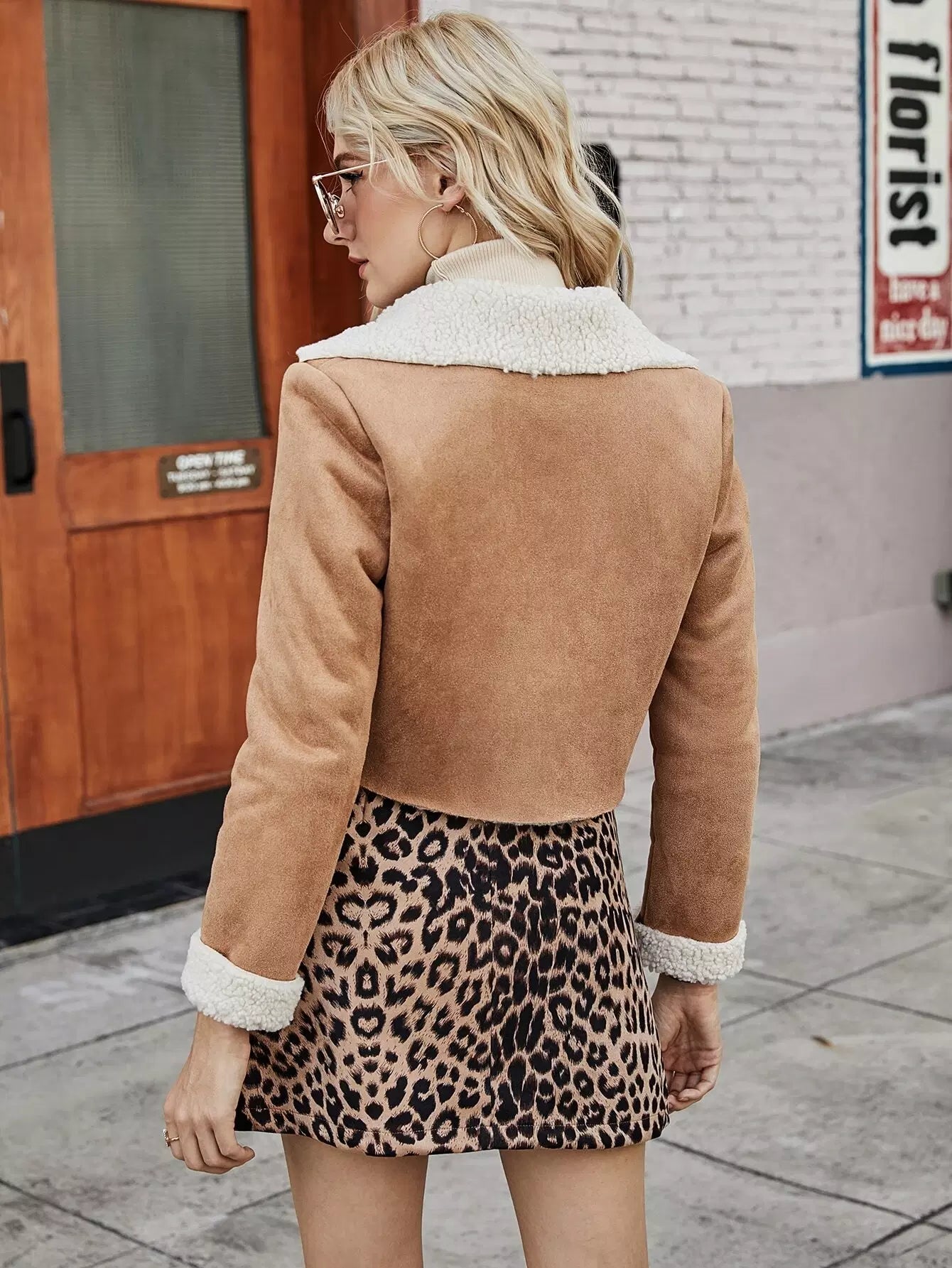 سترة قصيرة من جلد السويد مبطنة ببطانة تيدي