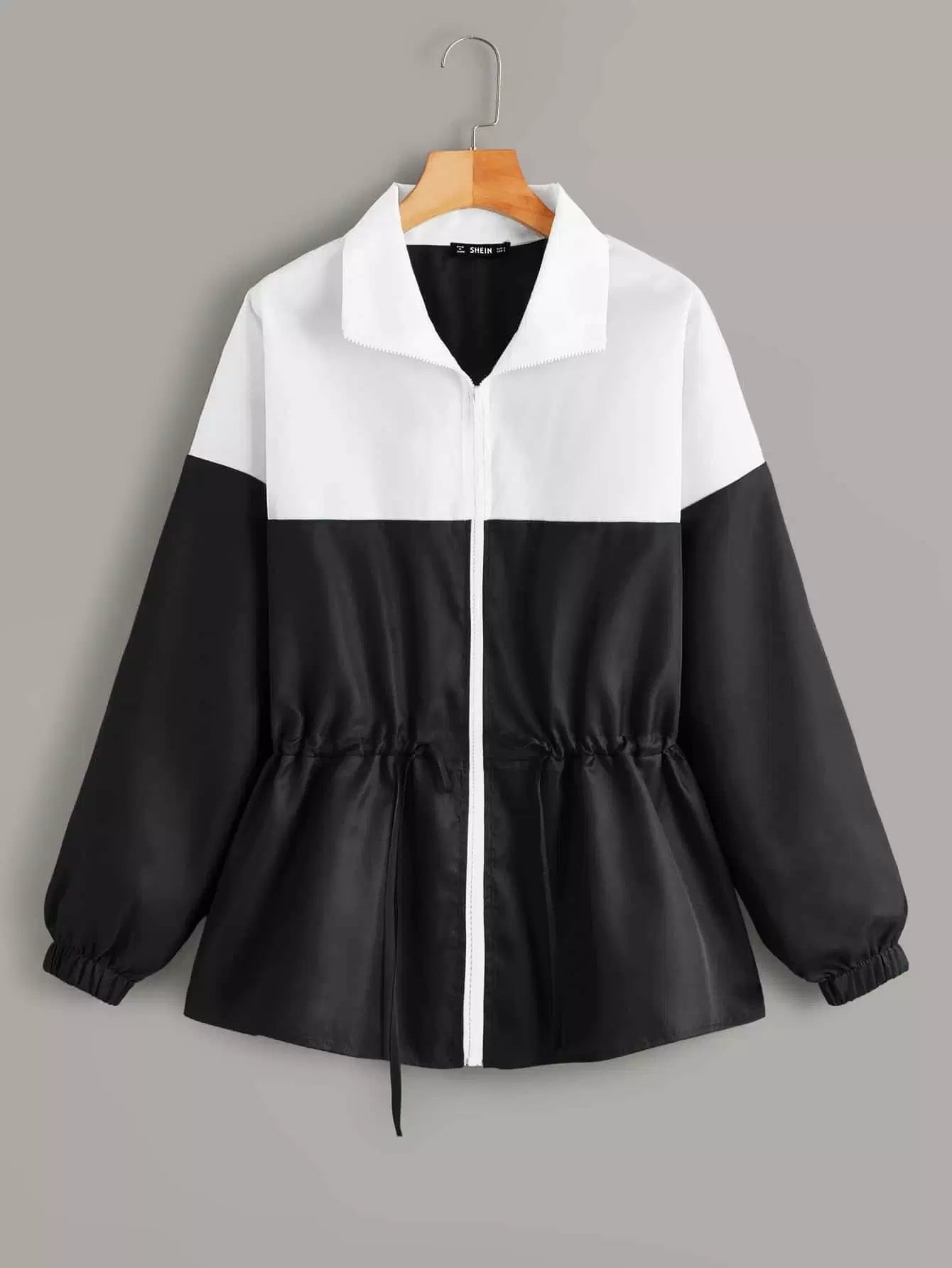 للنساء - سترة واقية من الرياح برباط أمامي بلونين