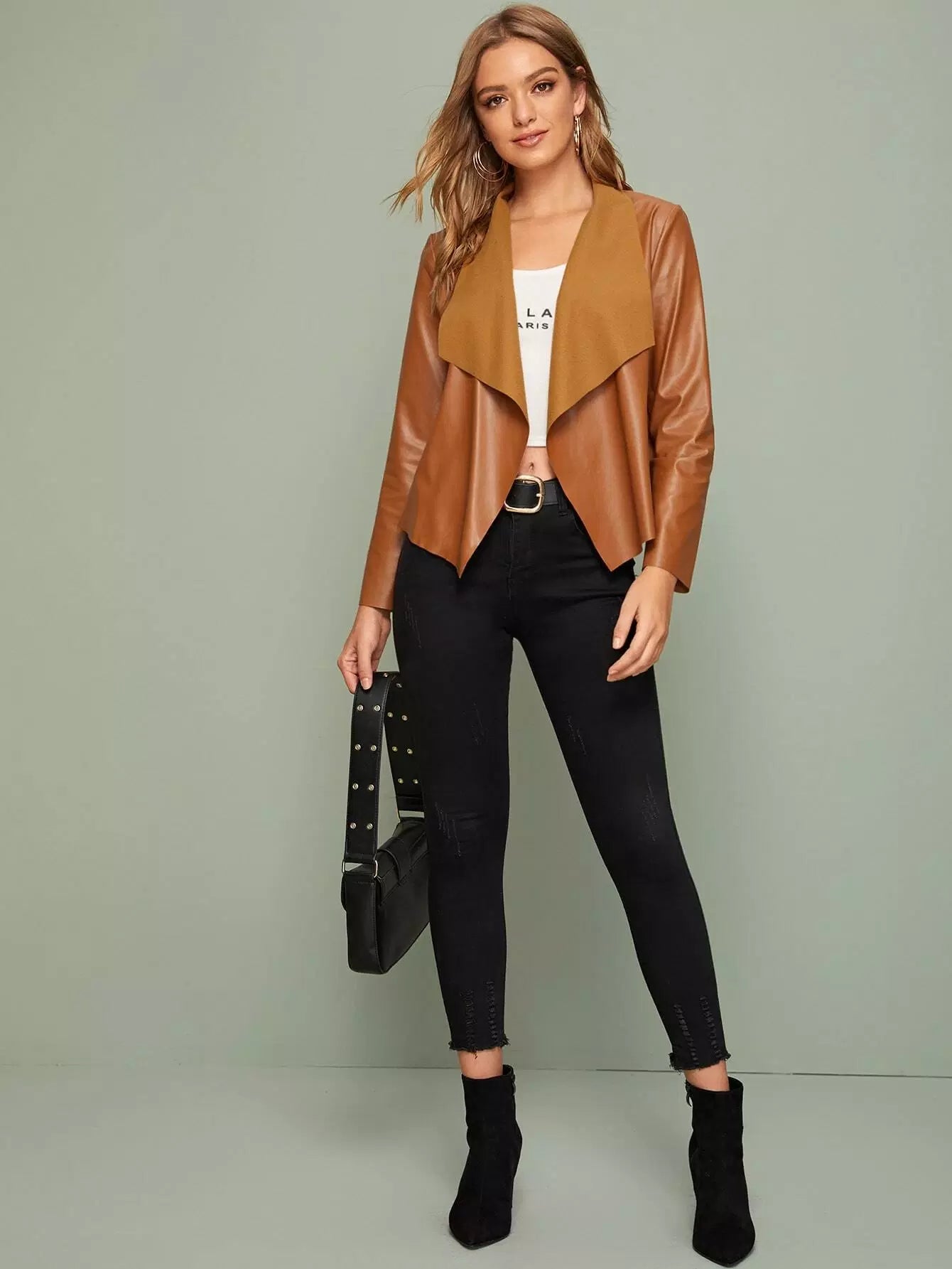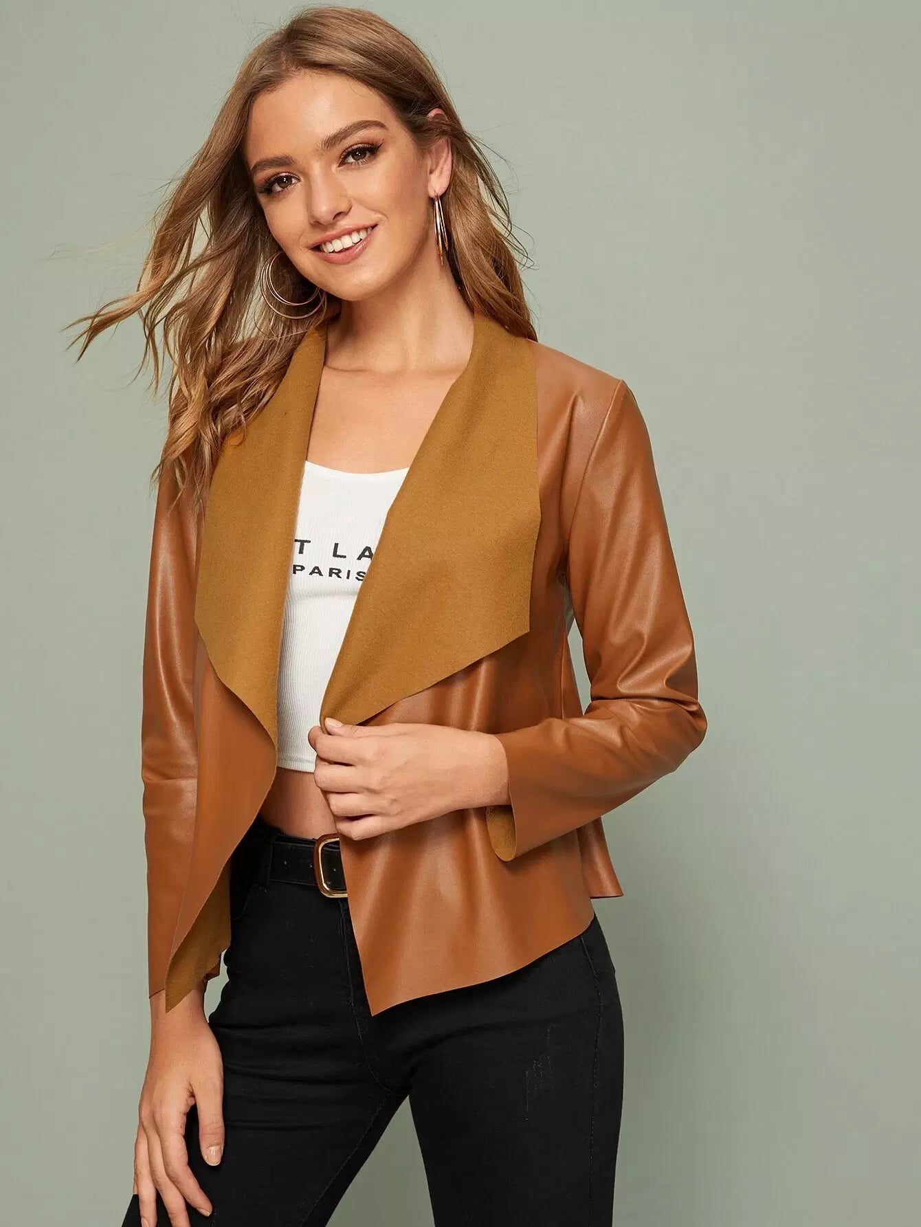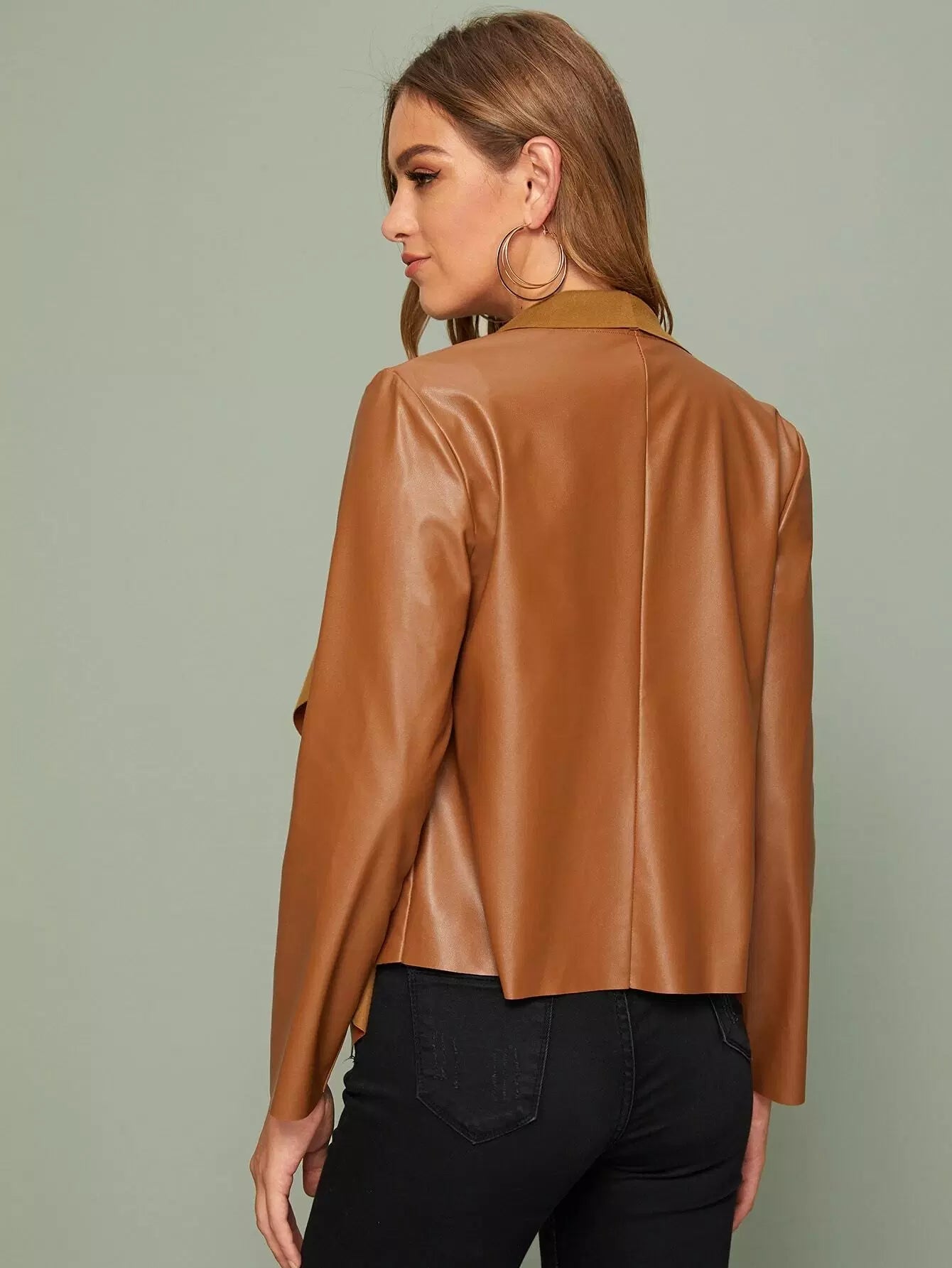 جاكيت بياقة شلال من الجلد الصناعي