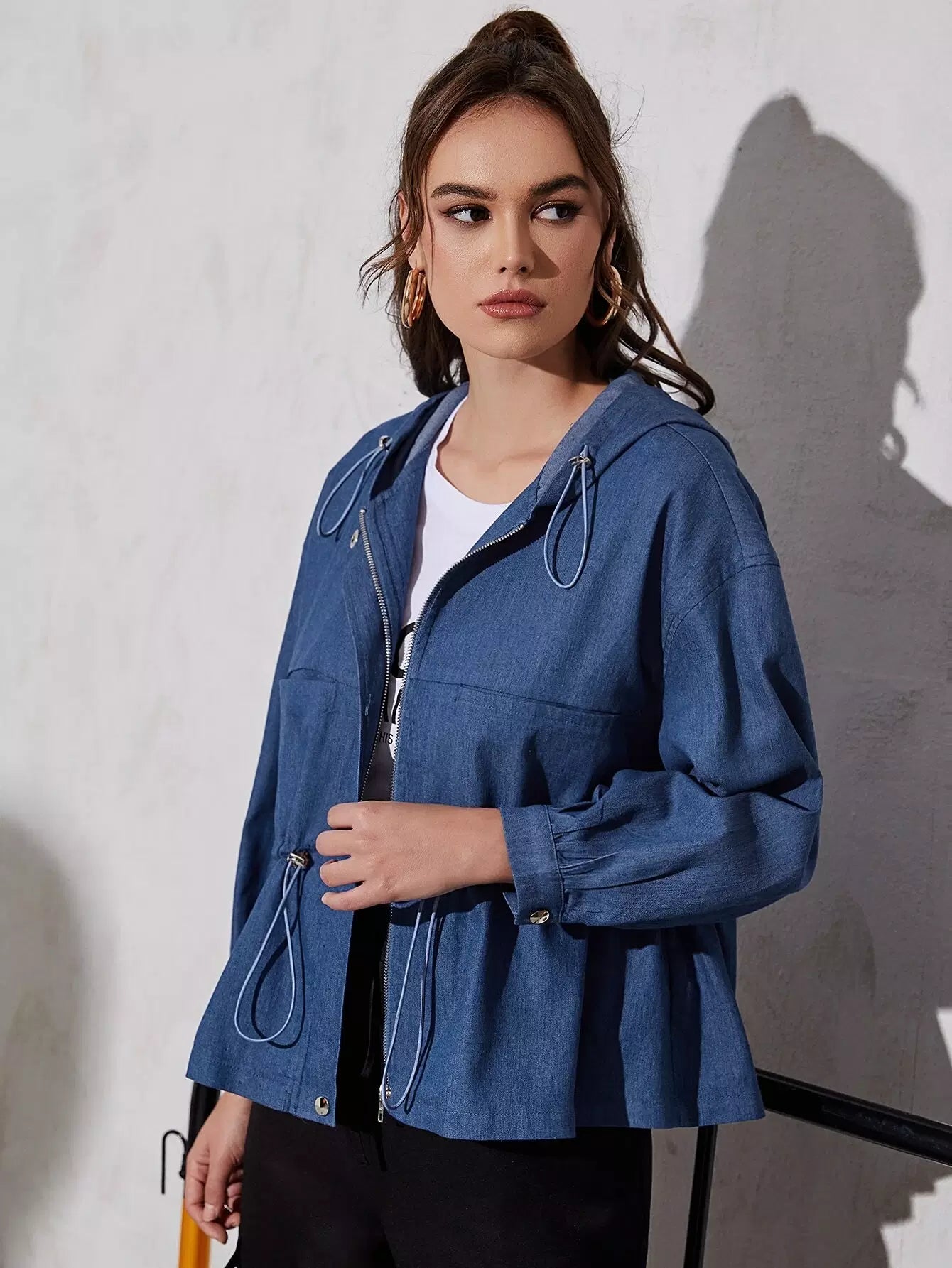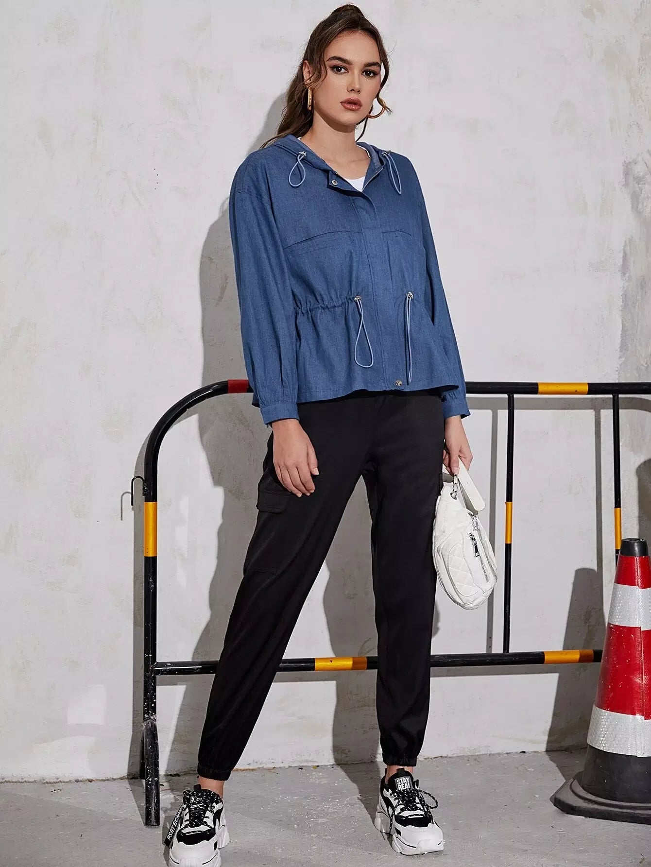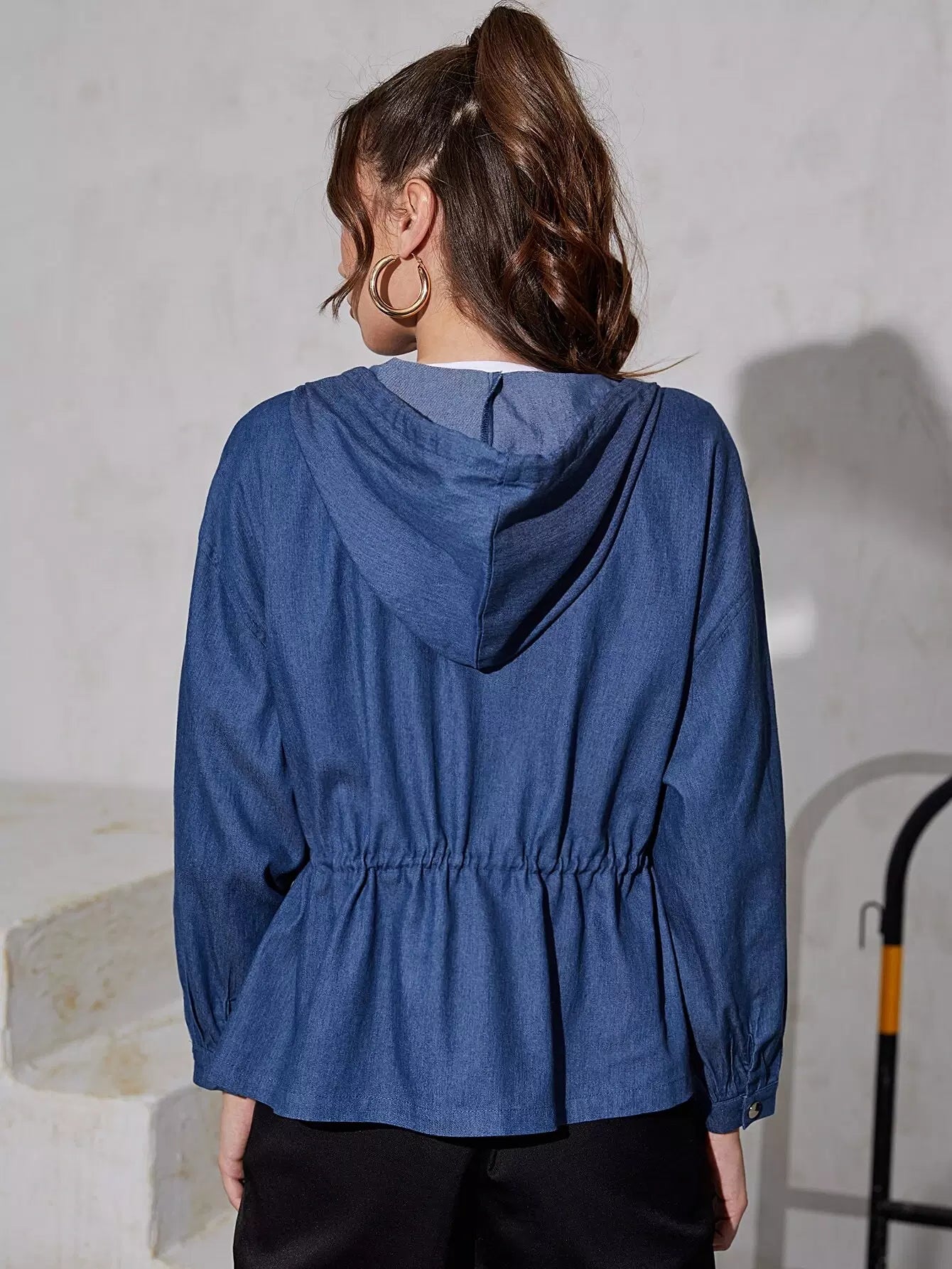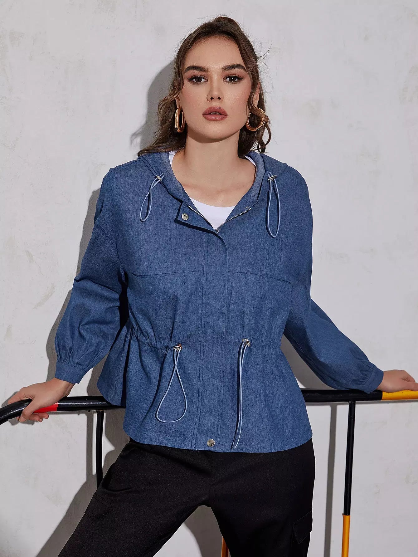 سترة بغطاء رأس وسحّاب ورباط على الخصر