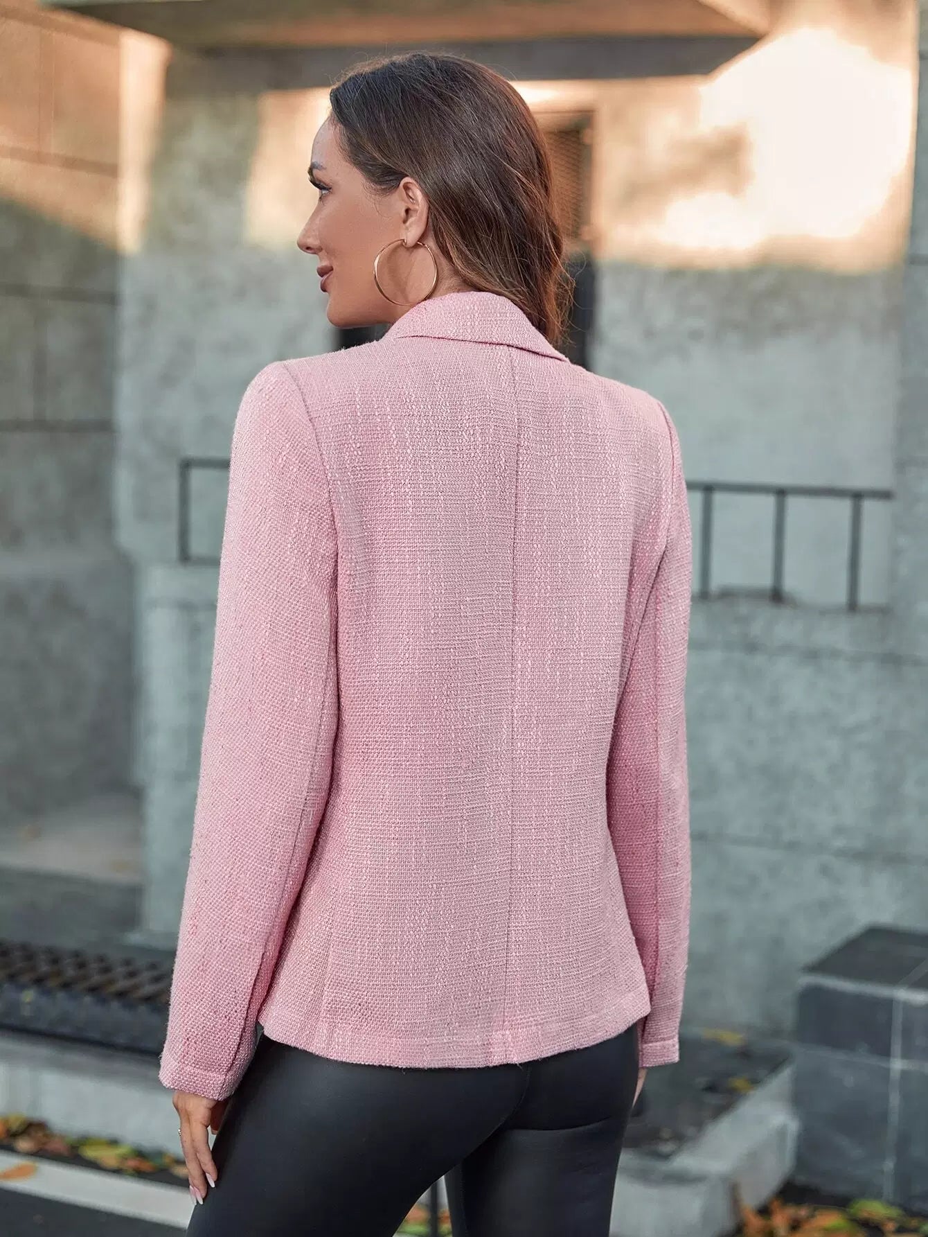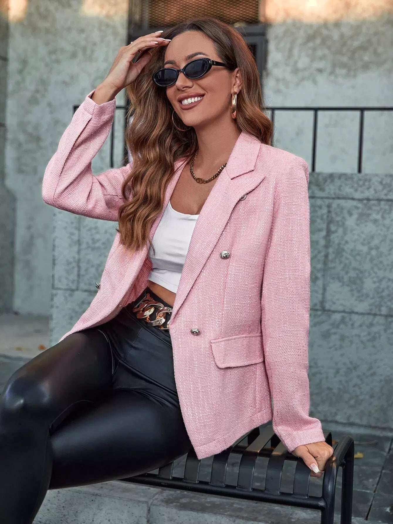 معطف تويد مزدوج الصدر مع ياقة مطوية