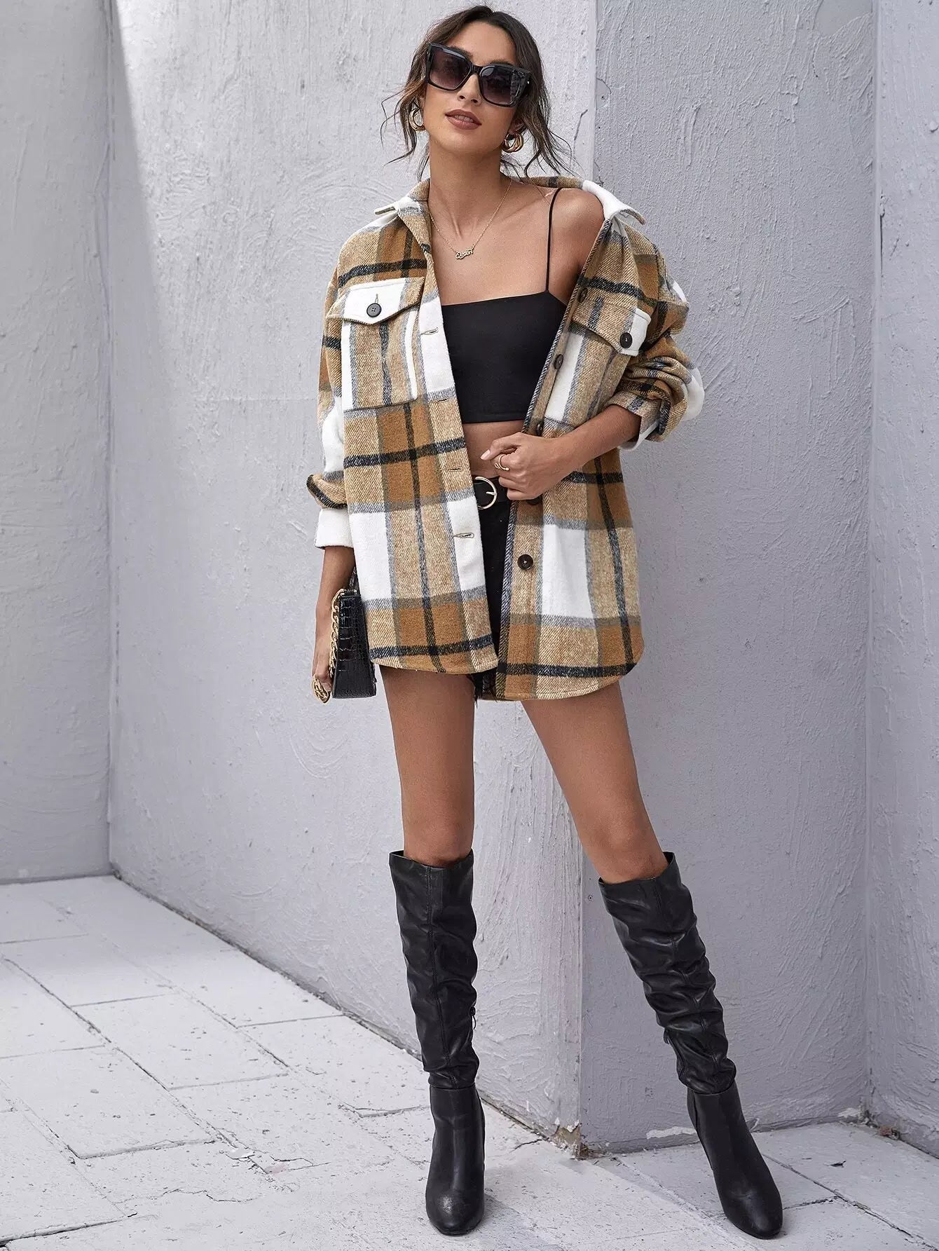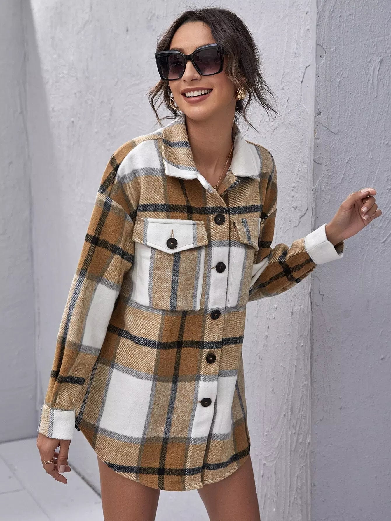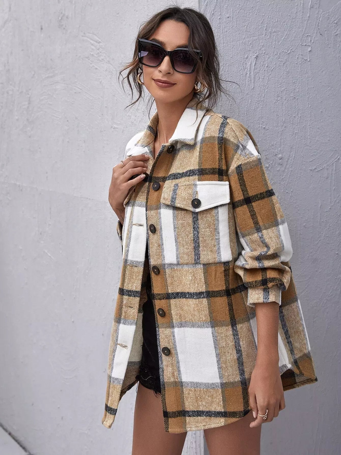 معطف منقوش بأزرار منسدلة بأزرار أمامية بغطاء منقوش بغطاء أمامي بأزرار