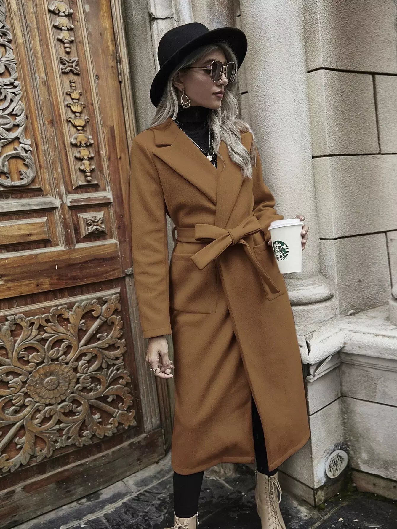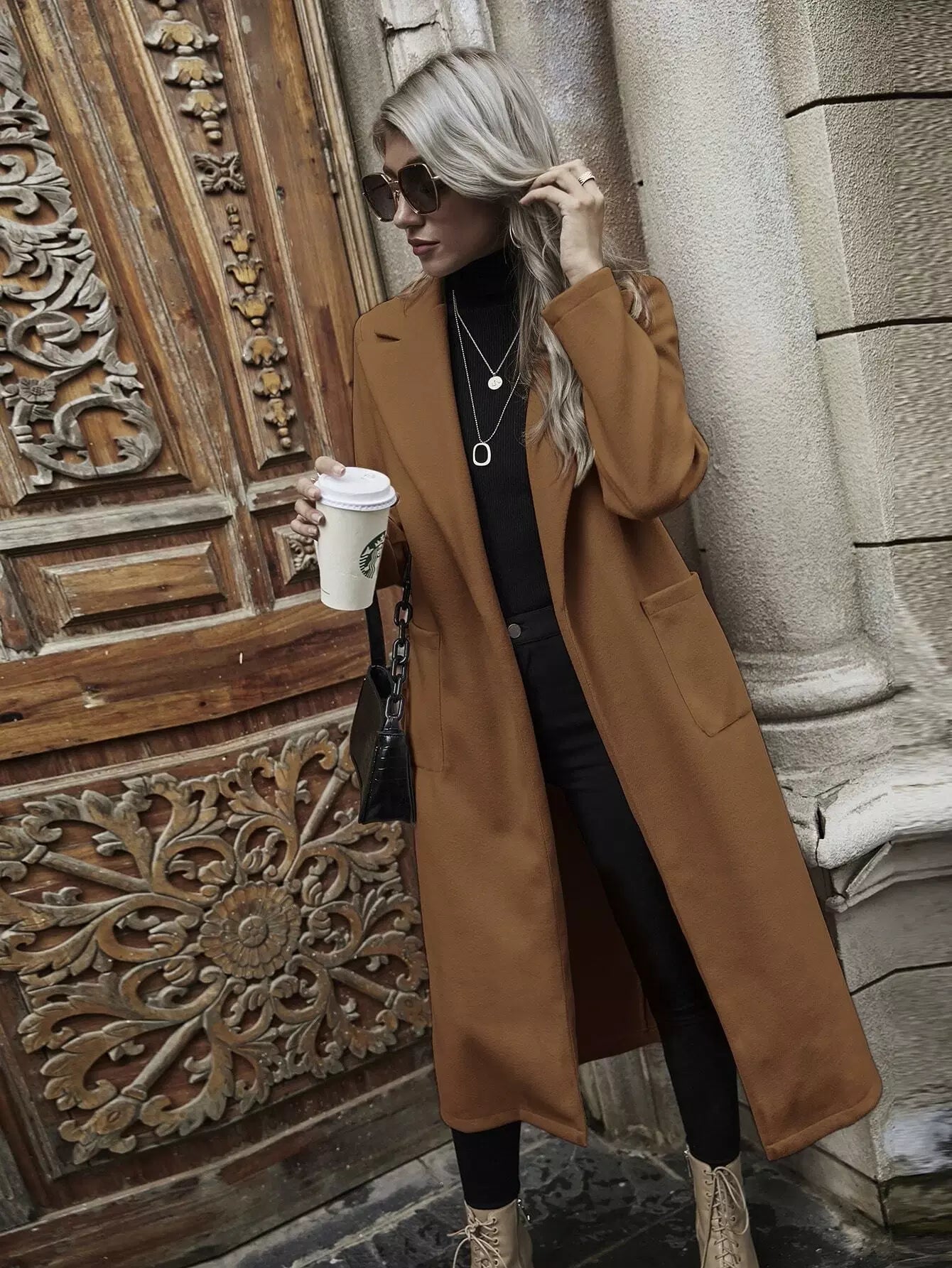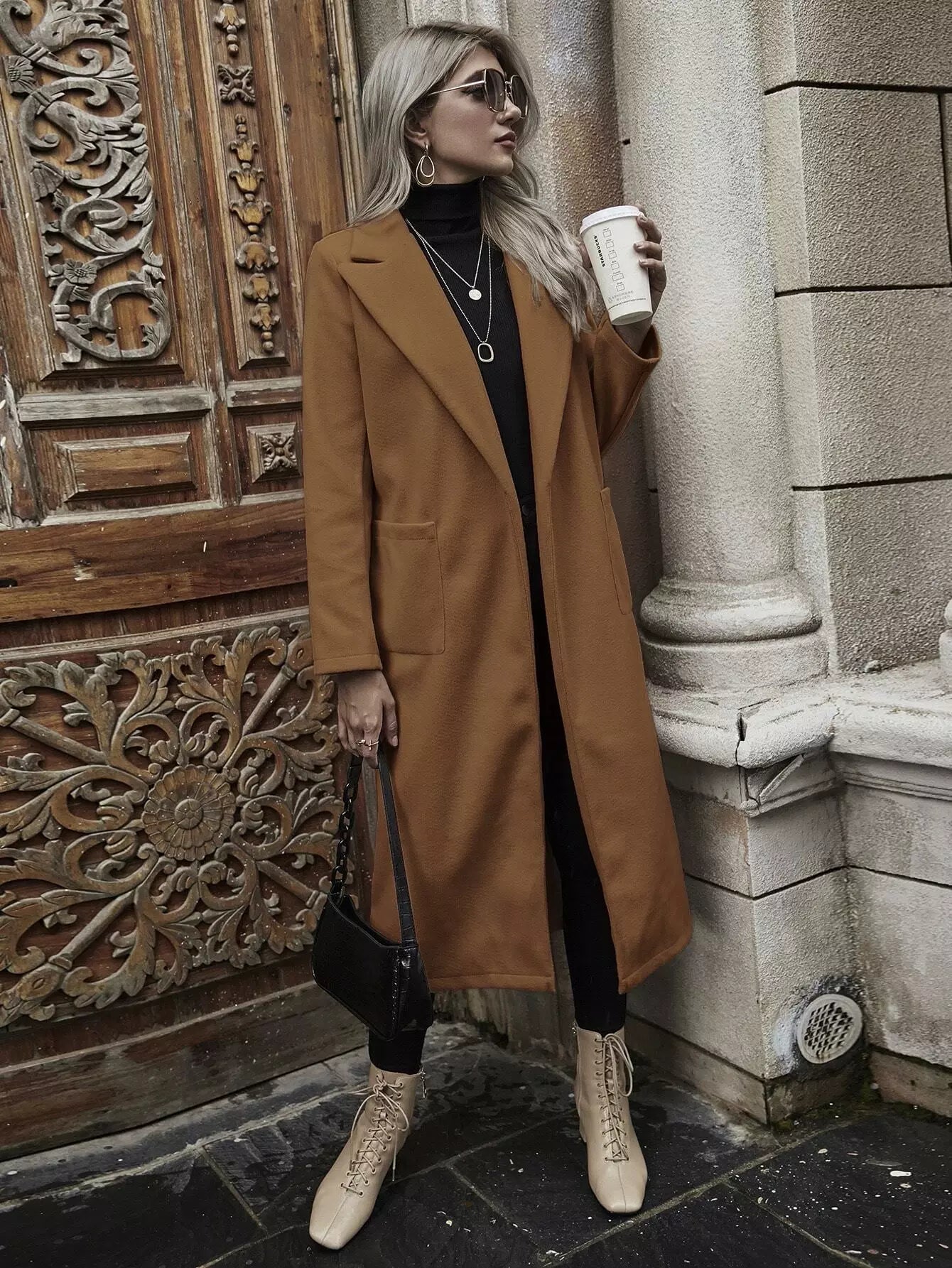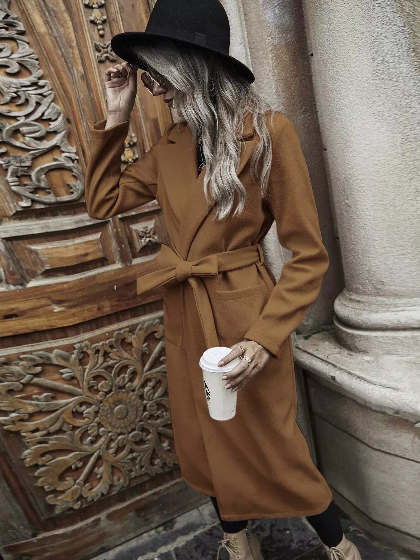 معطف بياقة طية صدر السترة بجيب مزدوج بدون حزام
