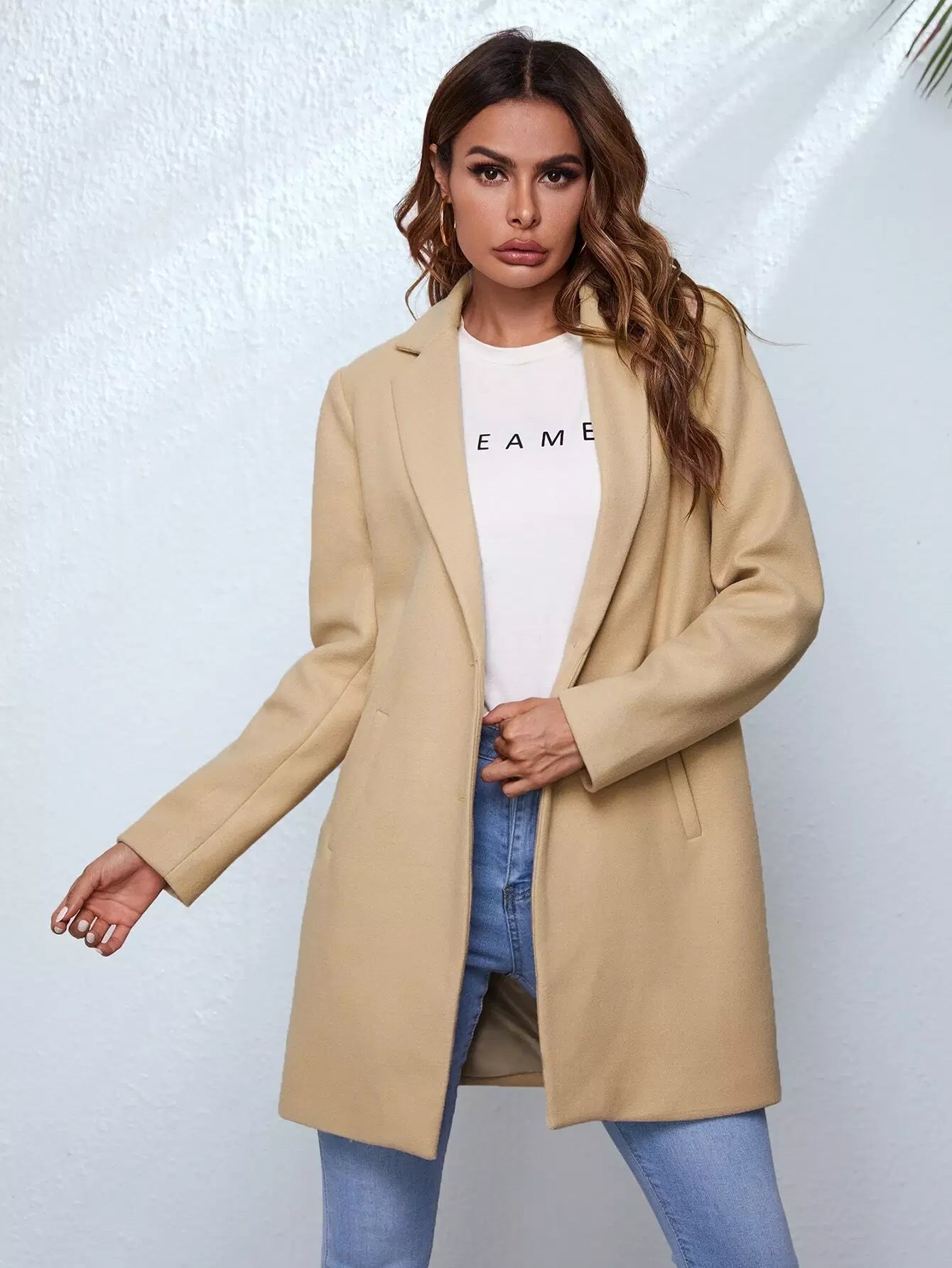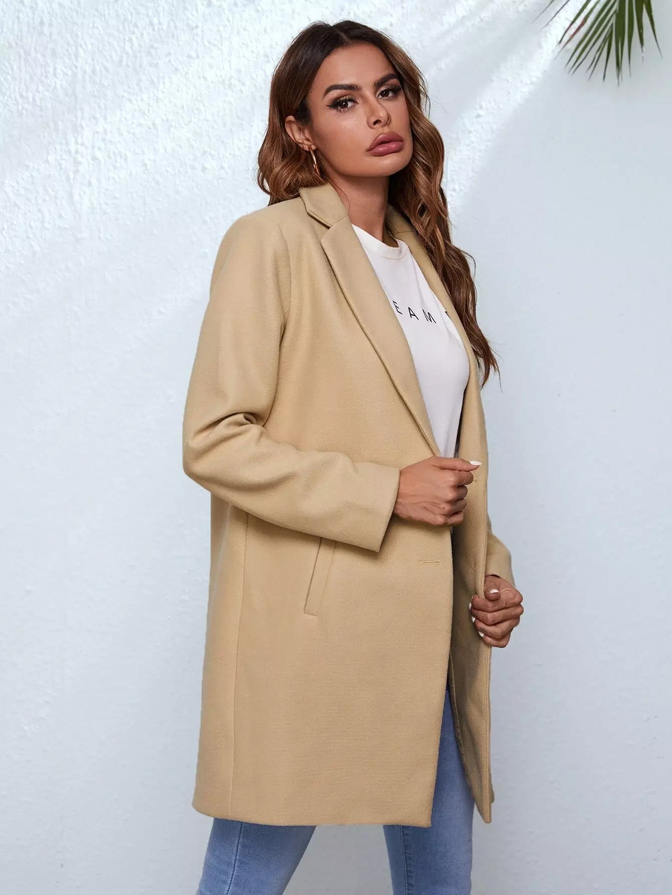معطف سادة بياقة مطوية