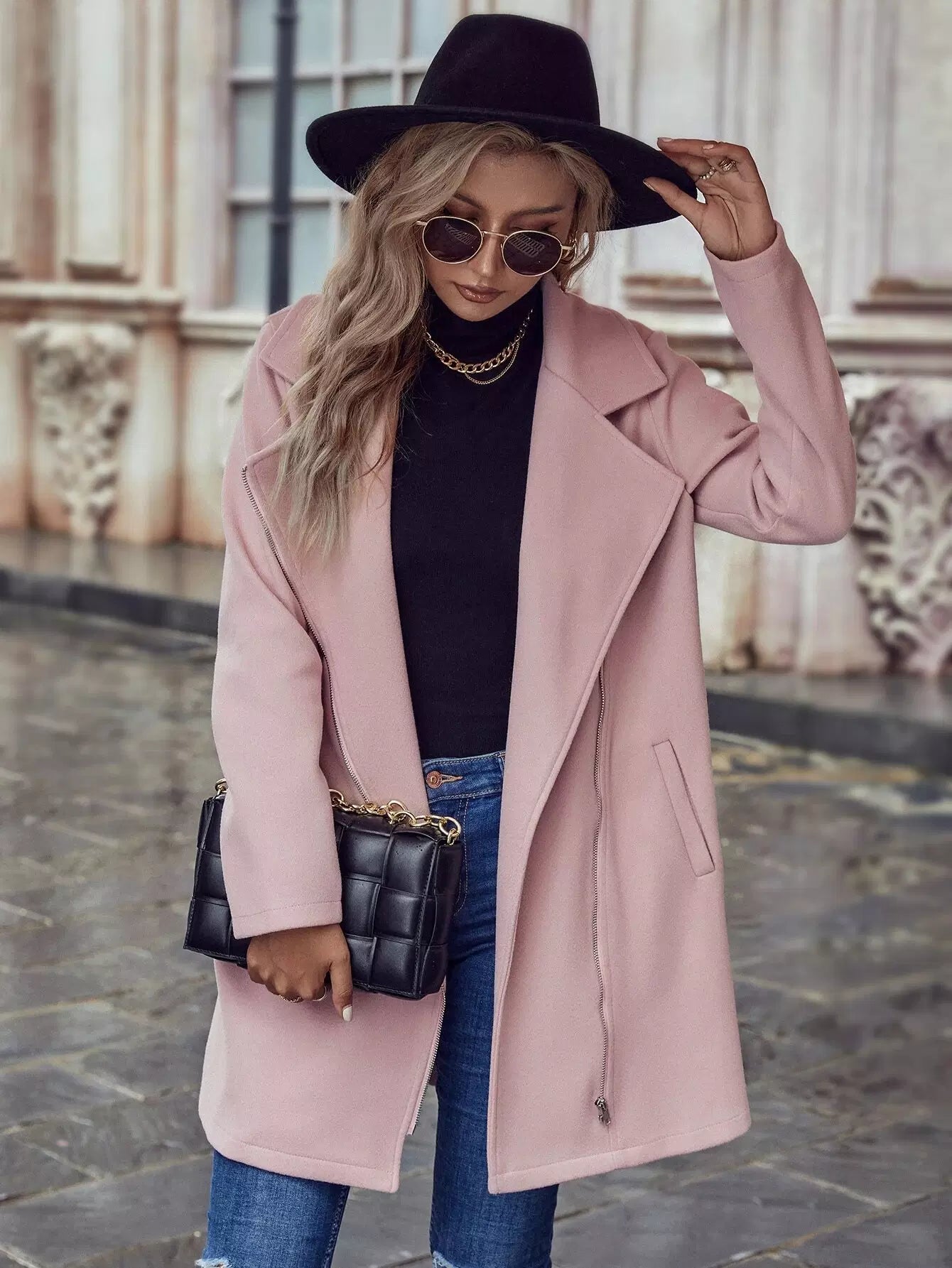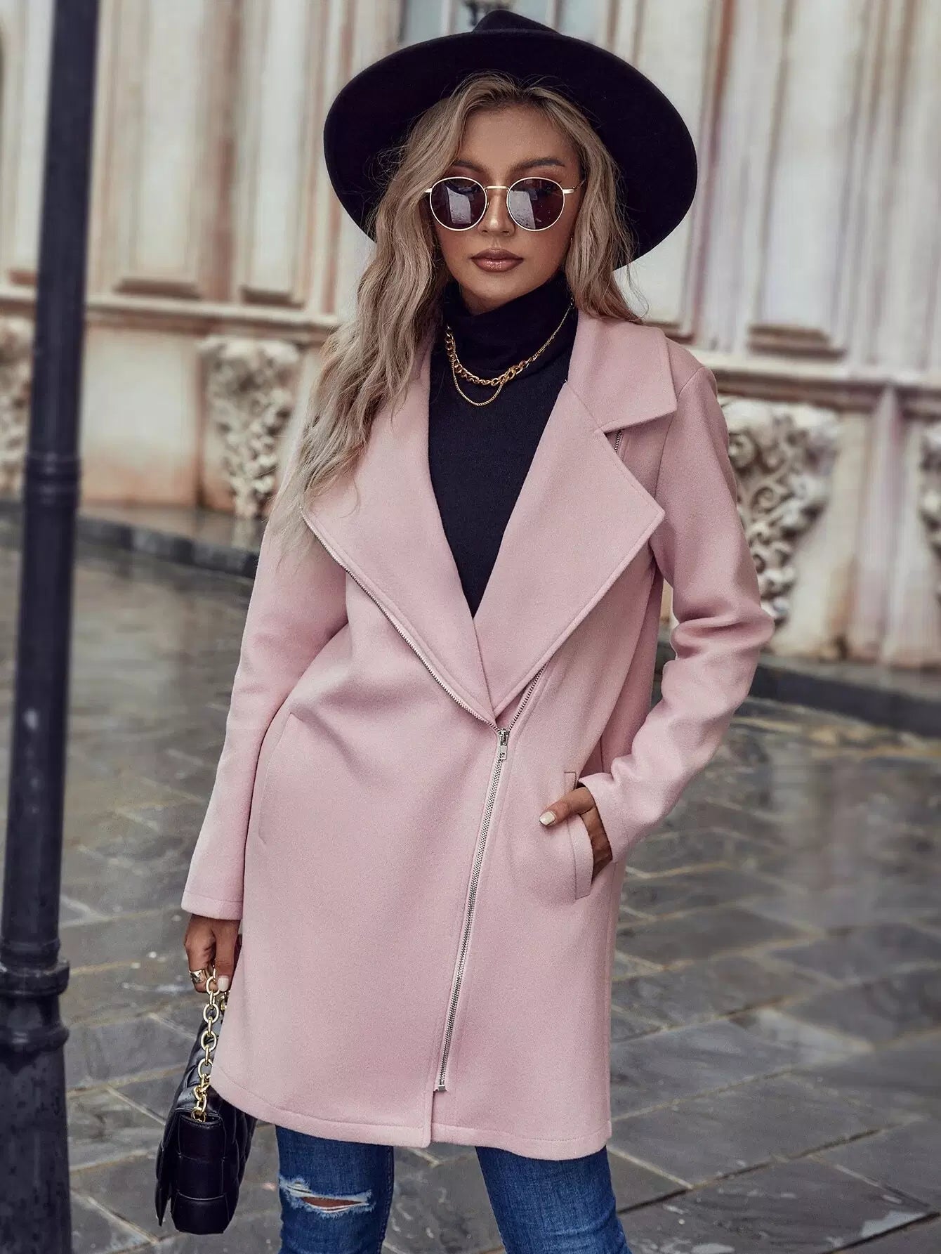 معطف بسحاب لرقبة الياقة