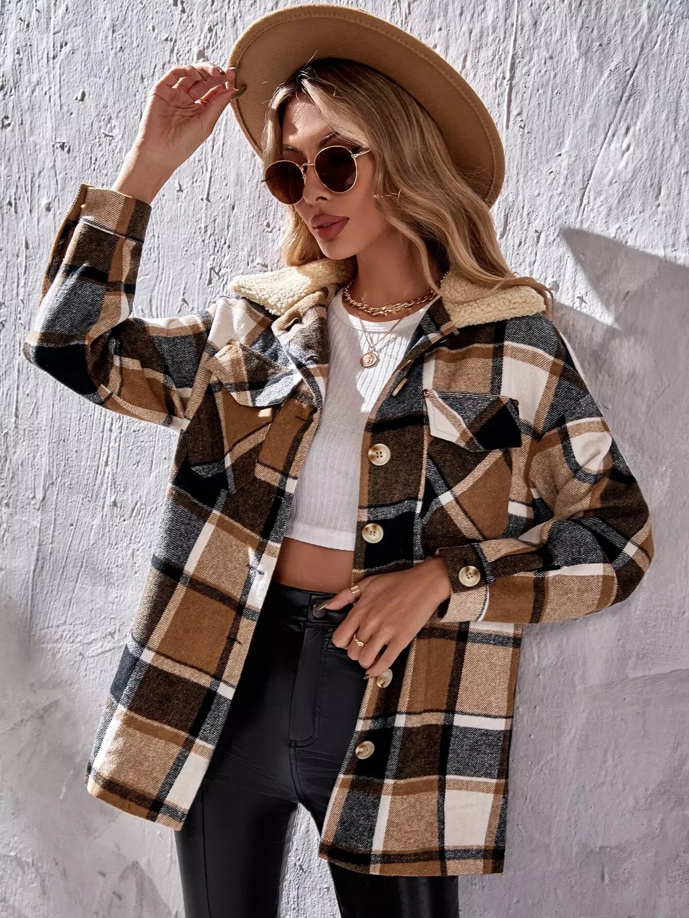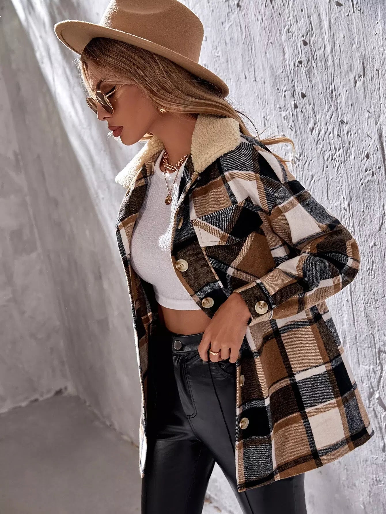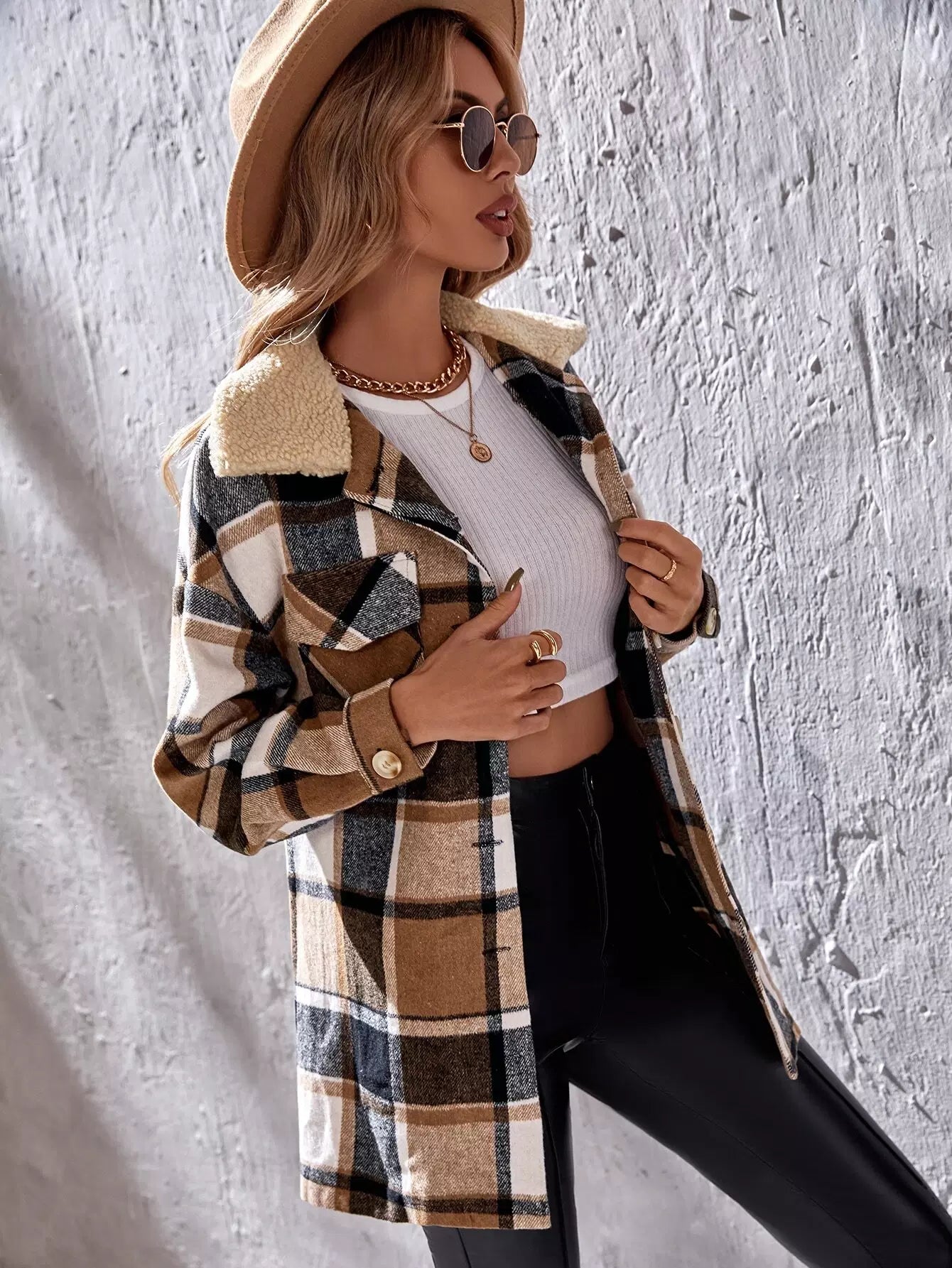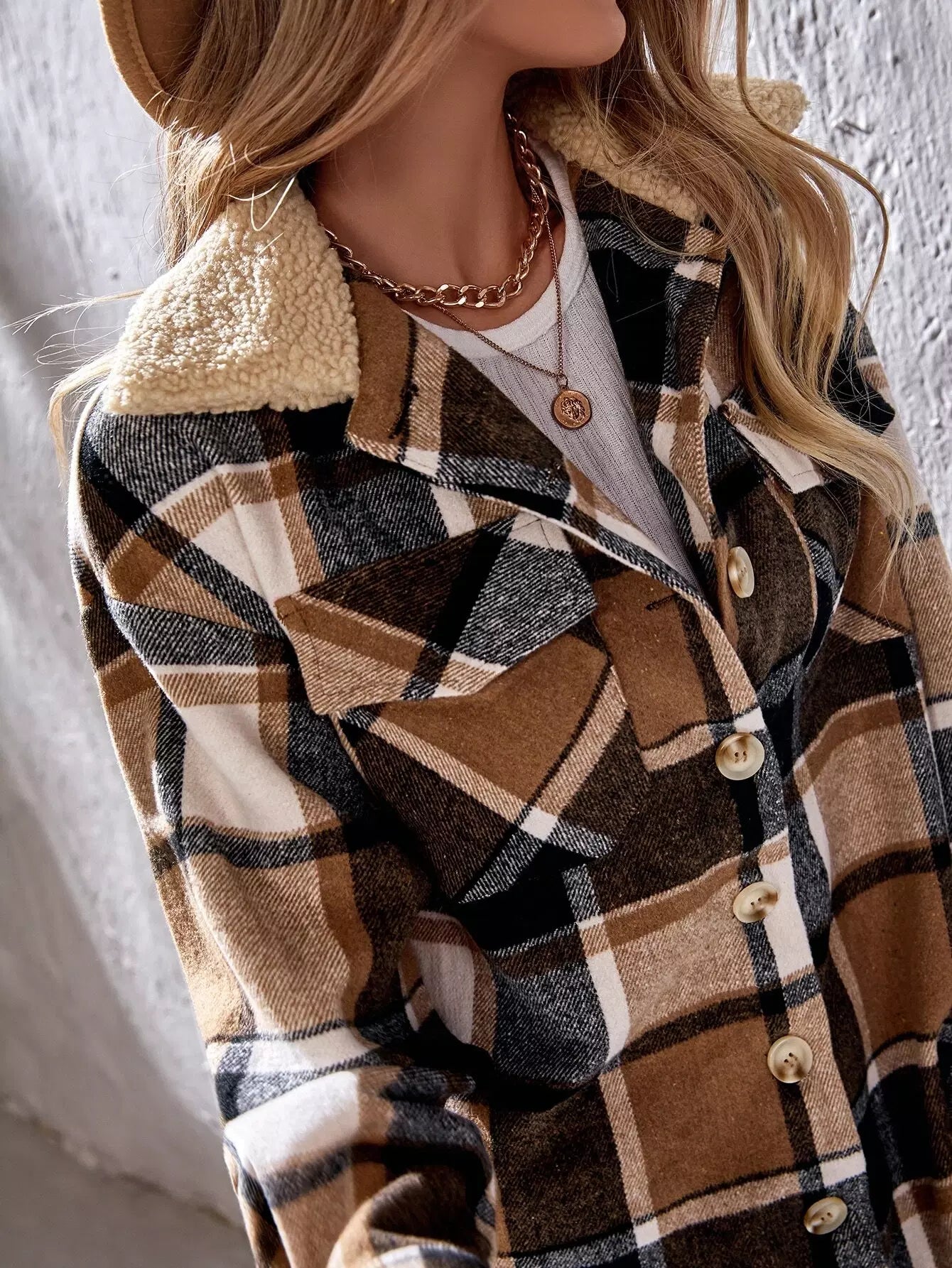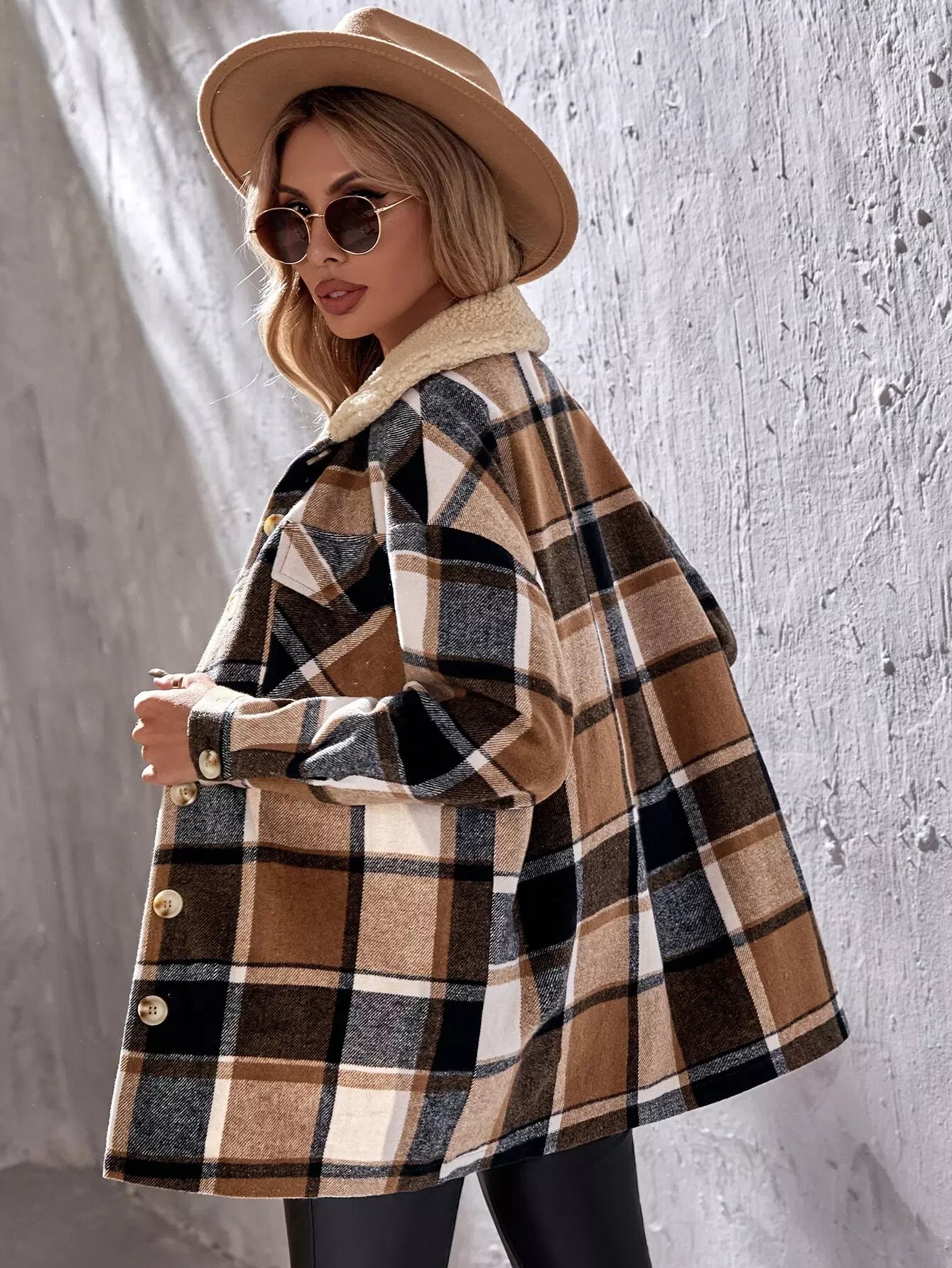 معطف بياقة منسدلة منقوشة بطبعة بورج منسدلة الكتف