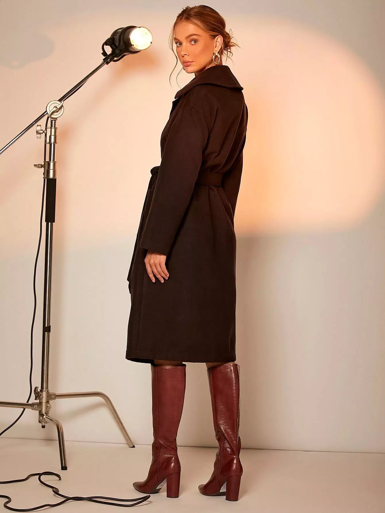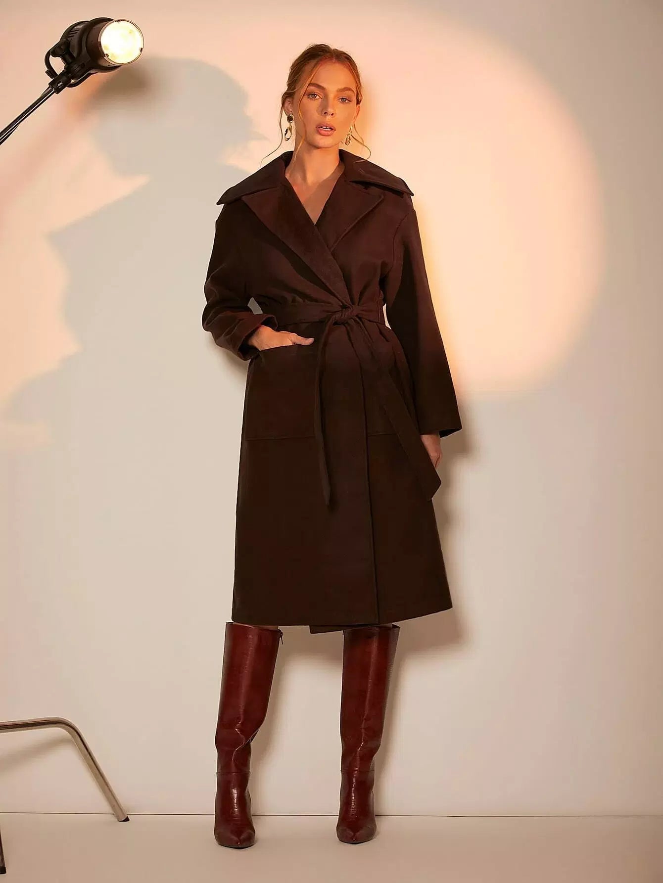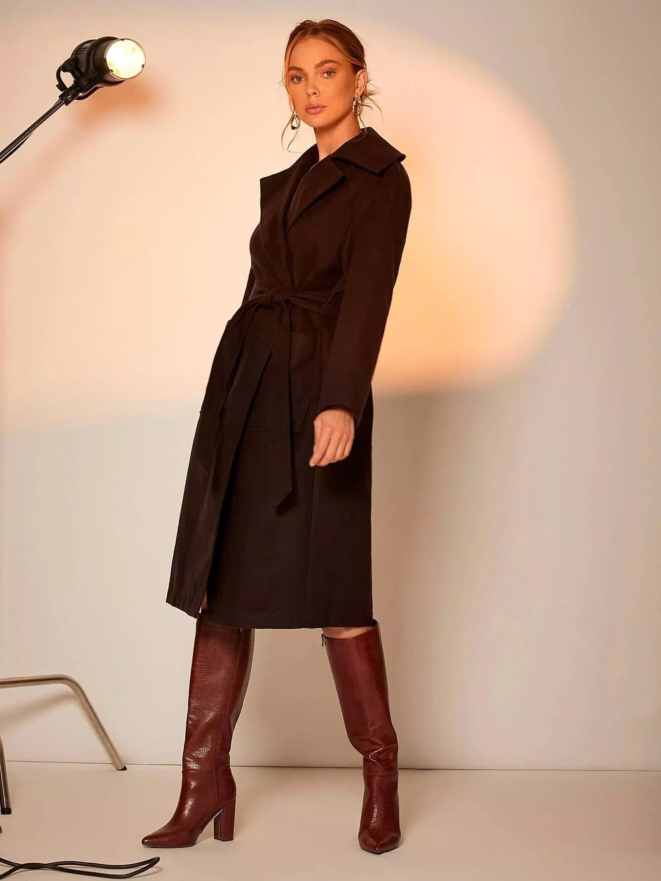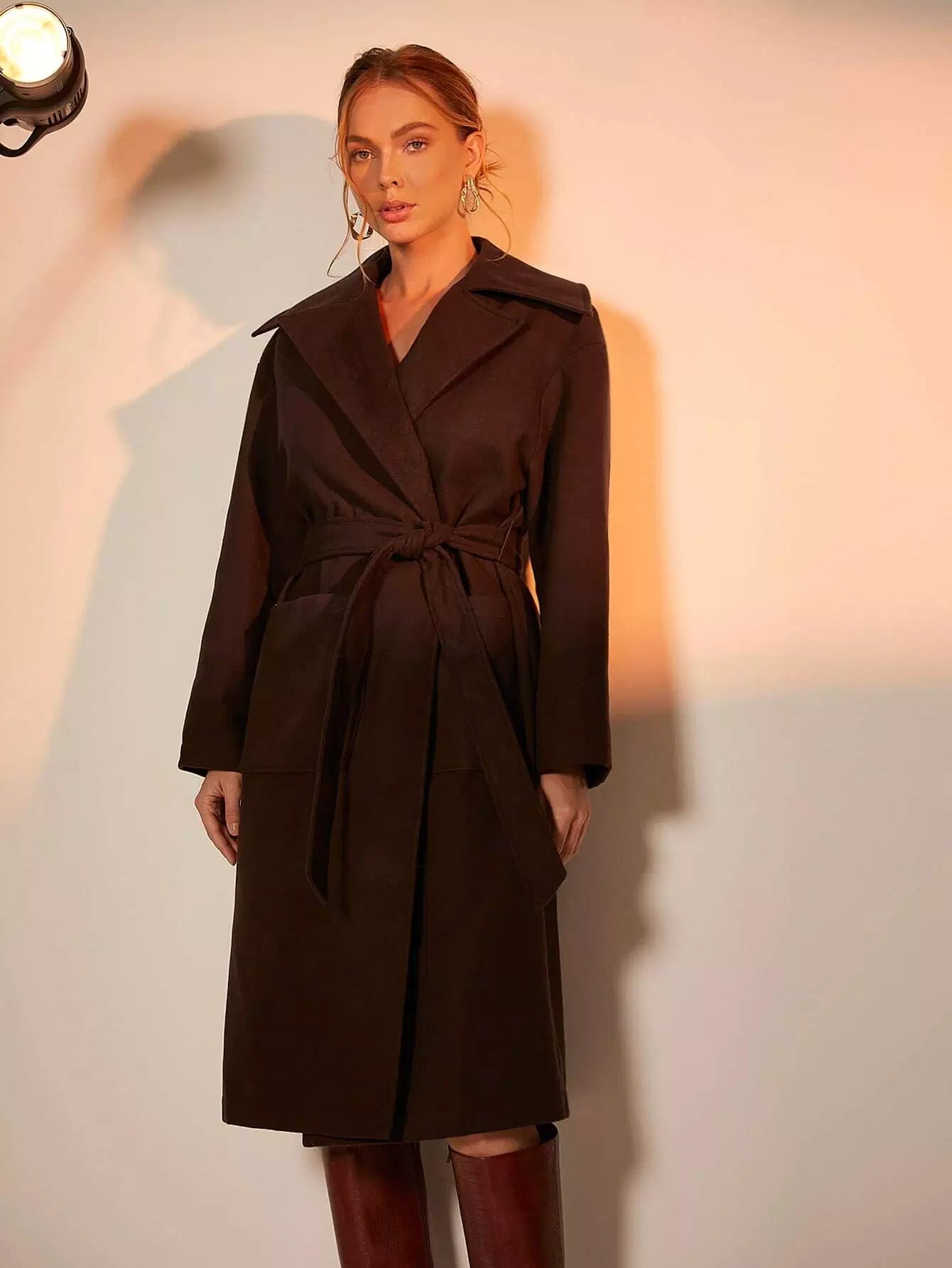 معطف بجيب أمامي وياقة طية صدر السترة بدون حزام