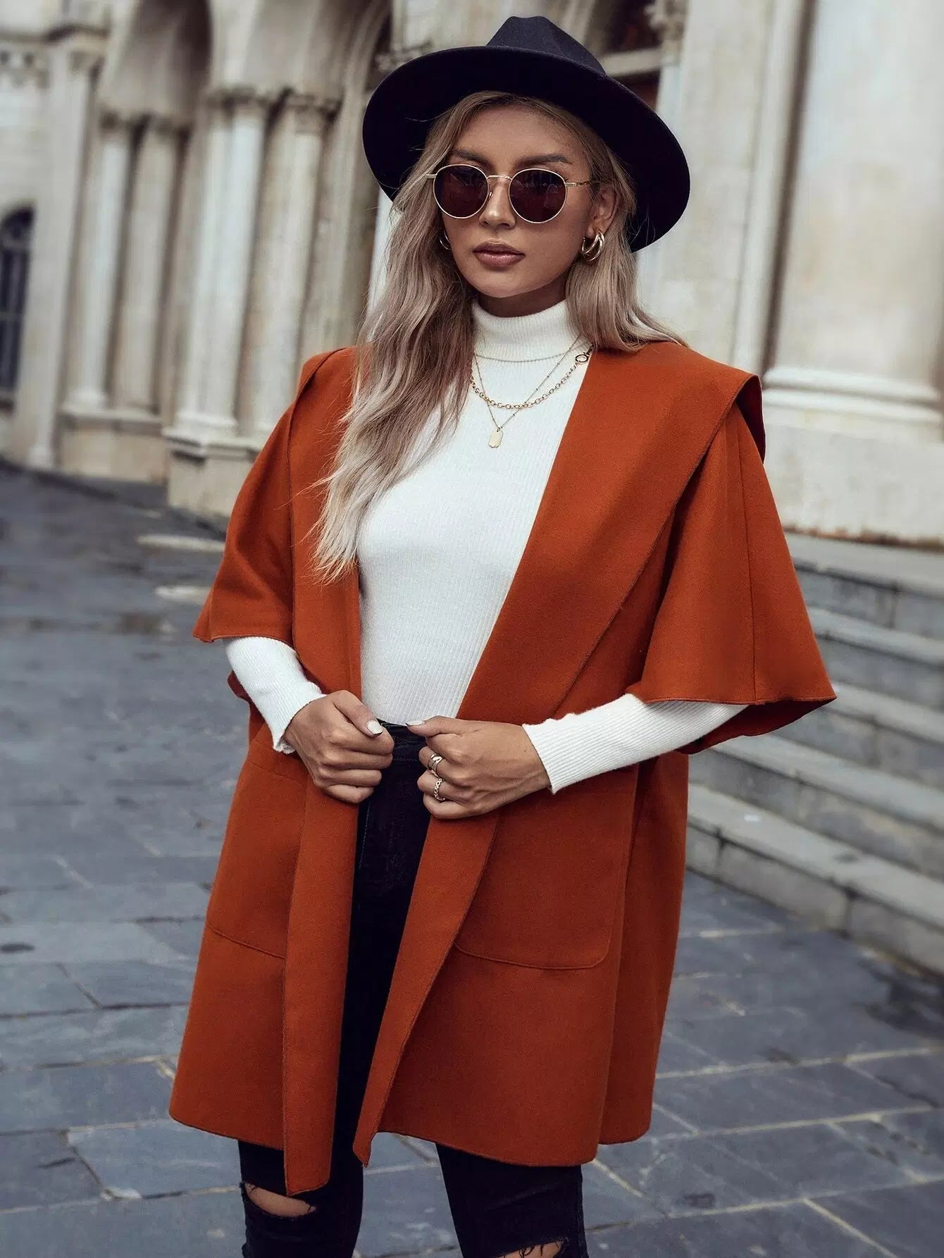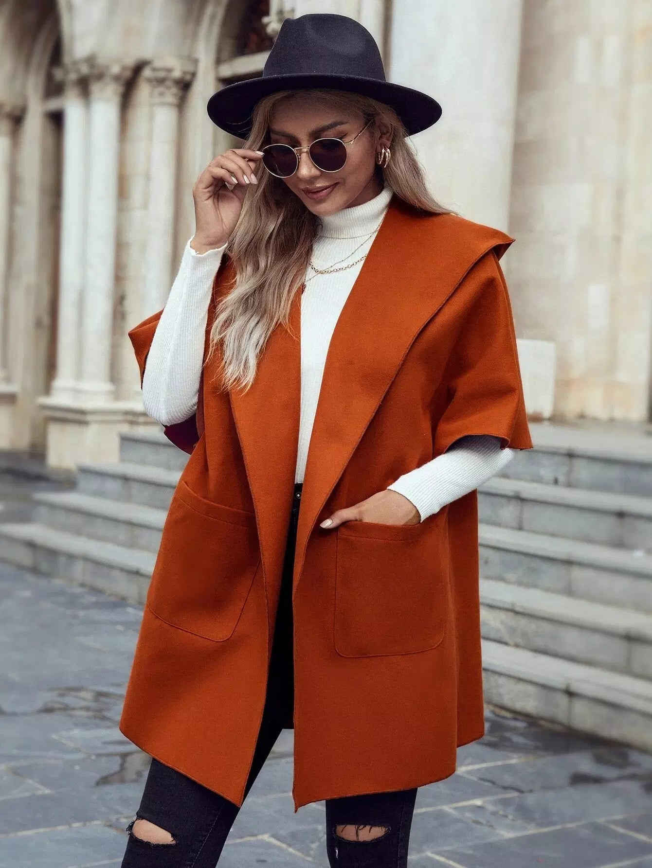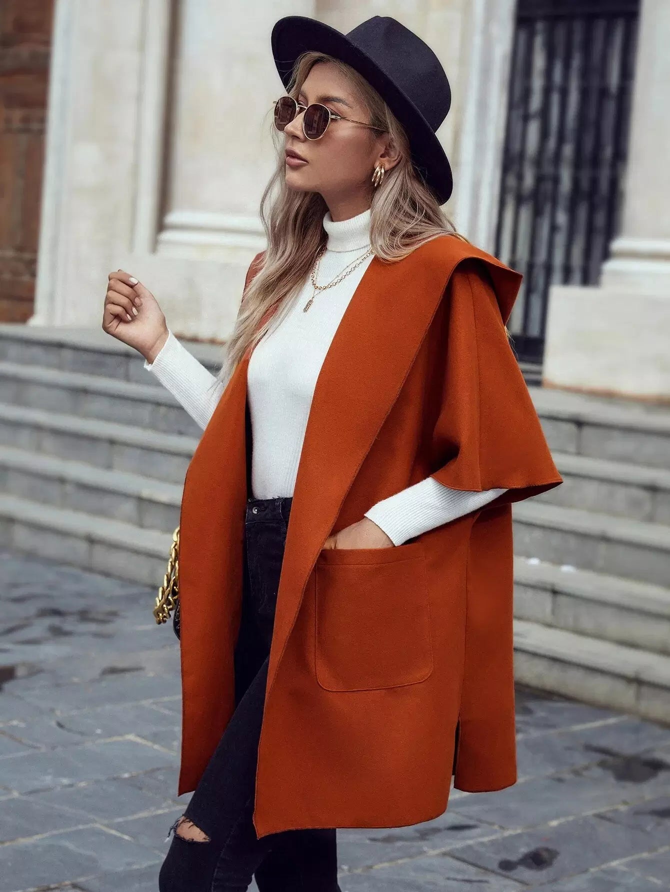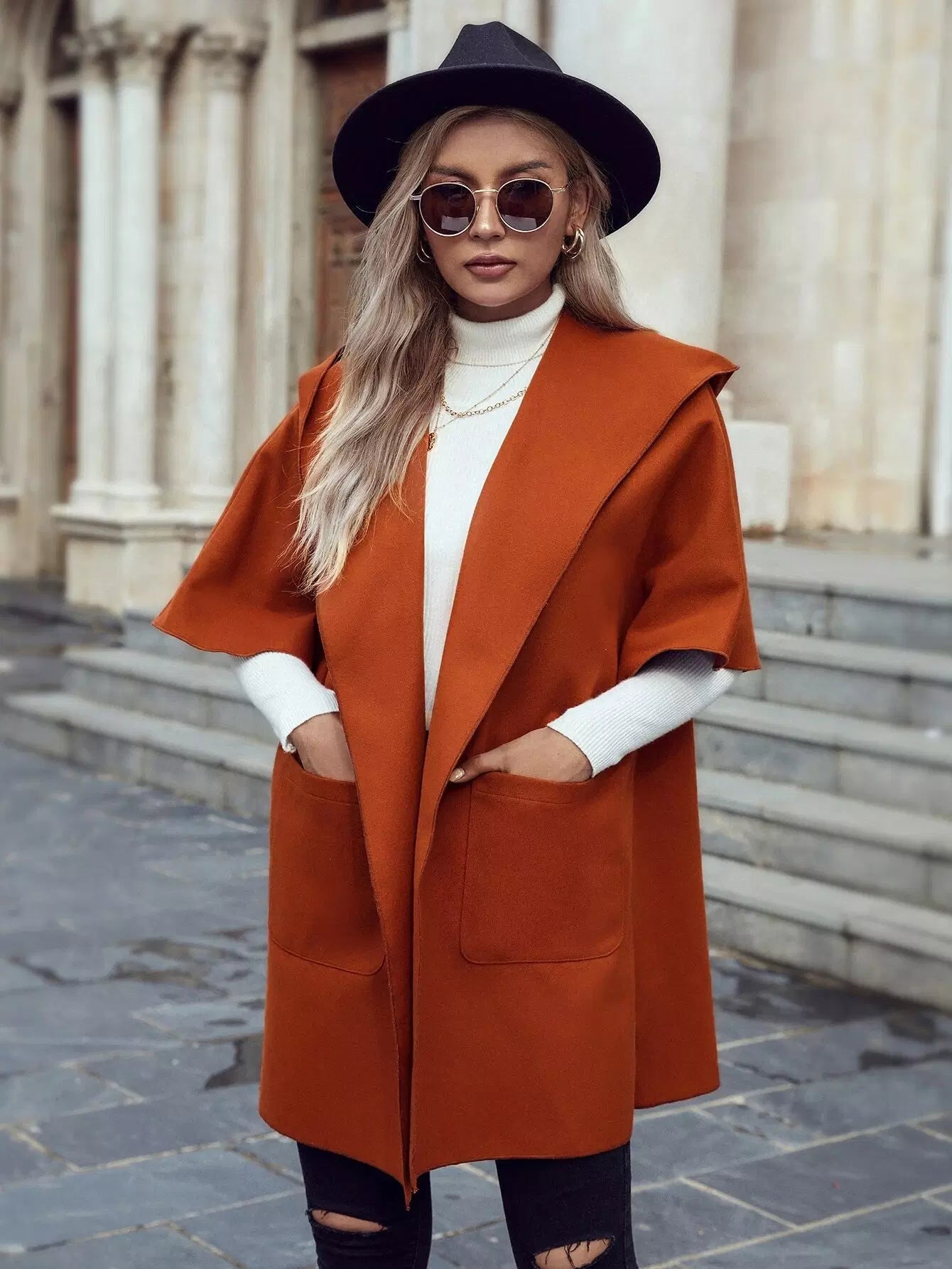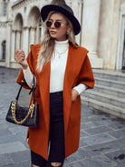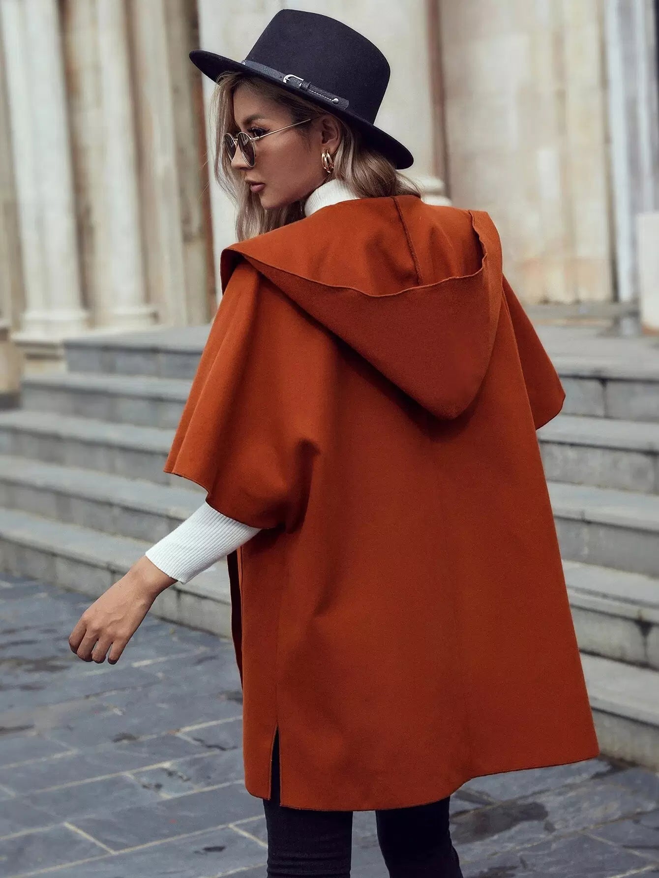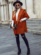 معطف بغطاء رأس وأكمام دولمان وفتحة أمامية وجيب