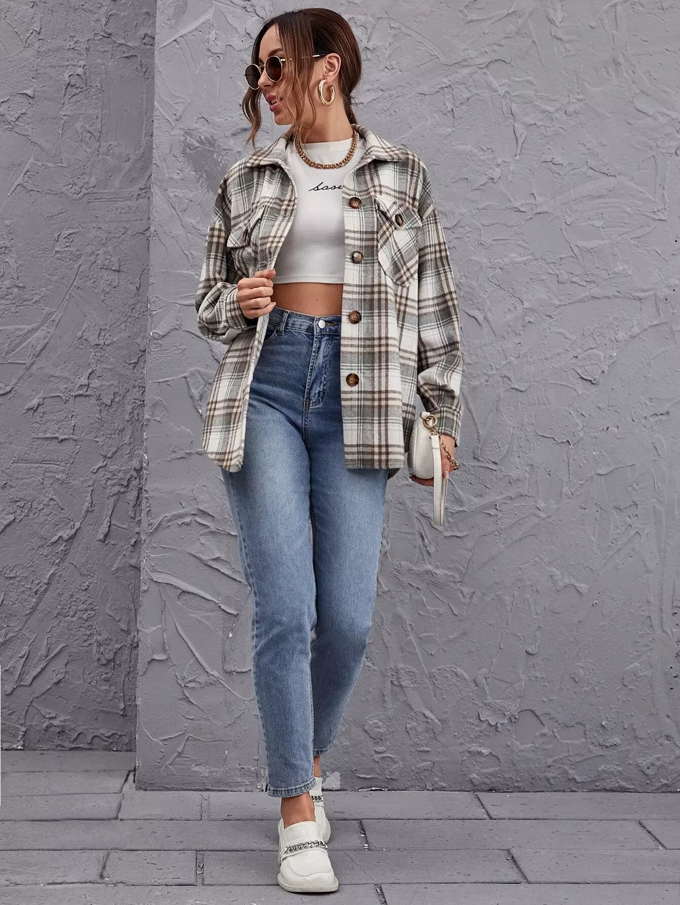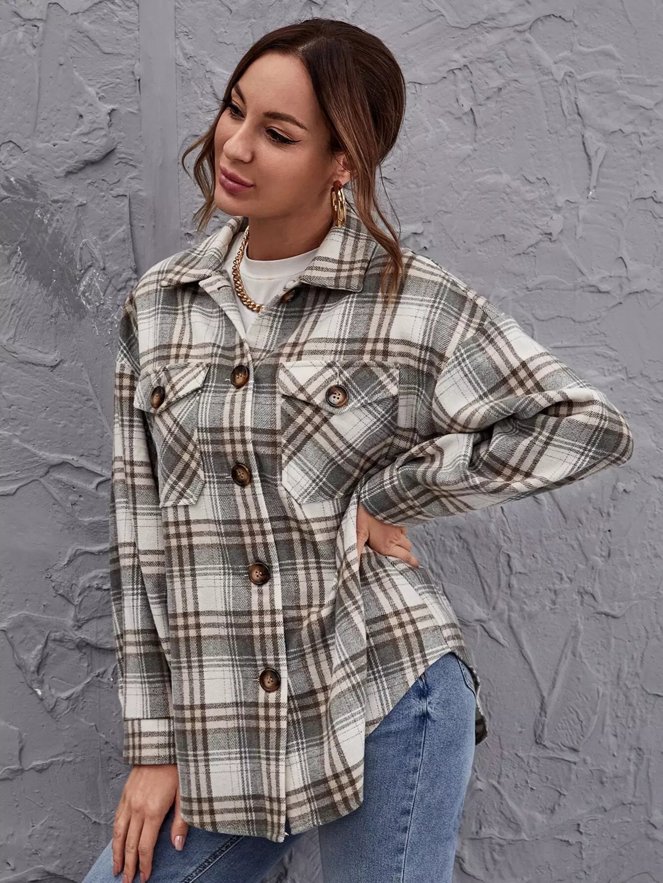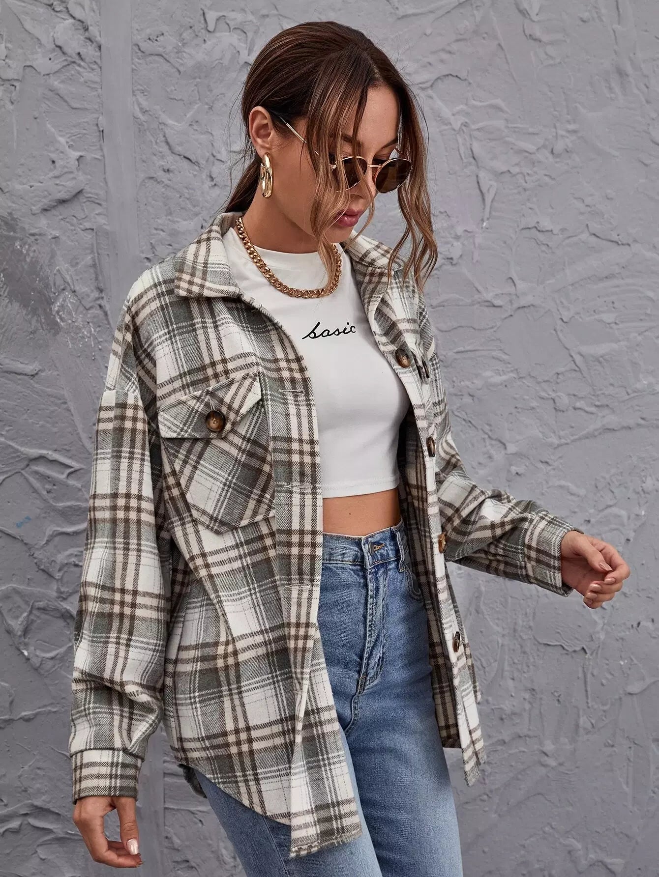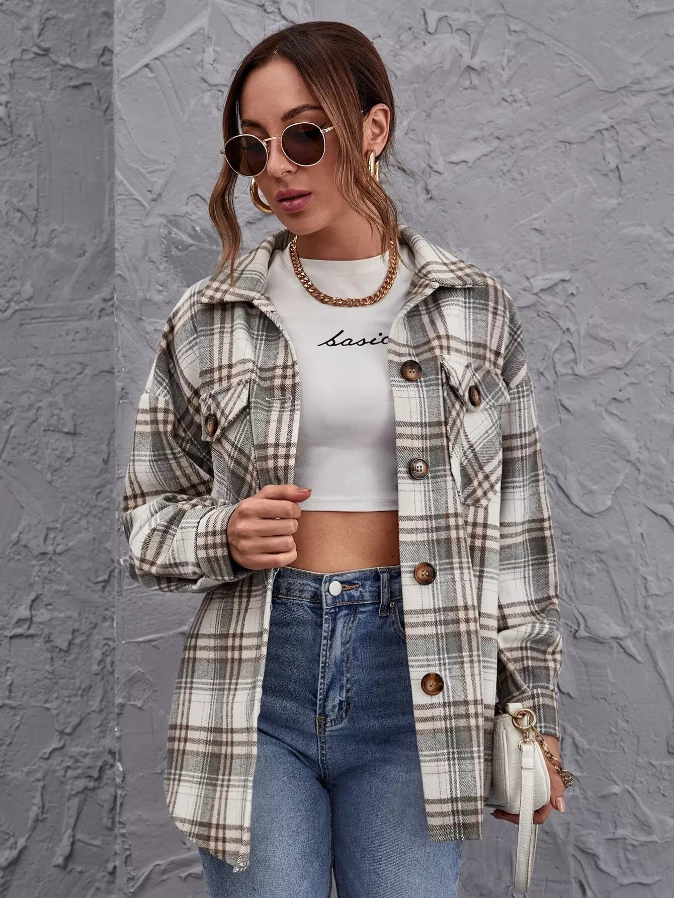 للنساء - قميص علوي من قماش الترتان بأكتاف منسدلة