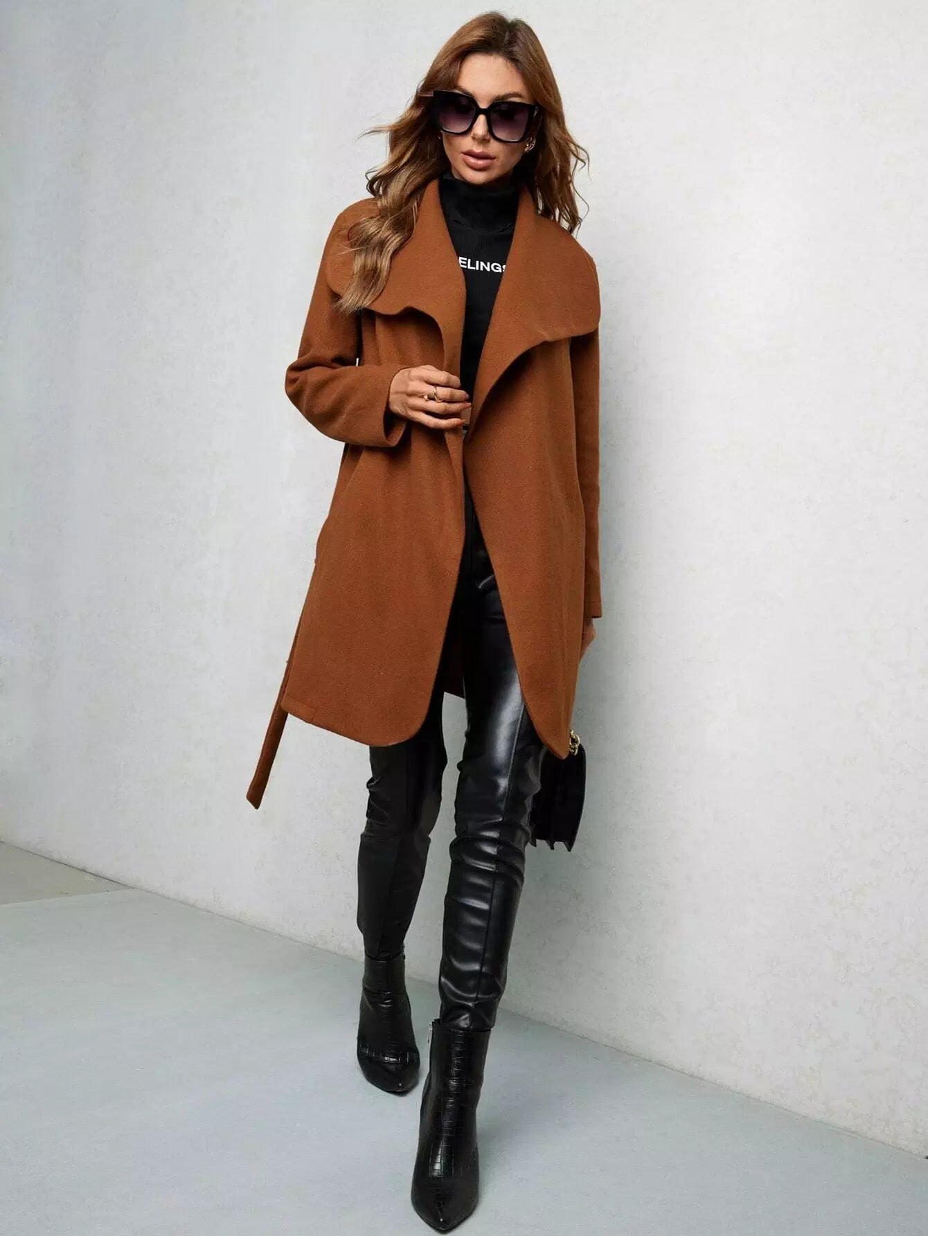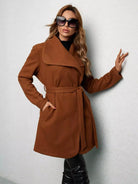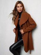 معطف بياقة الشلال بدون حزام