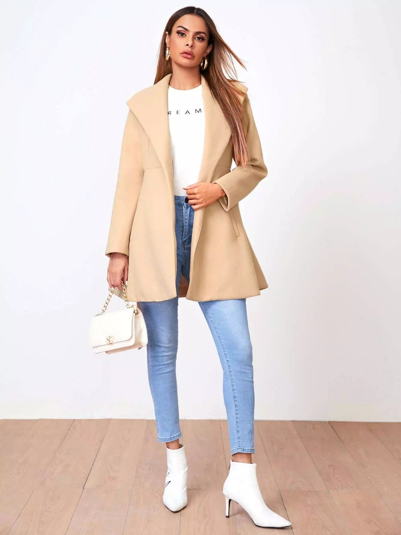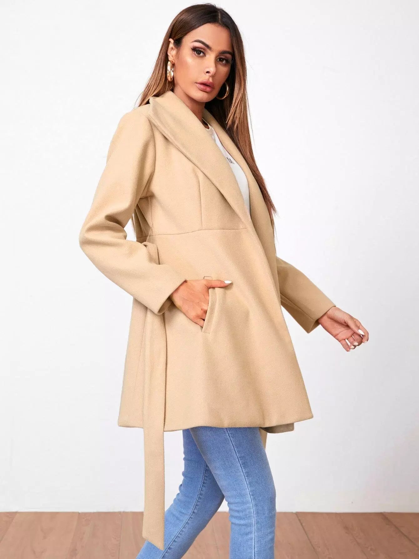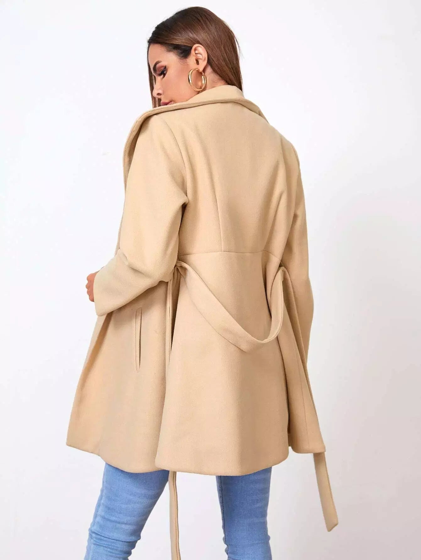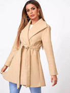 معطف ذاتي برقبة الشلال بدون حزام