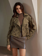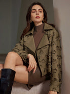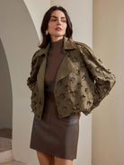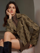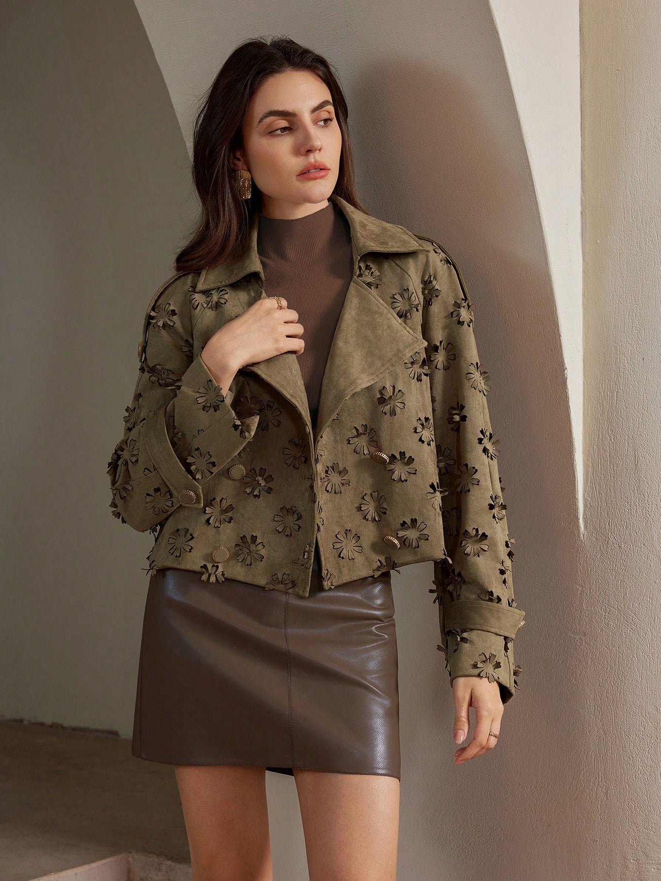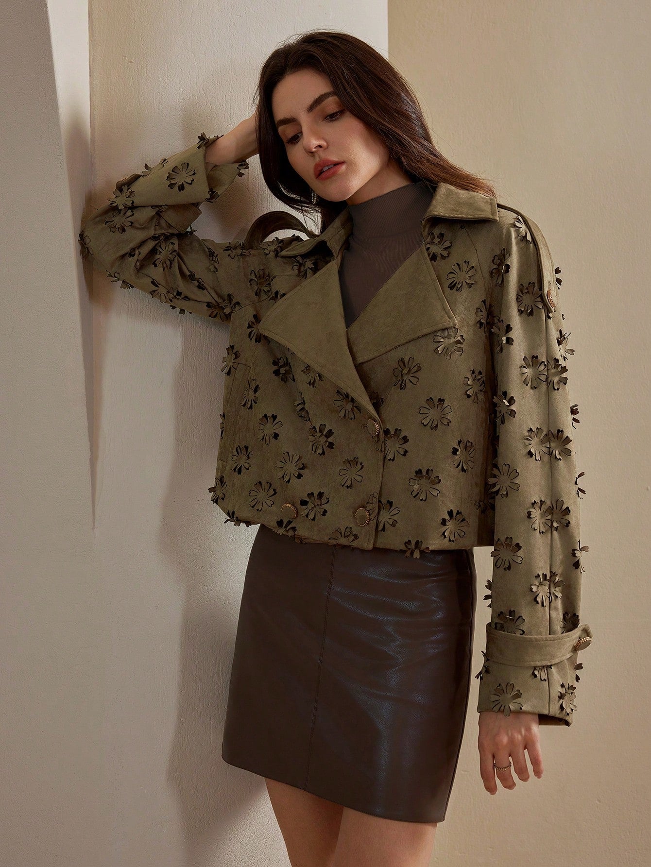 معطف ترنش نسائي من Anewsta، بياقة بحرية، منقوش بتقنية الليزر ثلاثية الأبعاد، مزين بنقشة زهور