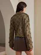 women Anewsta Women's Navy Collar 3D Laser Floral Embossed Trench Coat