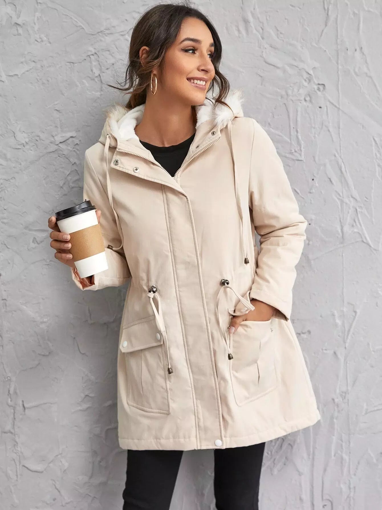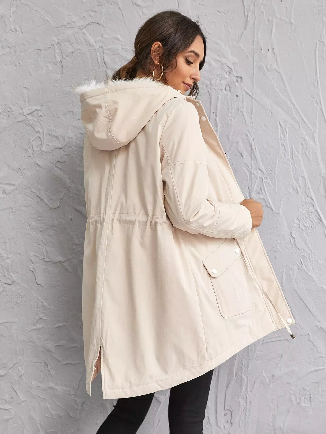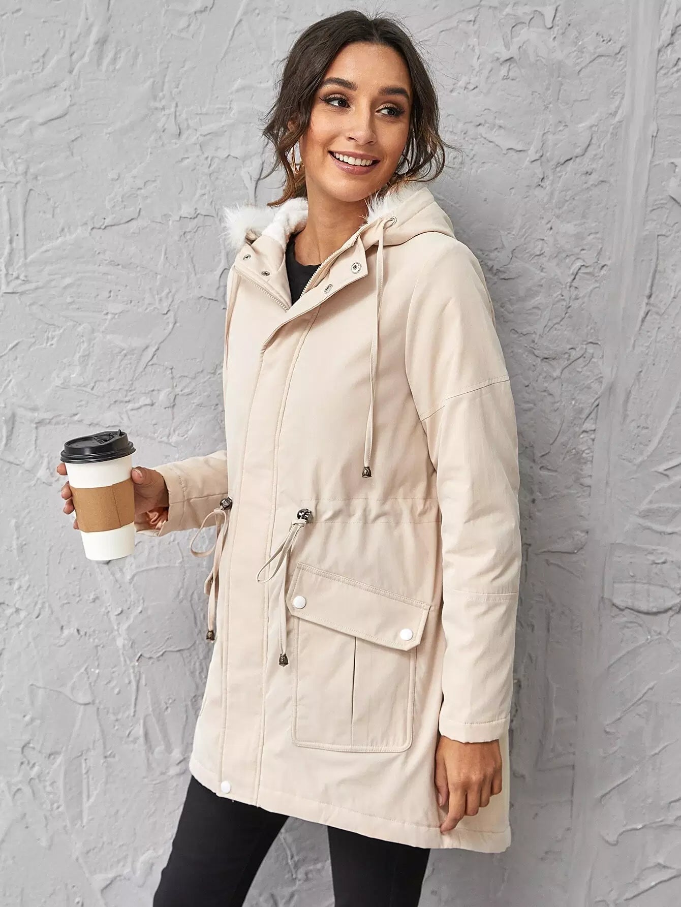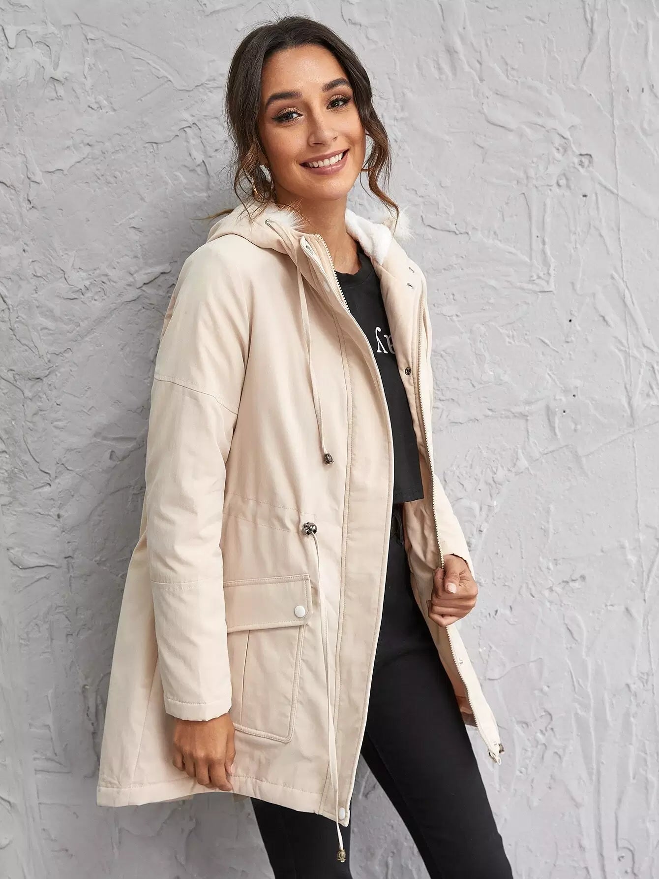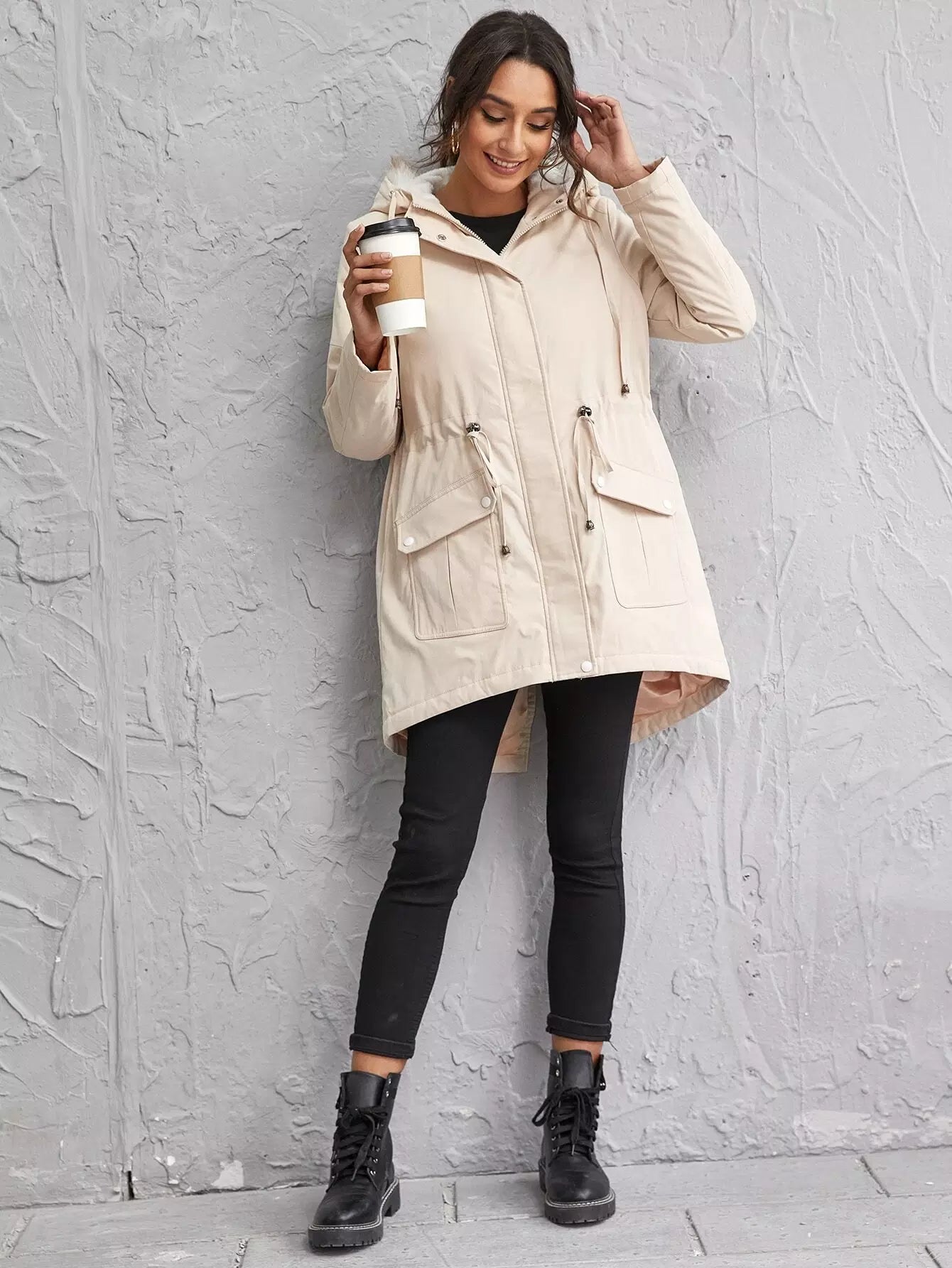 معطف باركا بقلنسوة برباط على الخصر مزين برباط