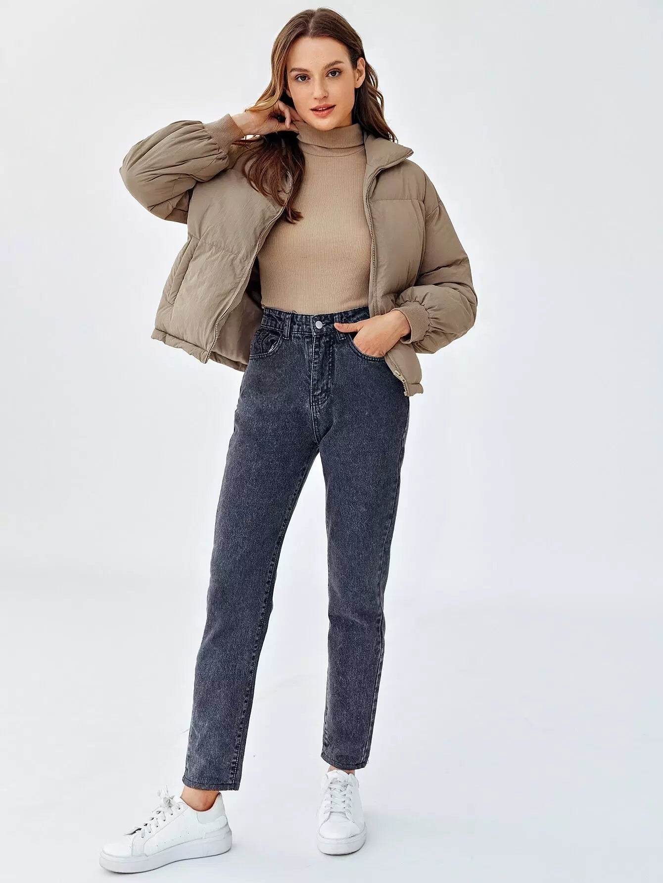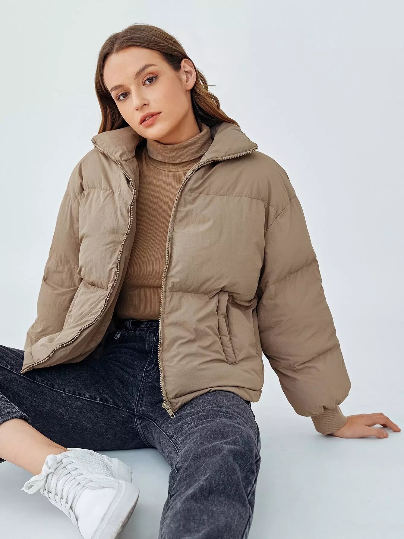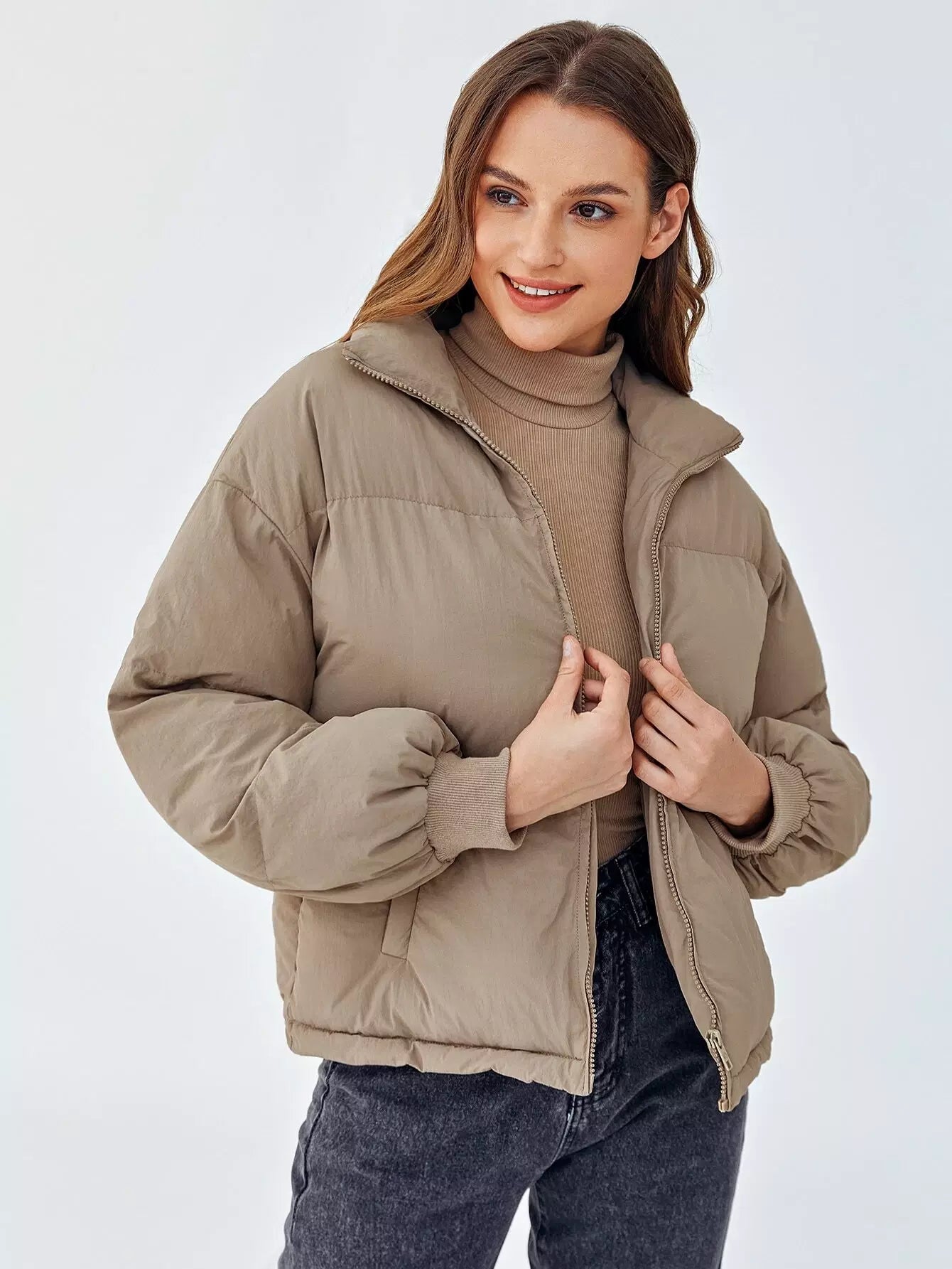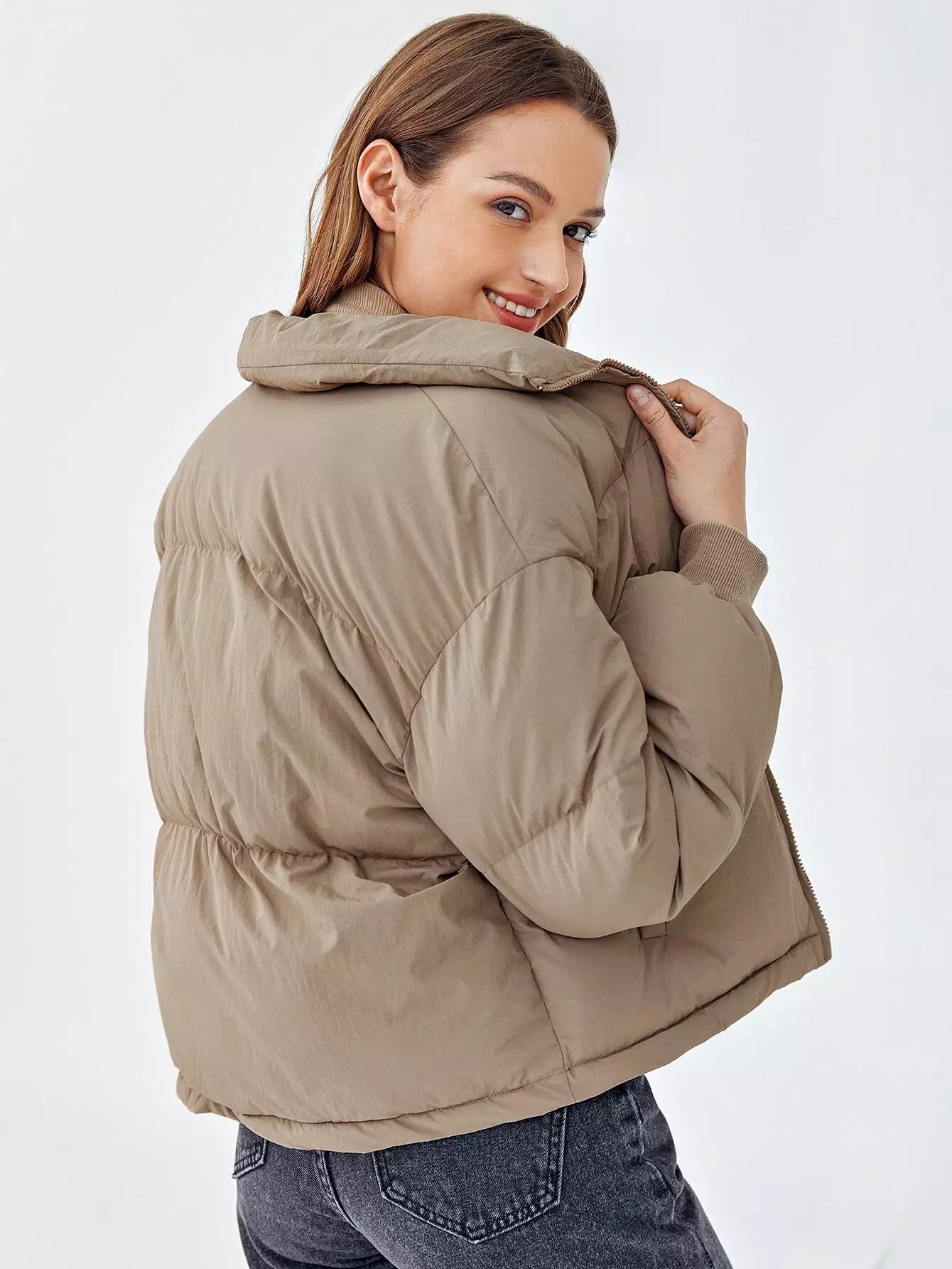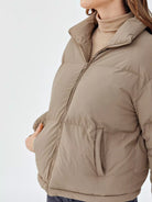 سترة منفوخة بسحاب وأكتاف منسدلة
