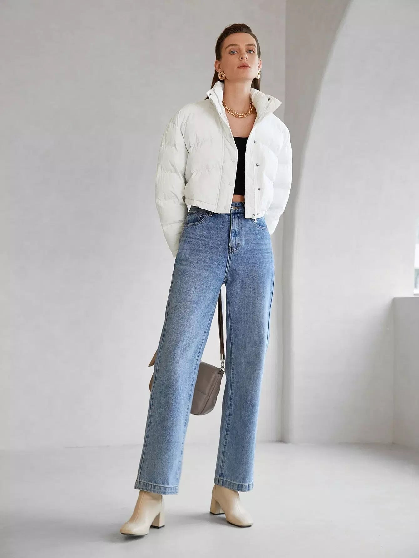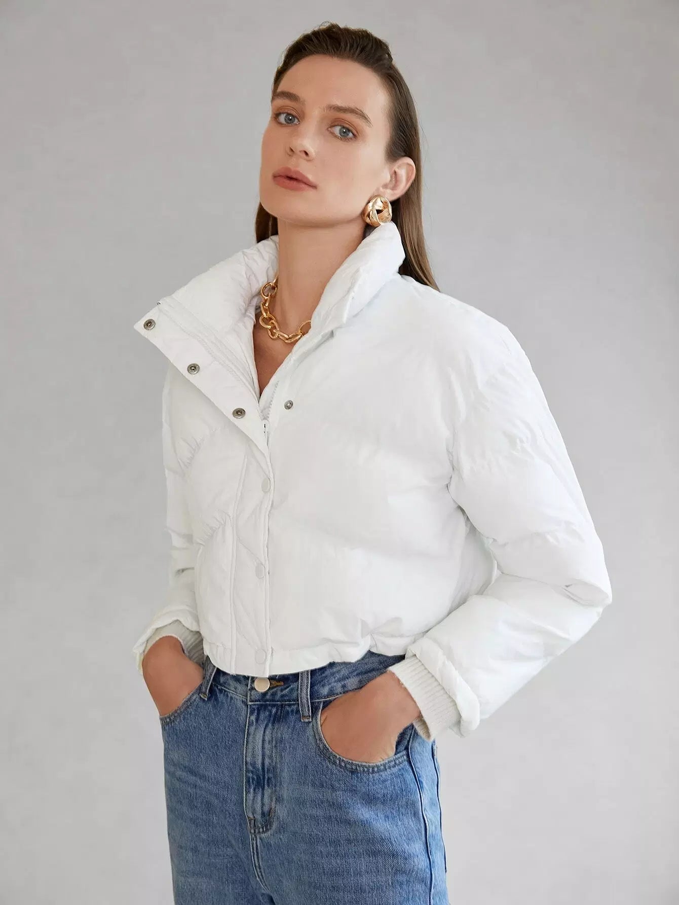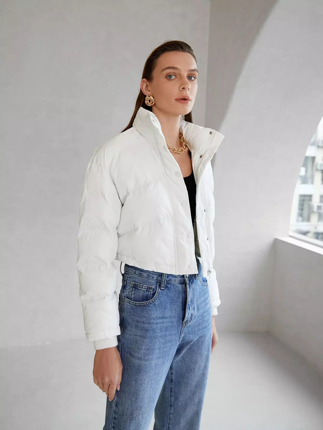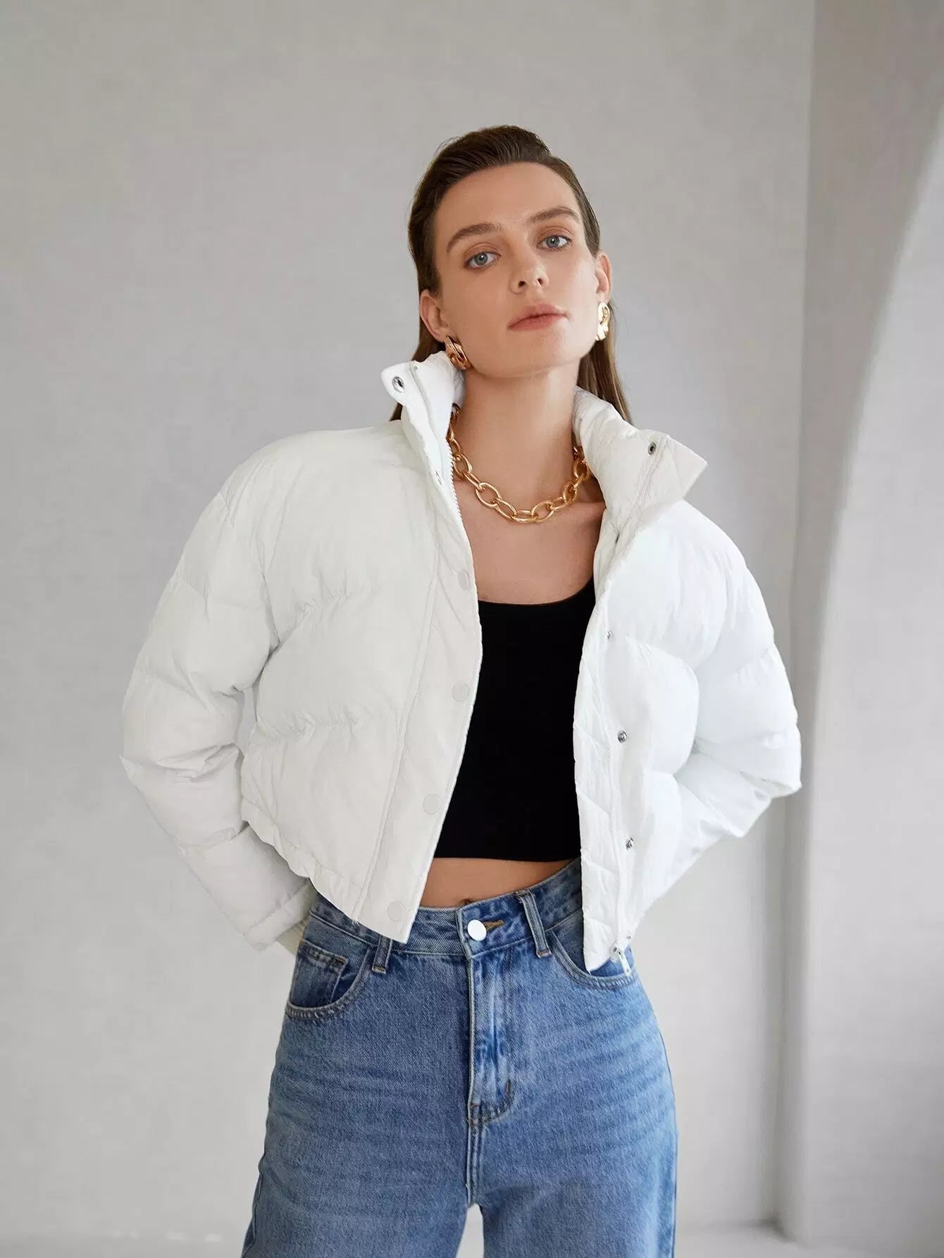 معطف قصير منسدل الكتفين بسحاب منسدل بسحاب