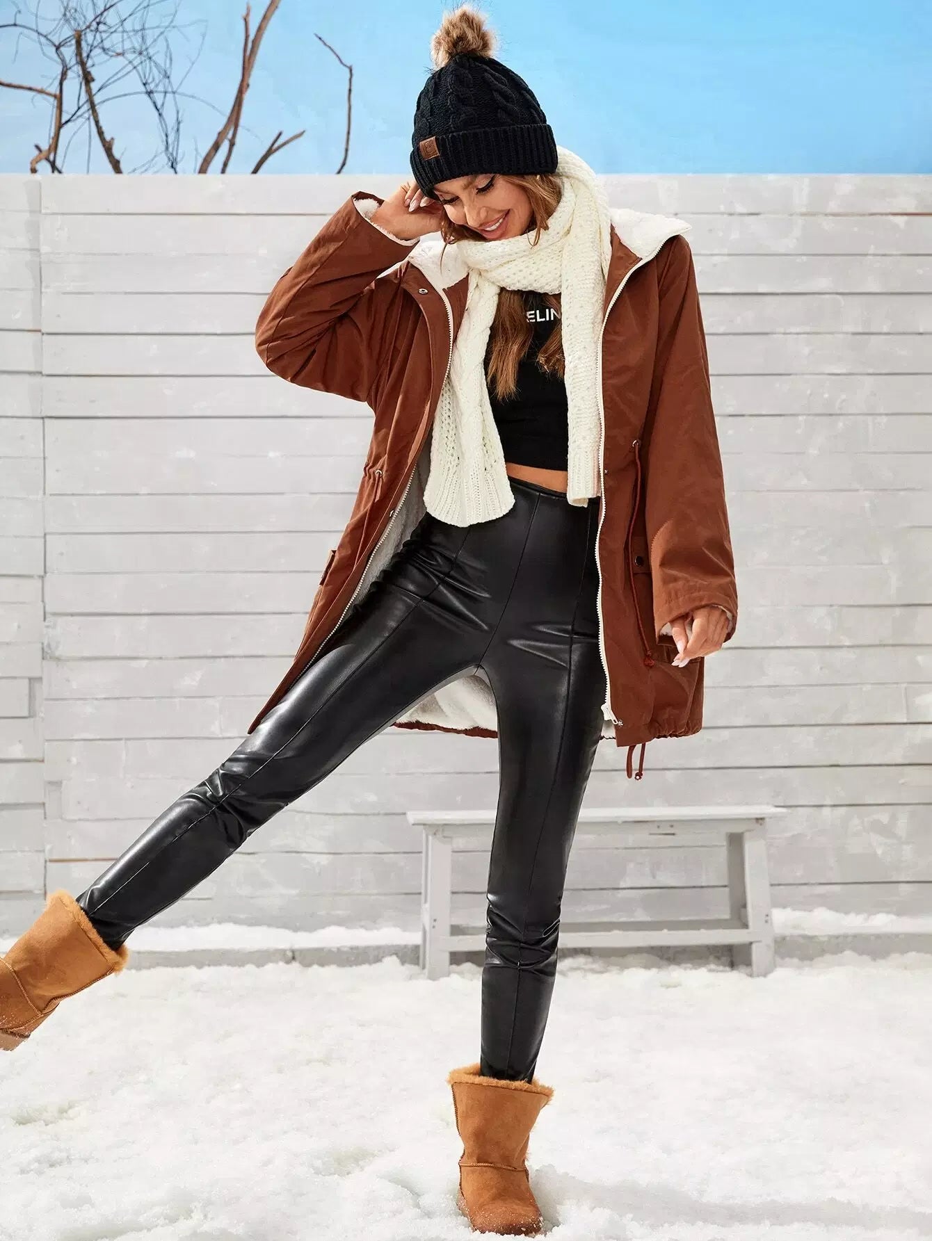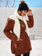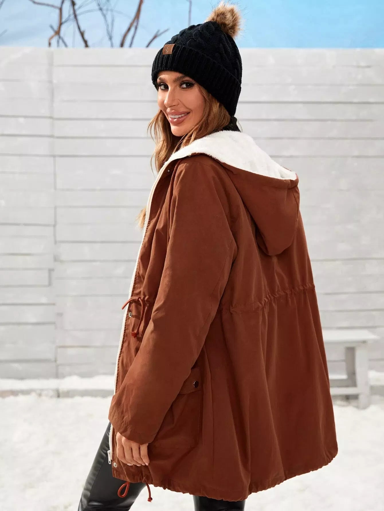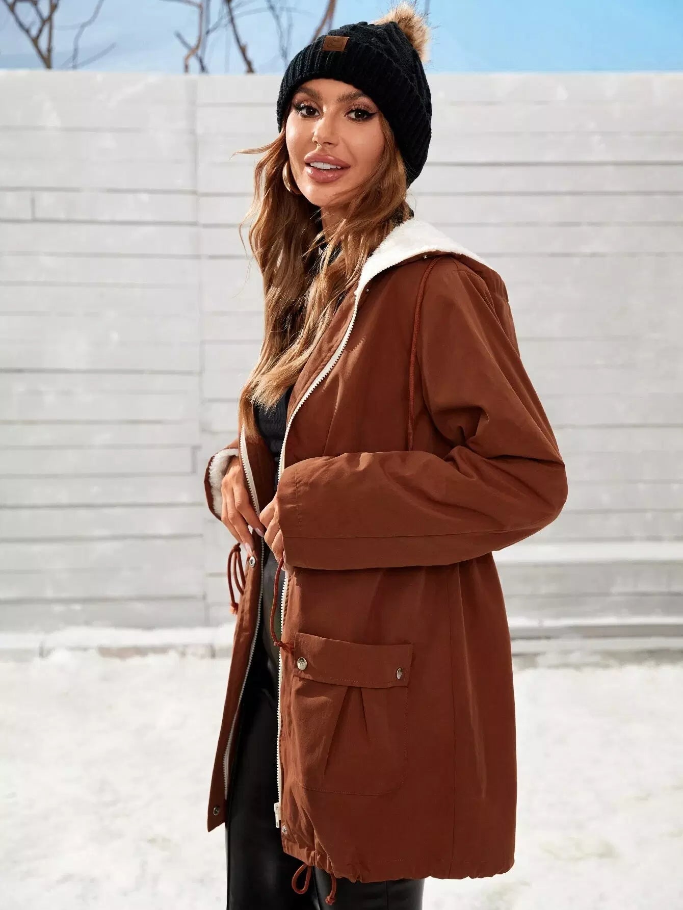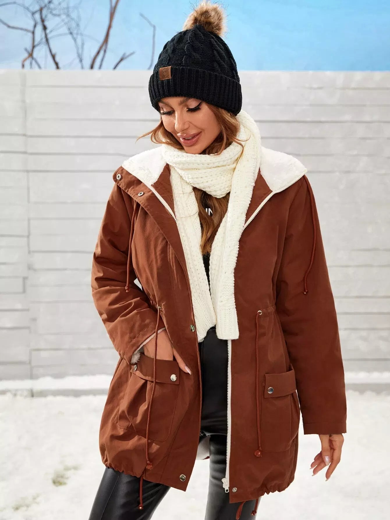 معطف باركا بقلنسوة بقبعة ذات خصر برباط بجيبين