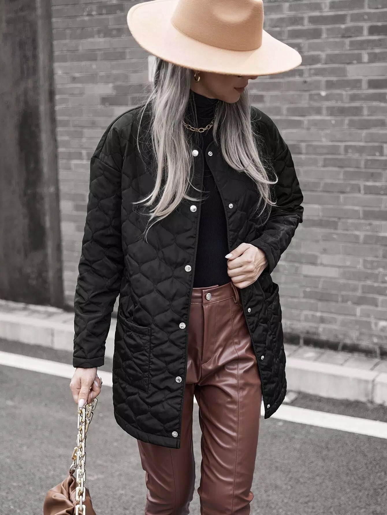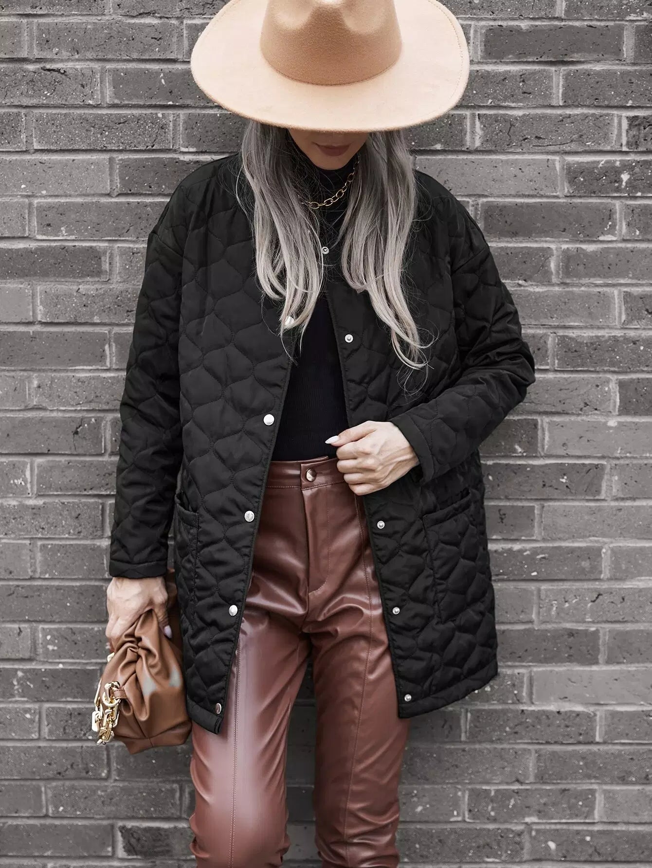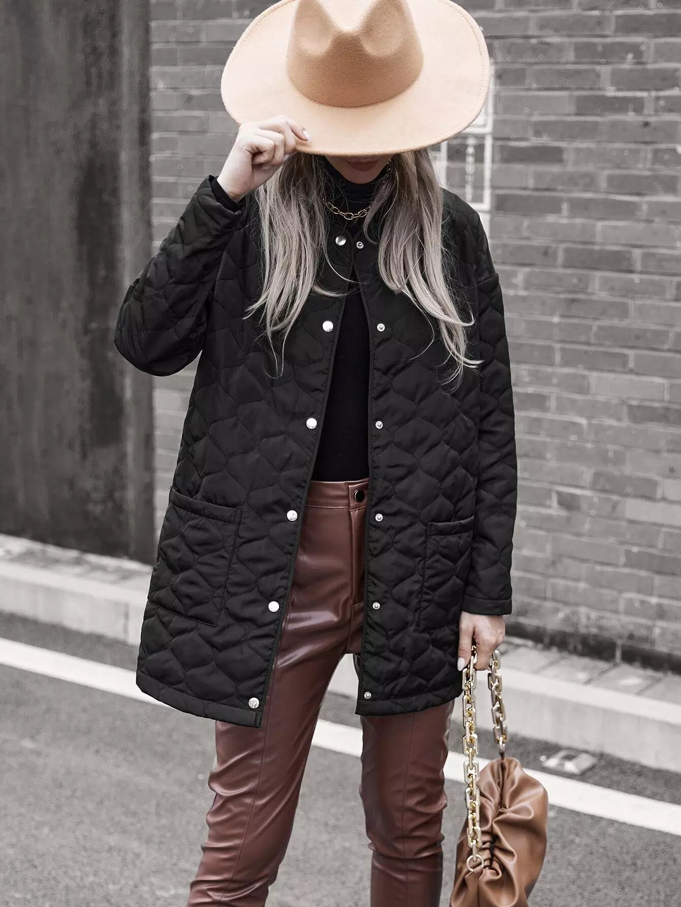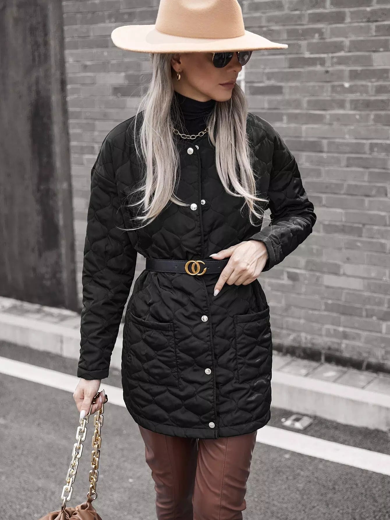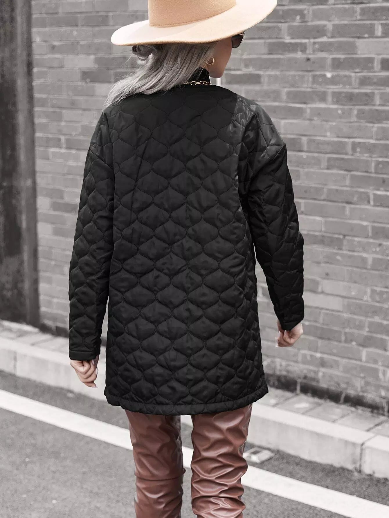 معطف مبطن منسدل الكتفين بجيبين