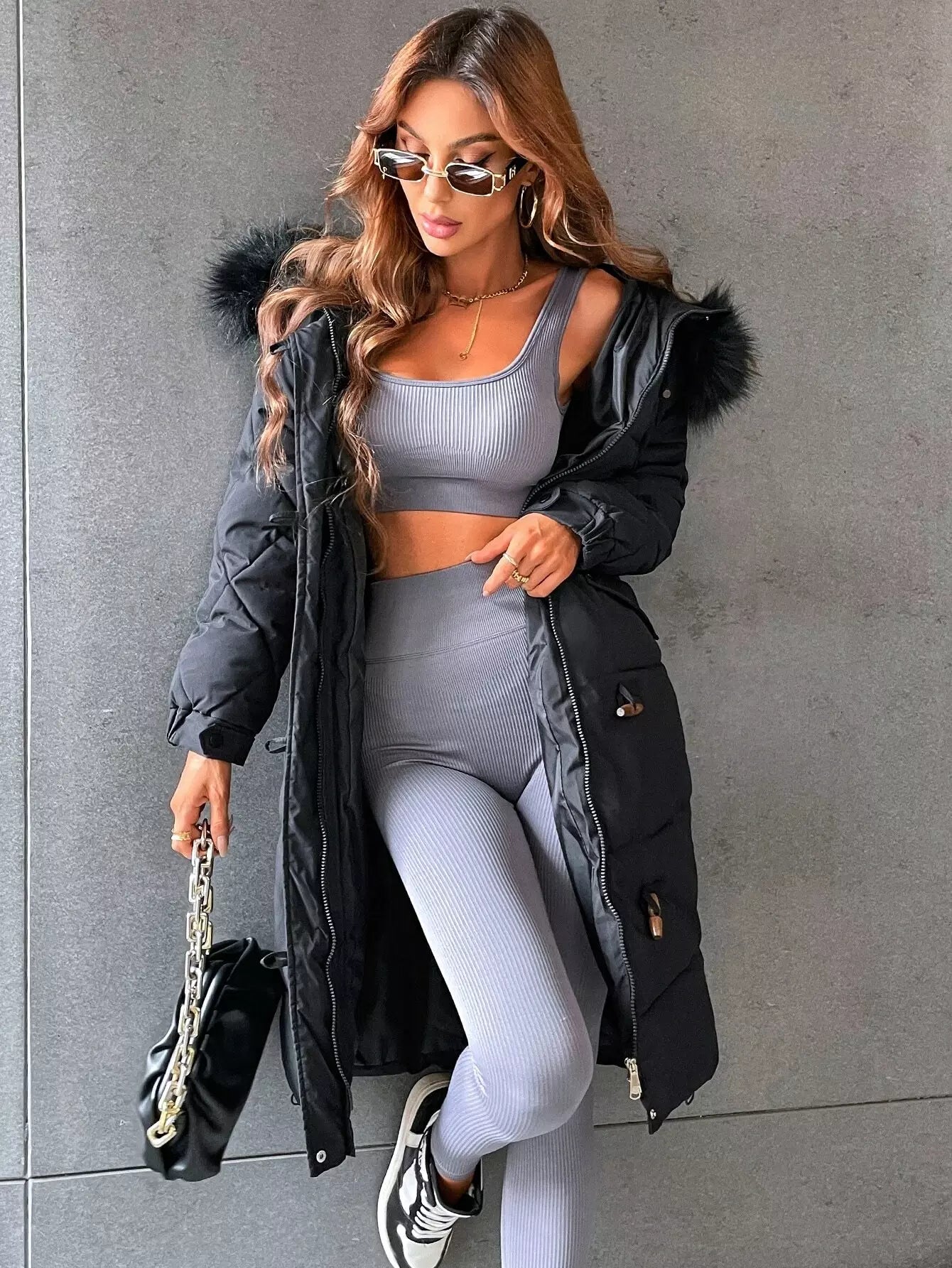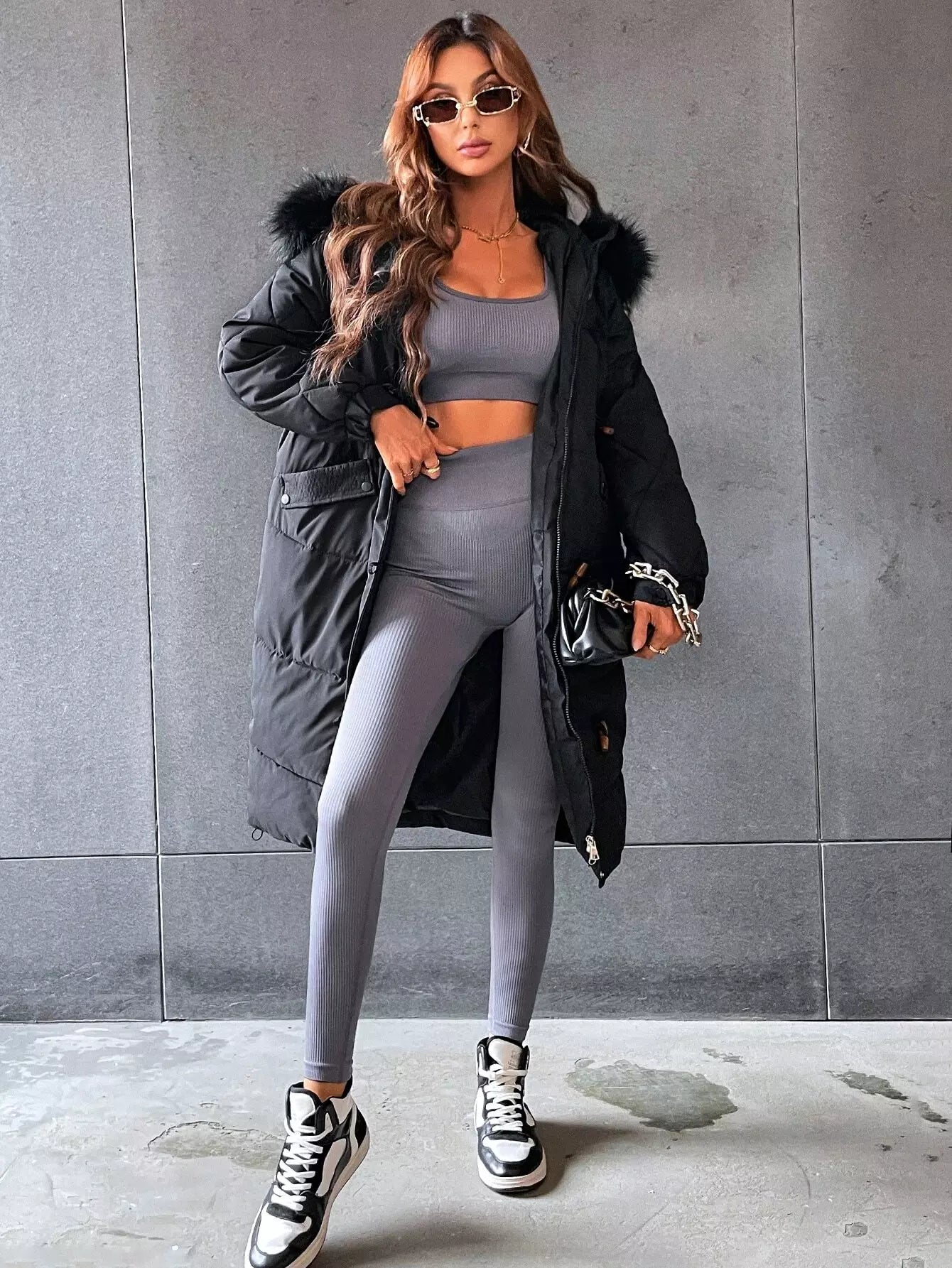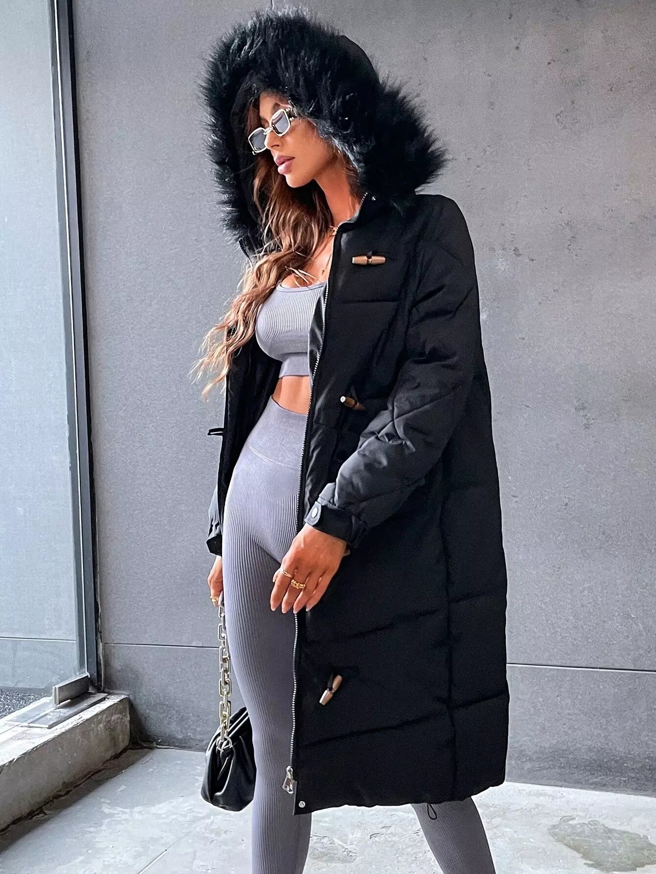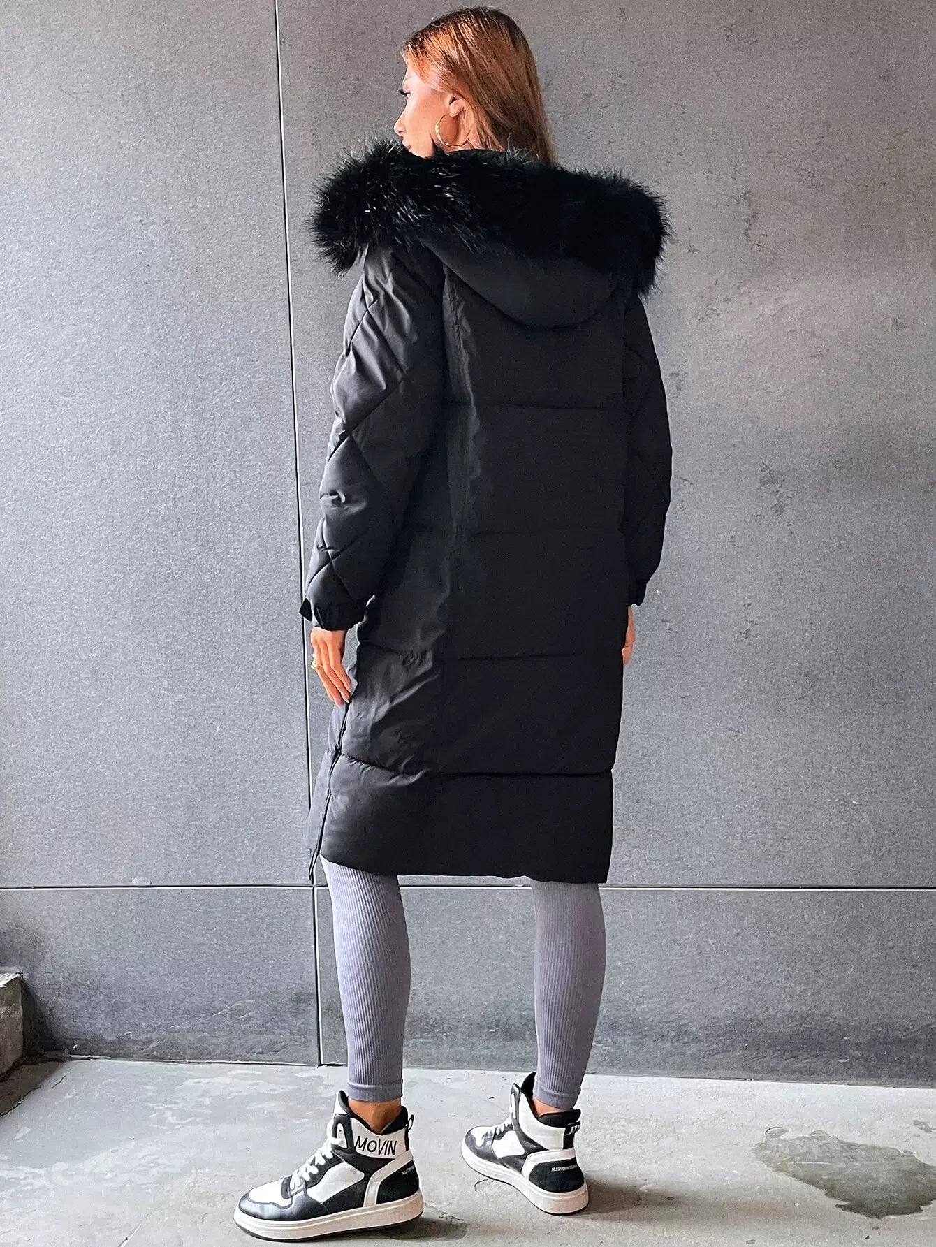معطف بقبعة منفوخة بغطاء للرأس مزين بجيبين