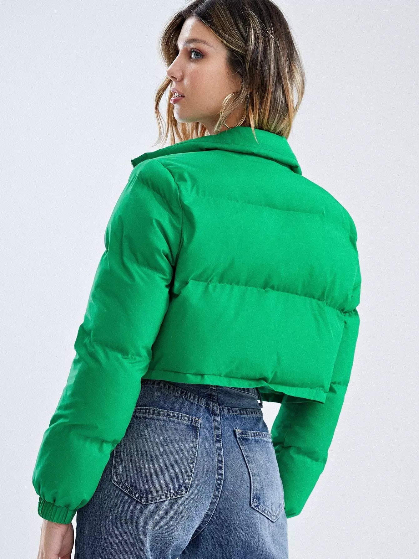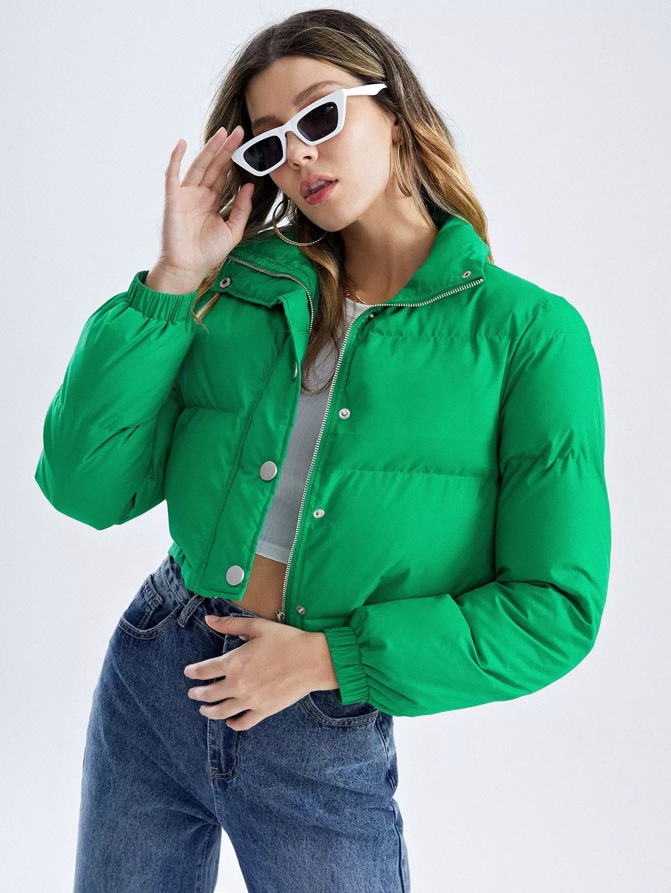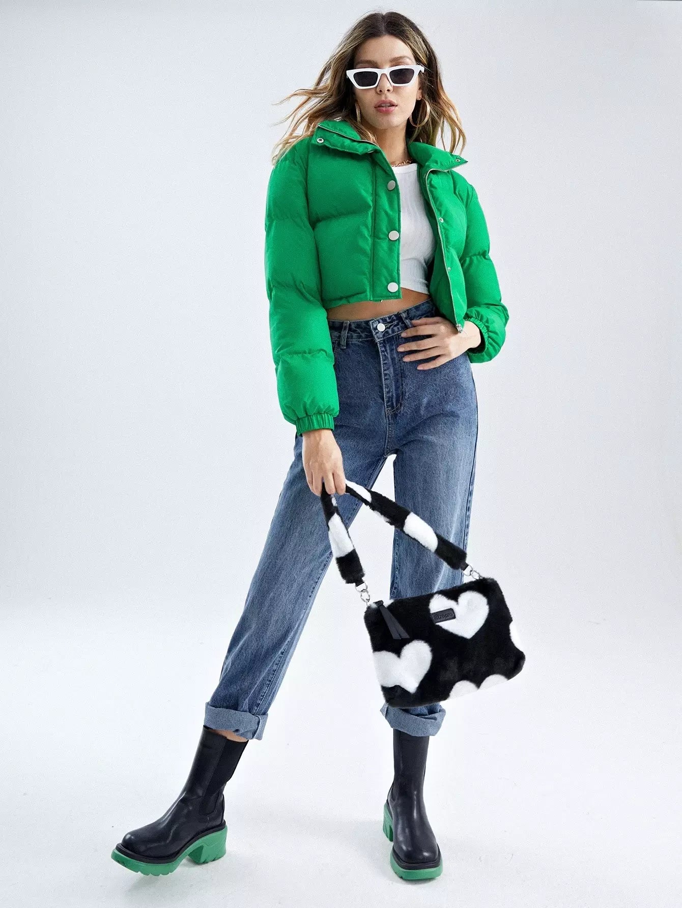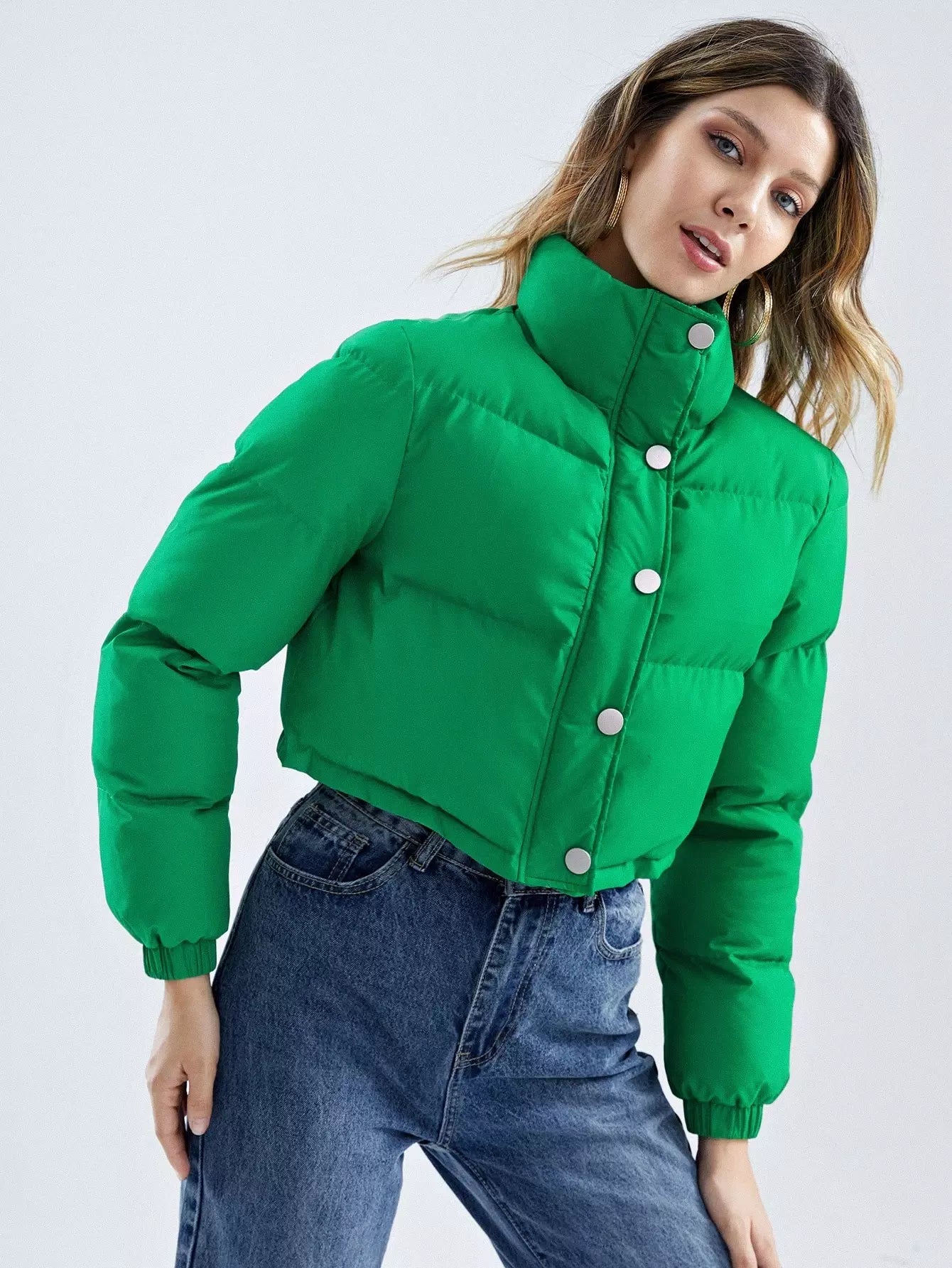 معطف بياقة عالية بفتحة صدر واحدة بفتحة منفوخة برقبة عالية