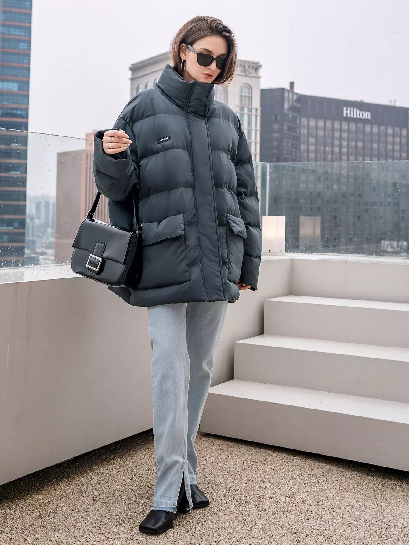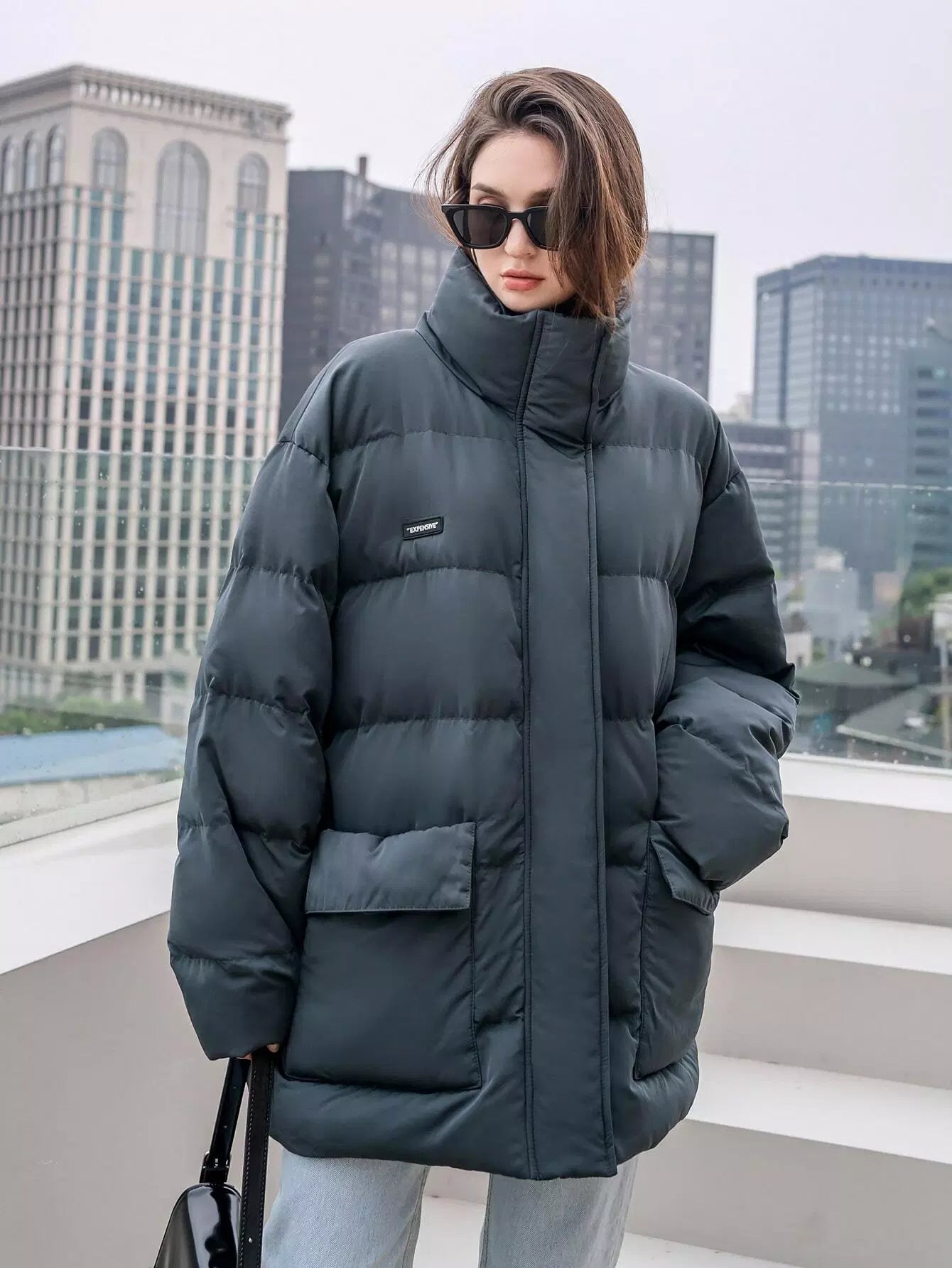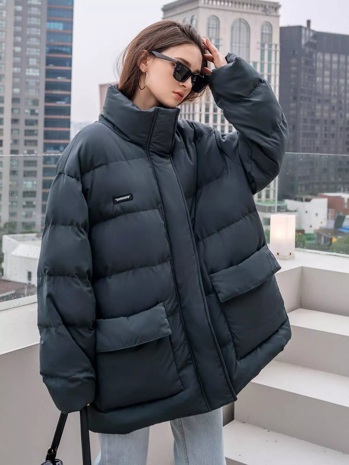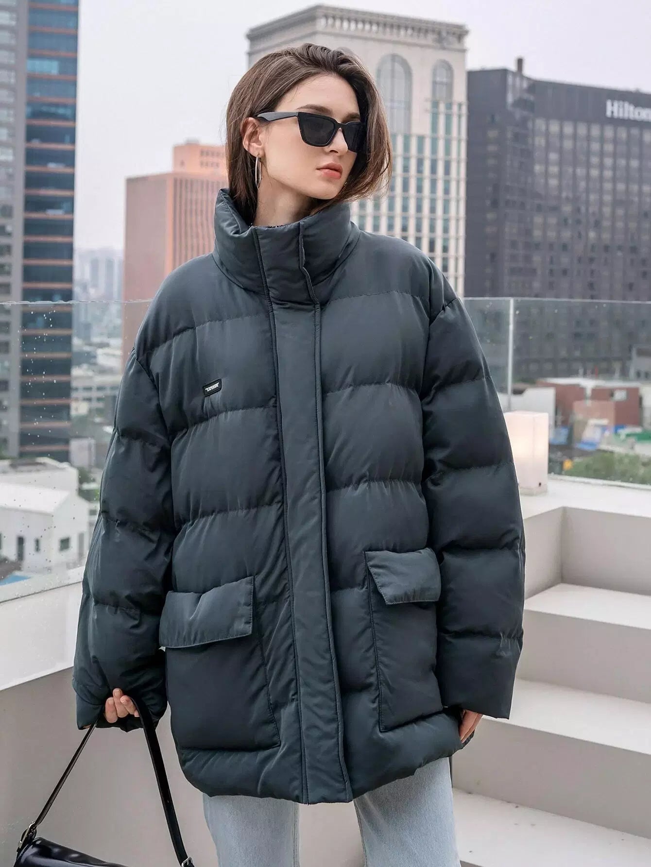 معطف برقعة منفوخة برقبة منفوخة على شكل حرف