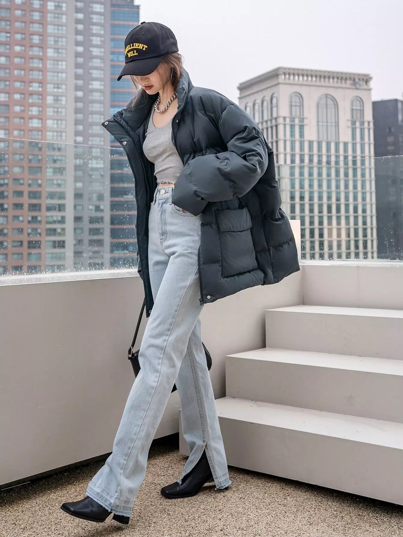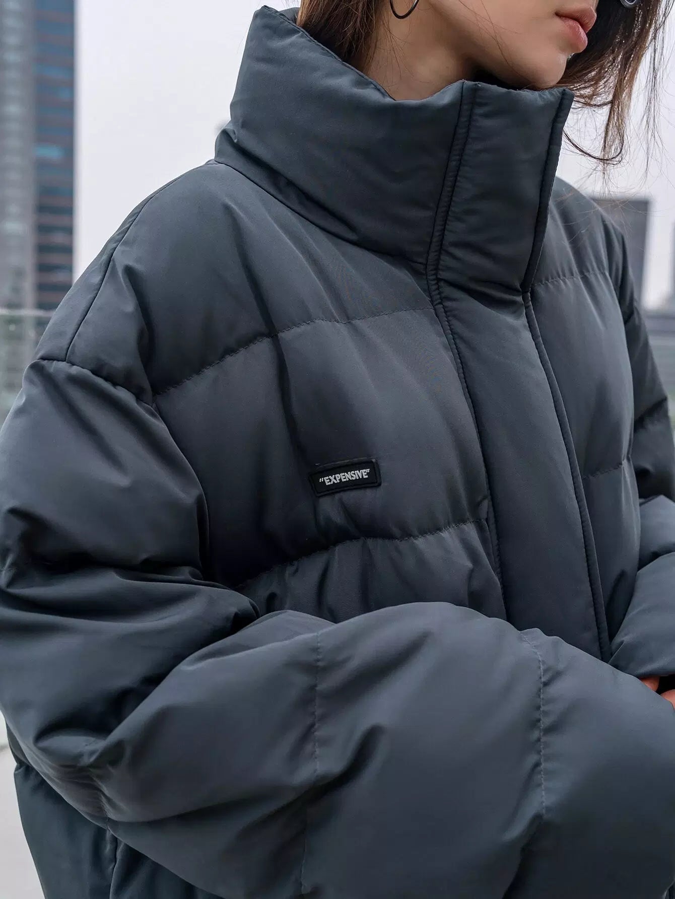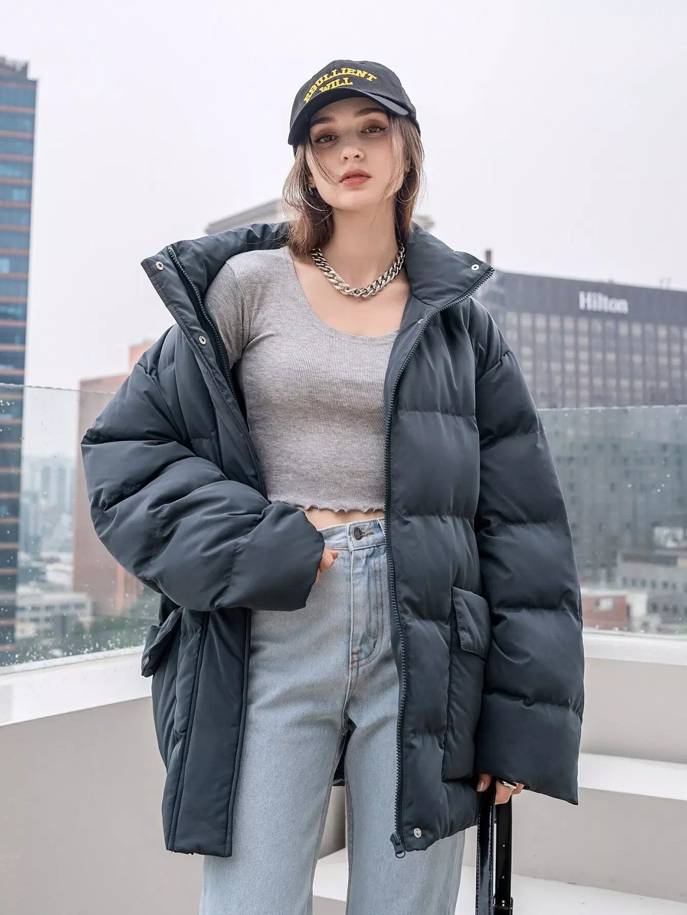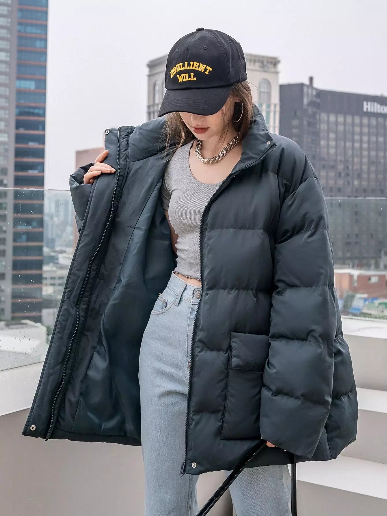 معطف برقعة منفوخة برقبة منفوخة على شكل حرف