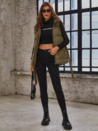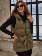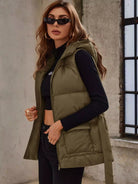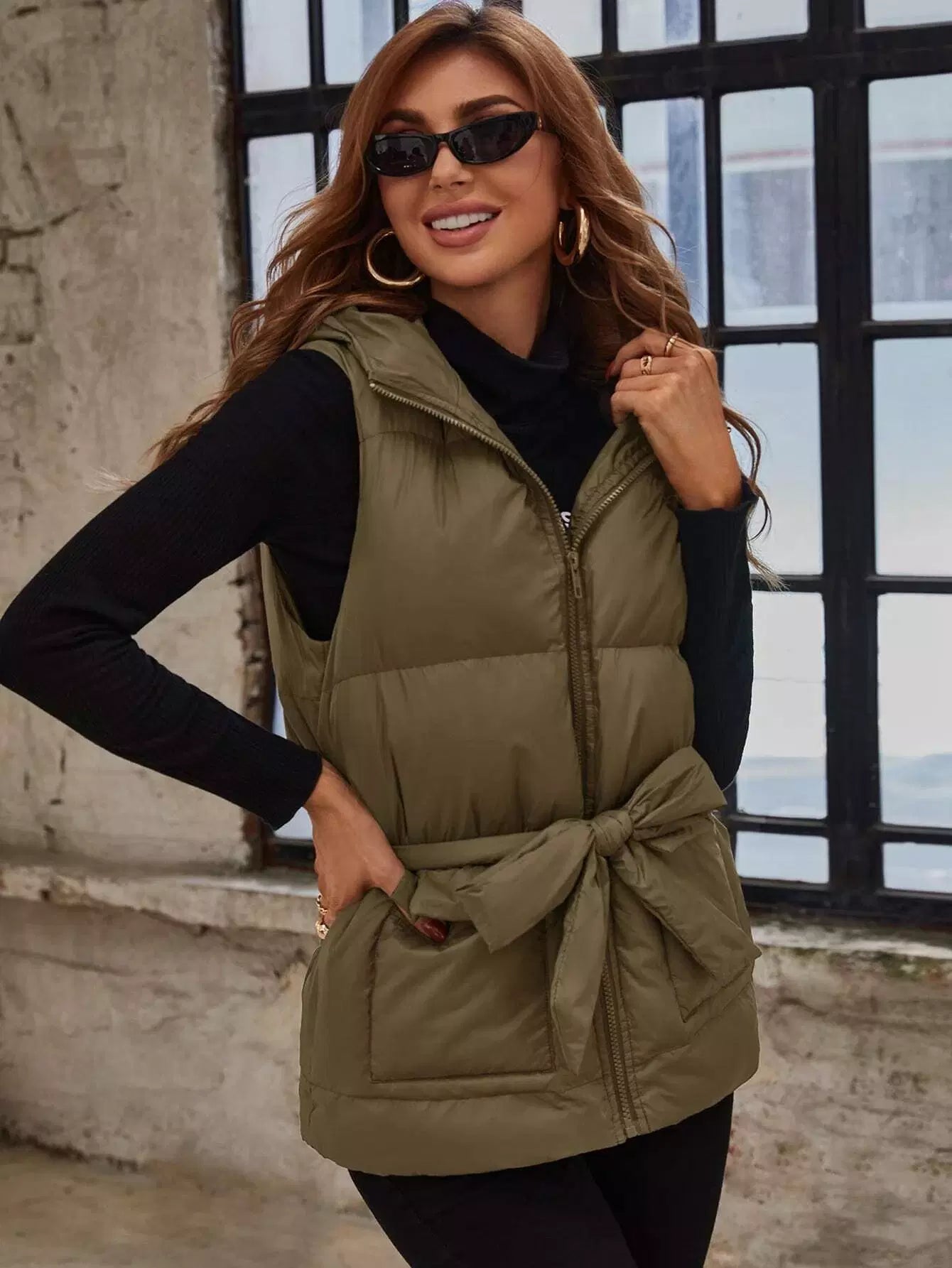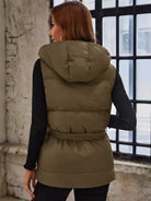 معطف منتفخ بغطاء للرأس بجيب أمامي بدون تي شيرت بدون حزام