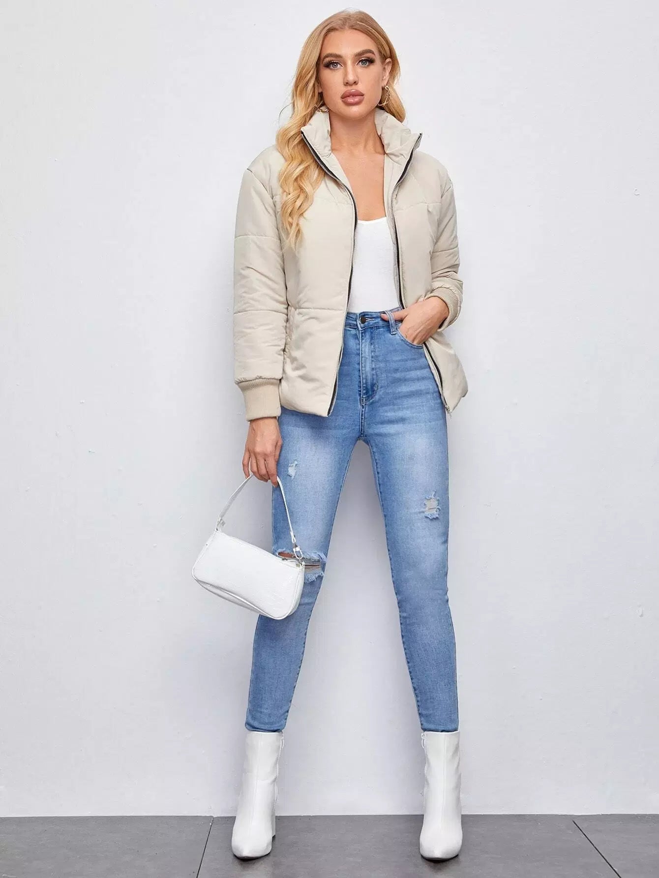 جاكيت بجيب جانبي بسحّاب منفوخة منفوخة بسحاب