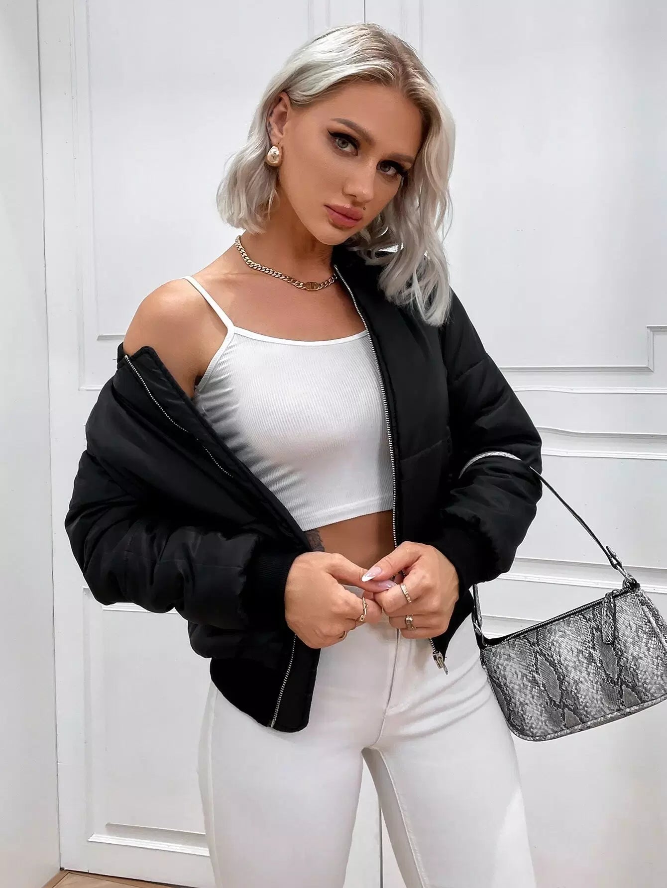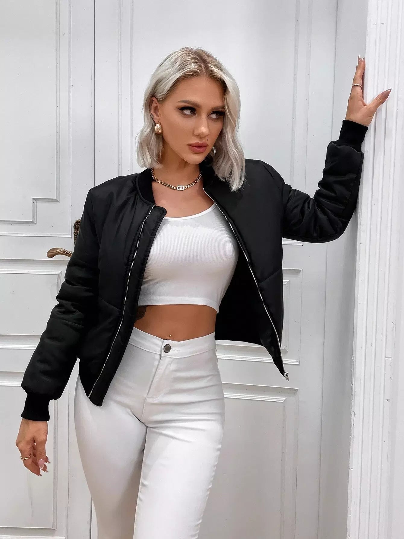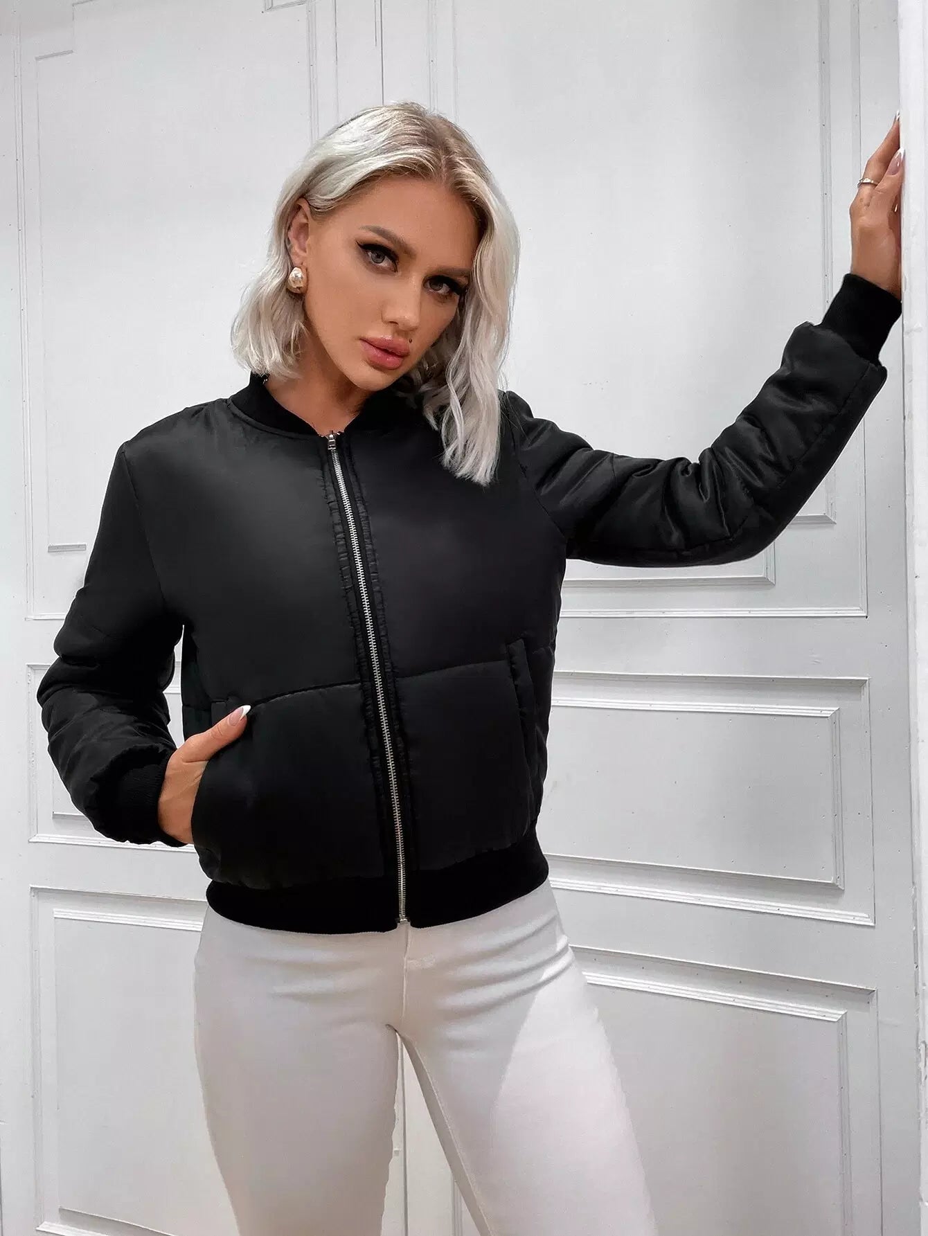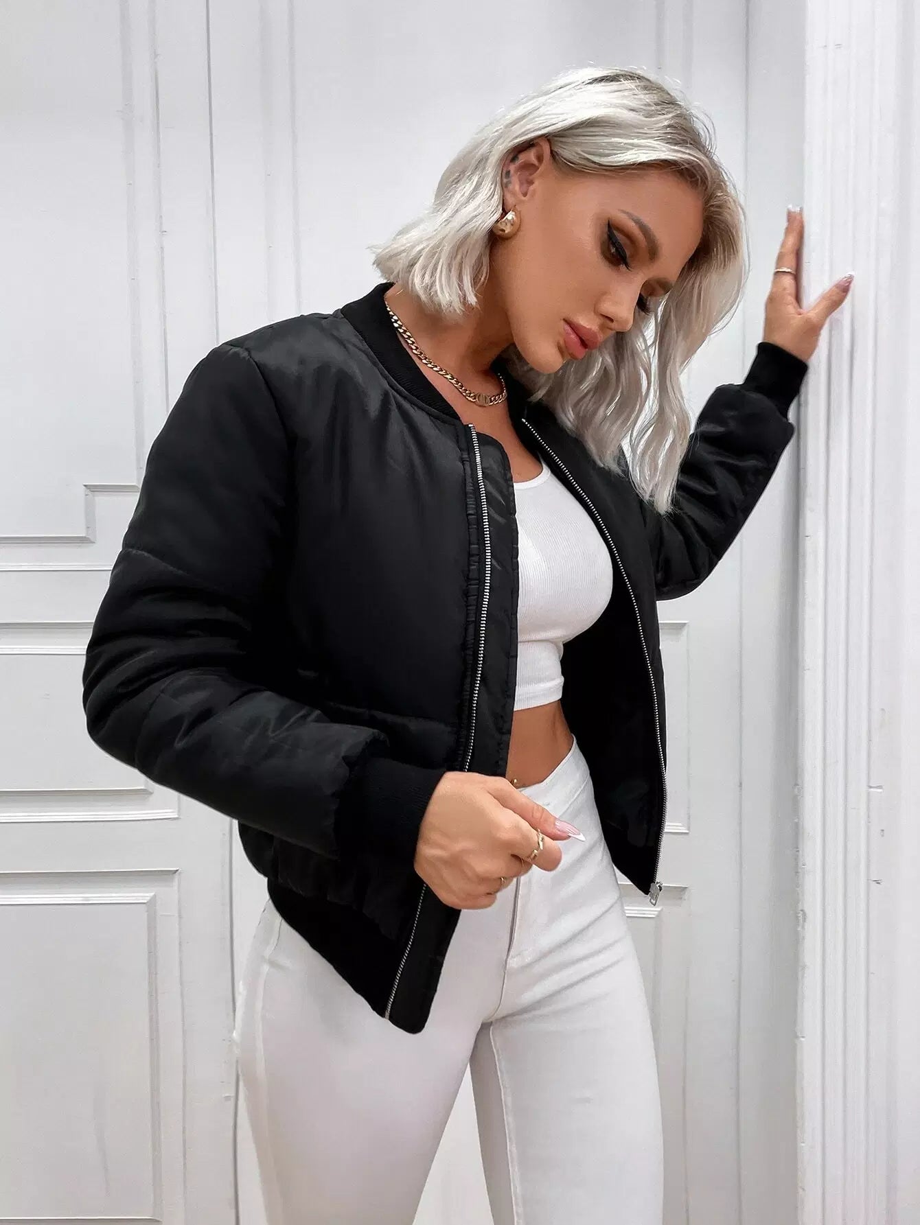 معطف شتوي بياقة بيسبول مائلة بجيوب مائلة