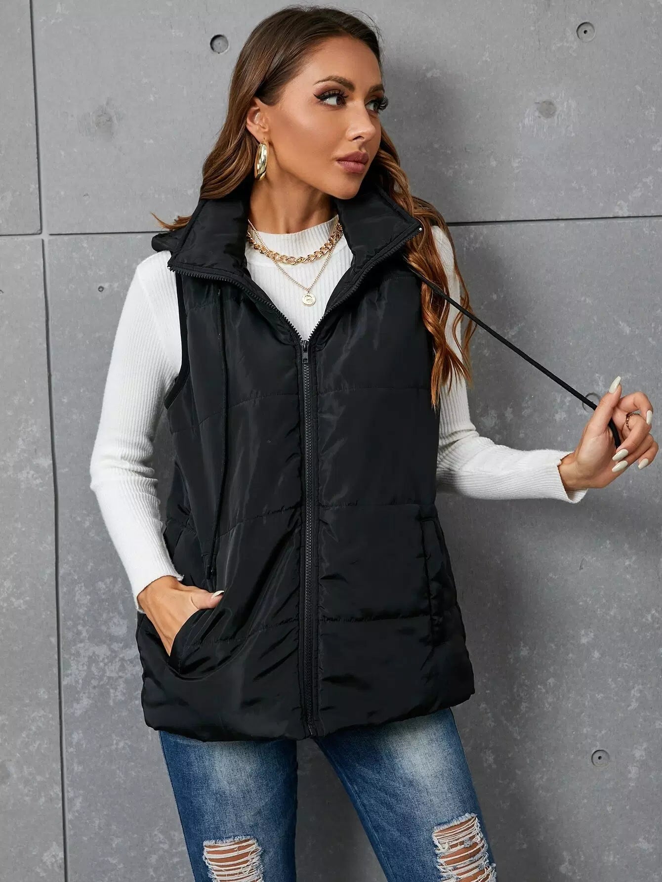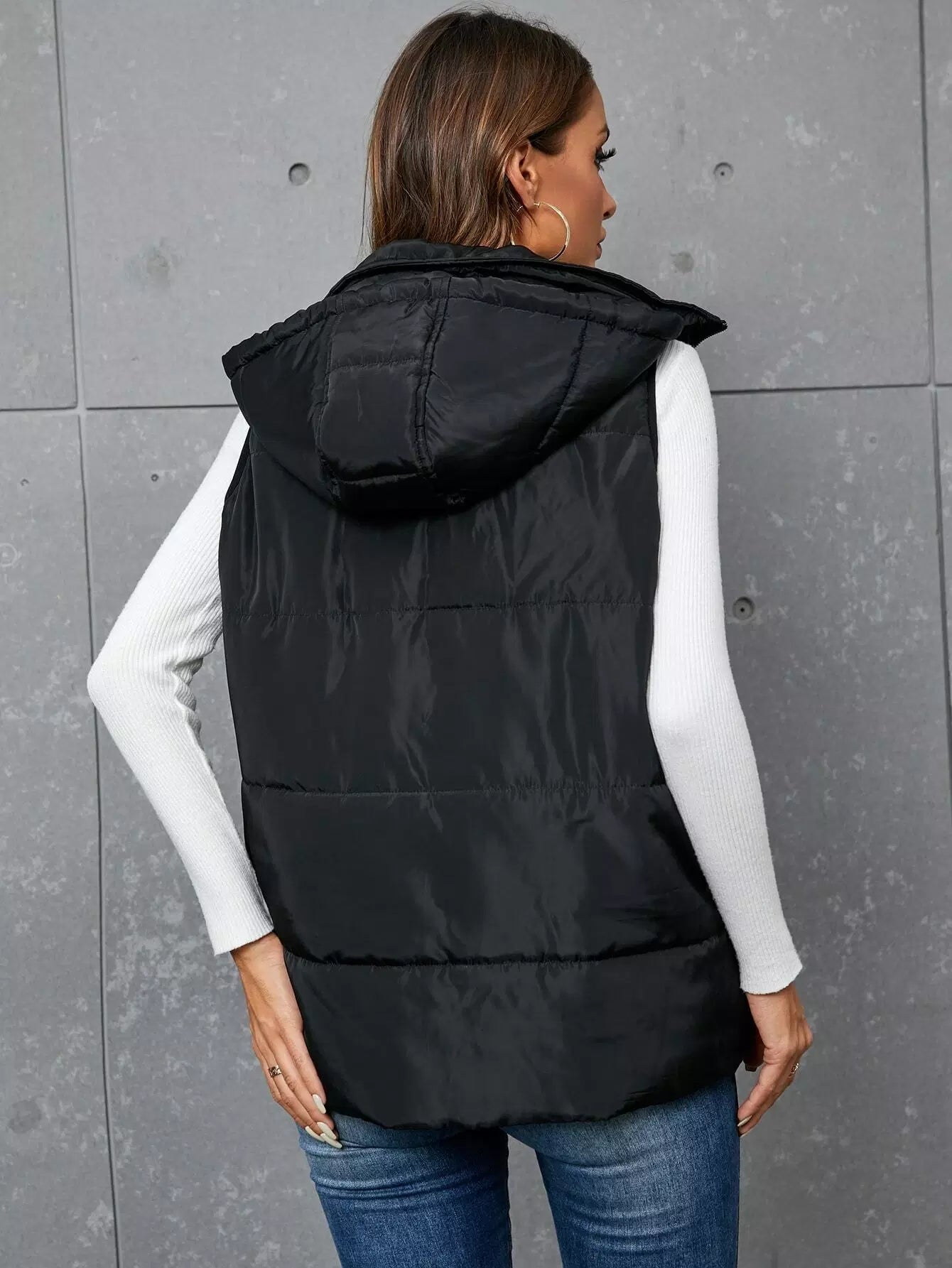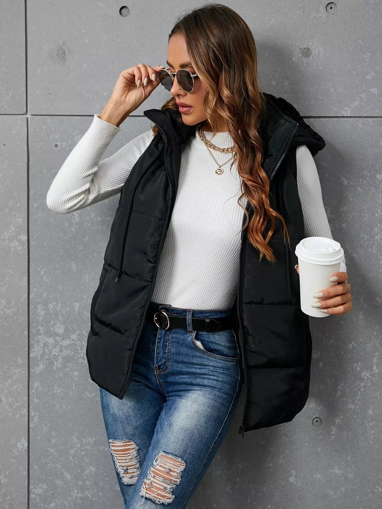 معطف منفوخة بجيوب مائلة بدون أكمام برباط بلا أكمام بقلنسوة