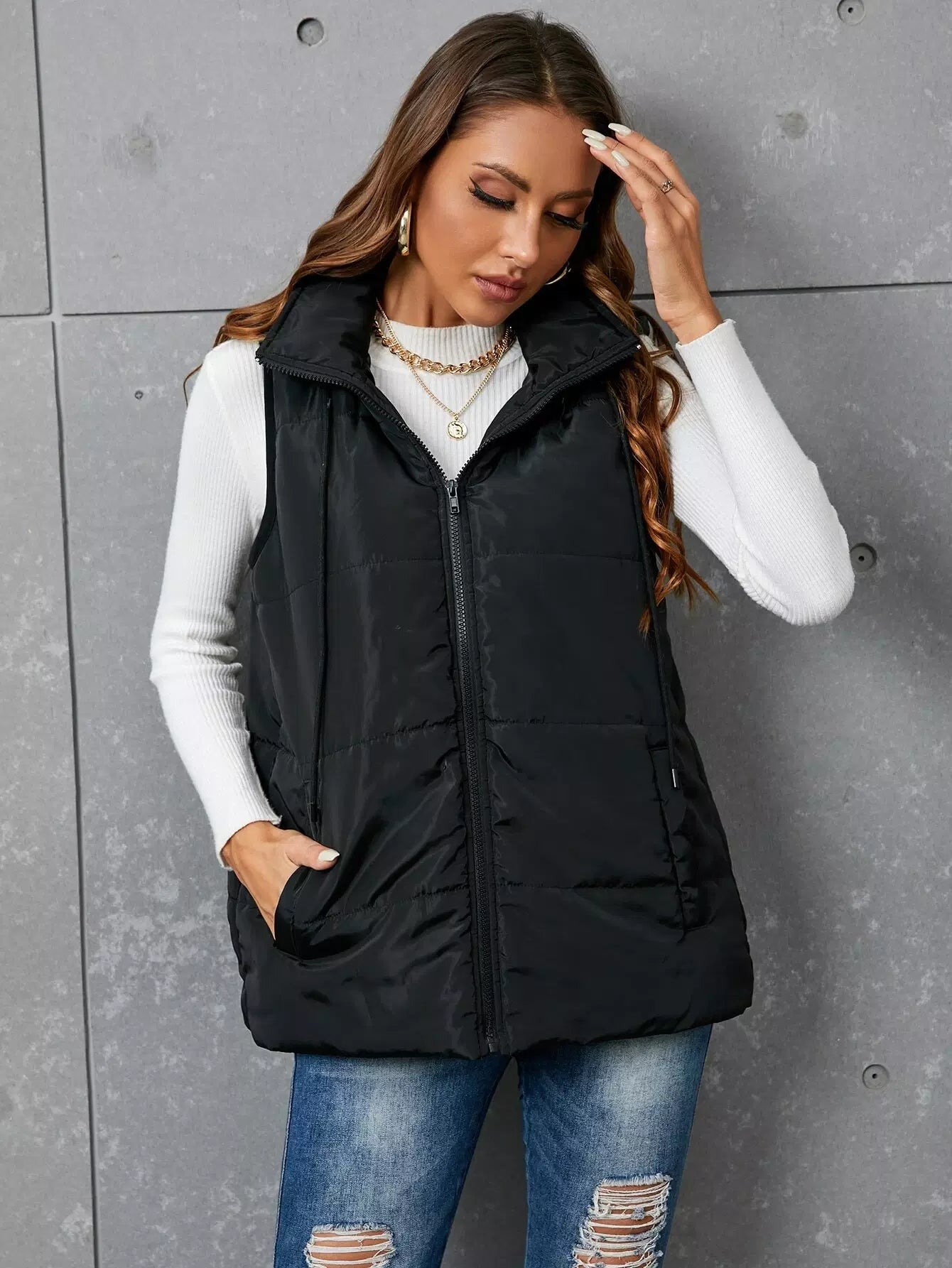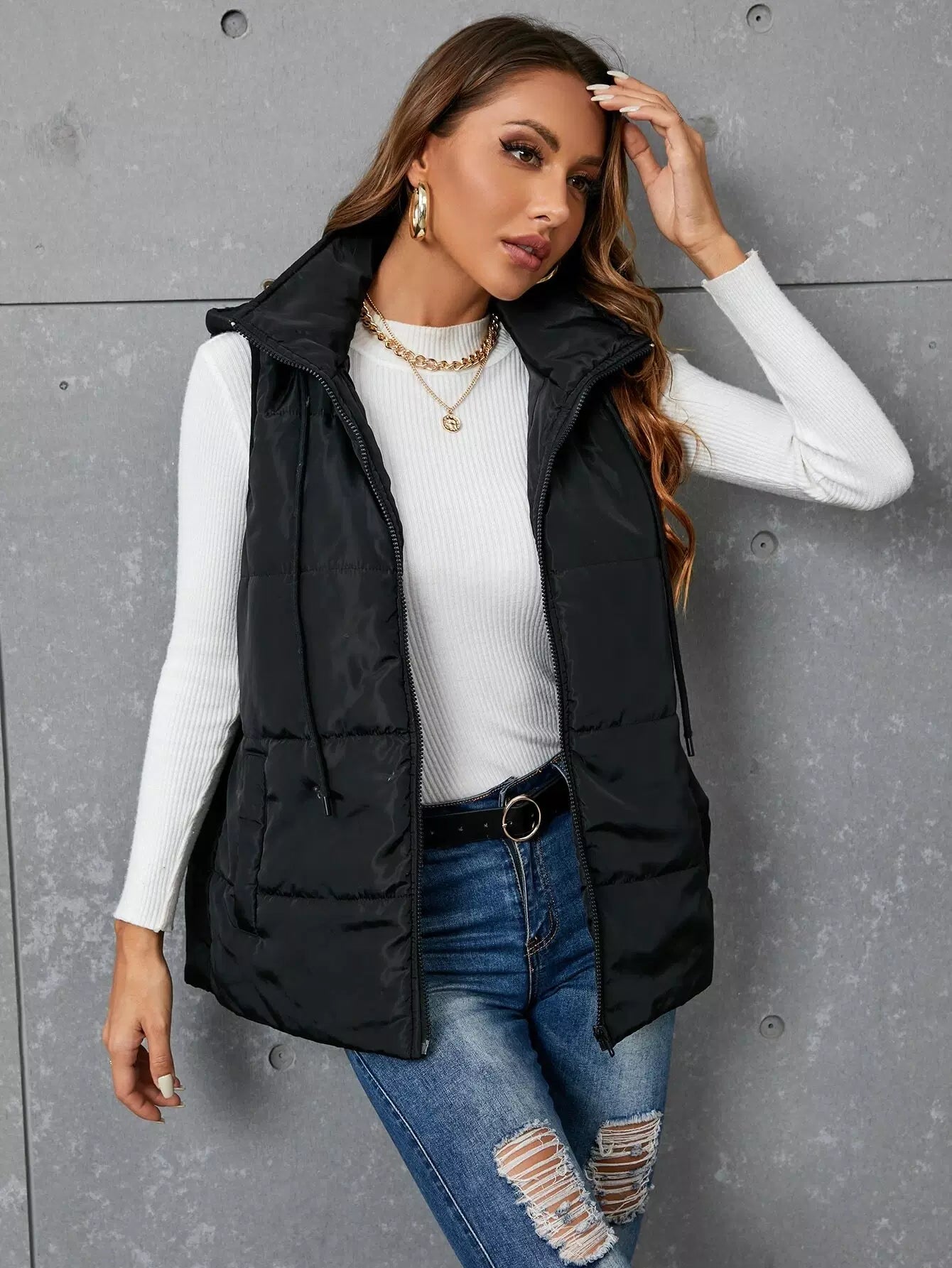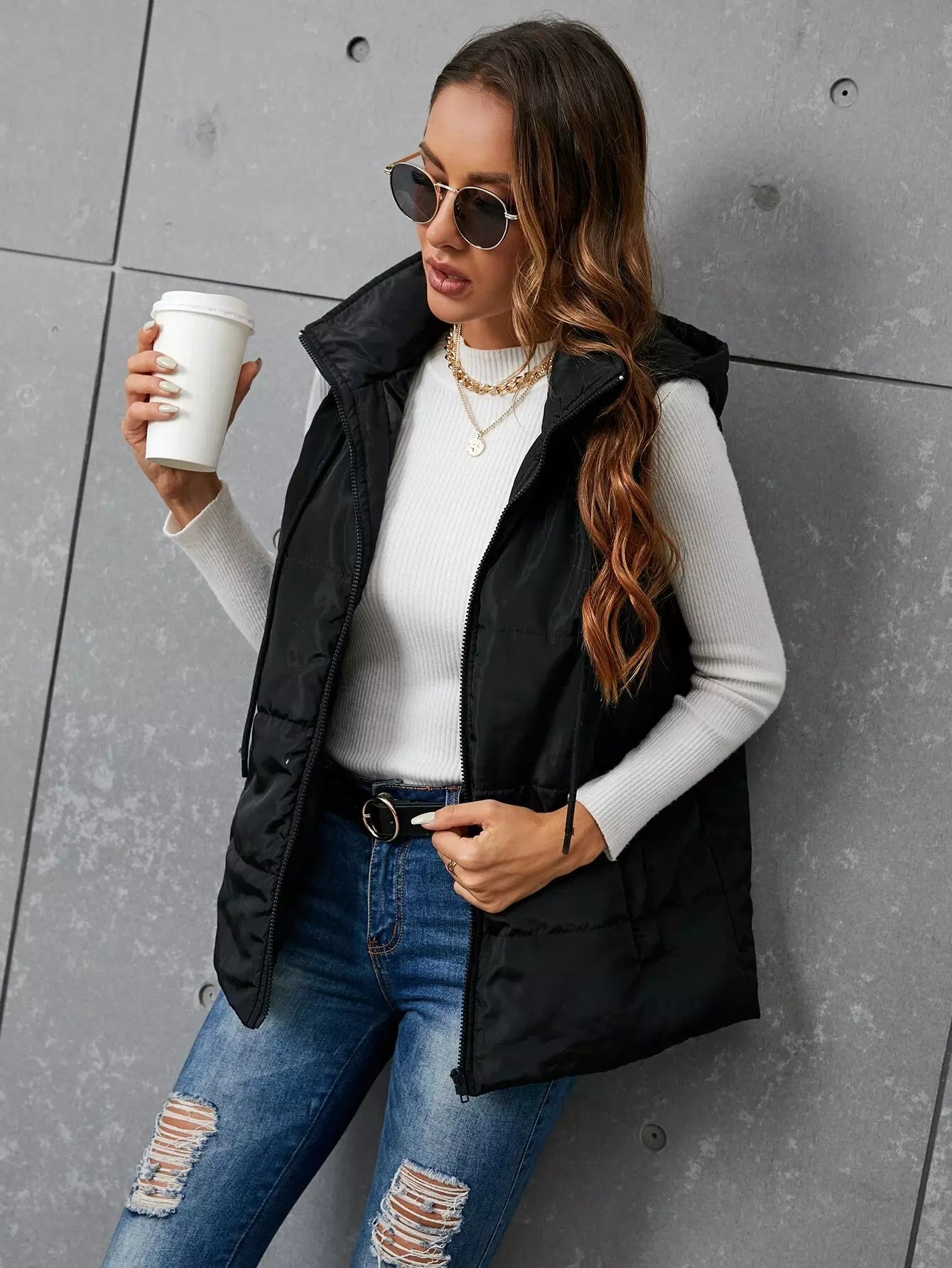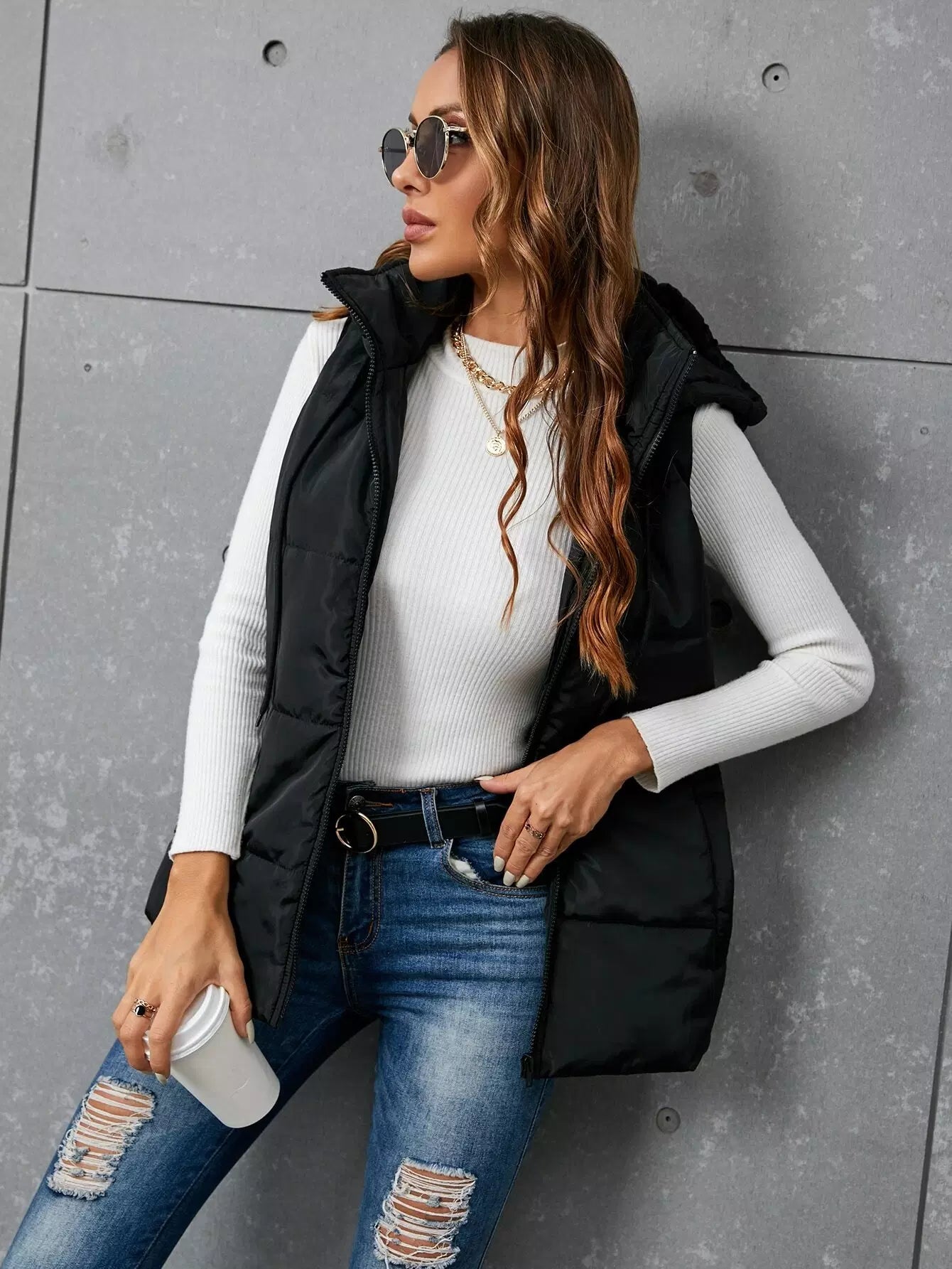 معطف منفوخة بجيوب مائلة بدون أكمام برباط بلا أكمام بقلنسوة