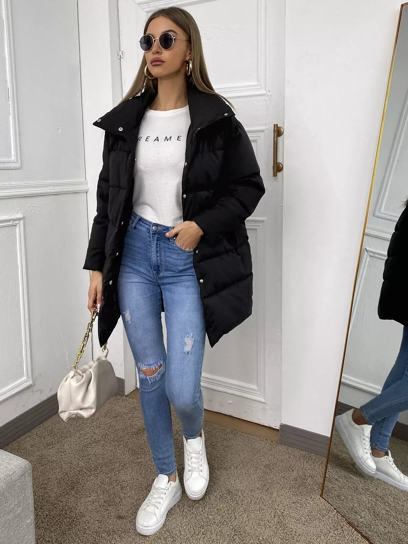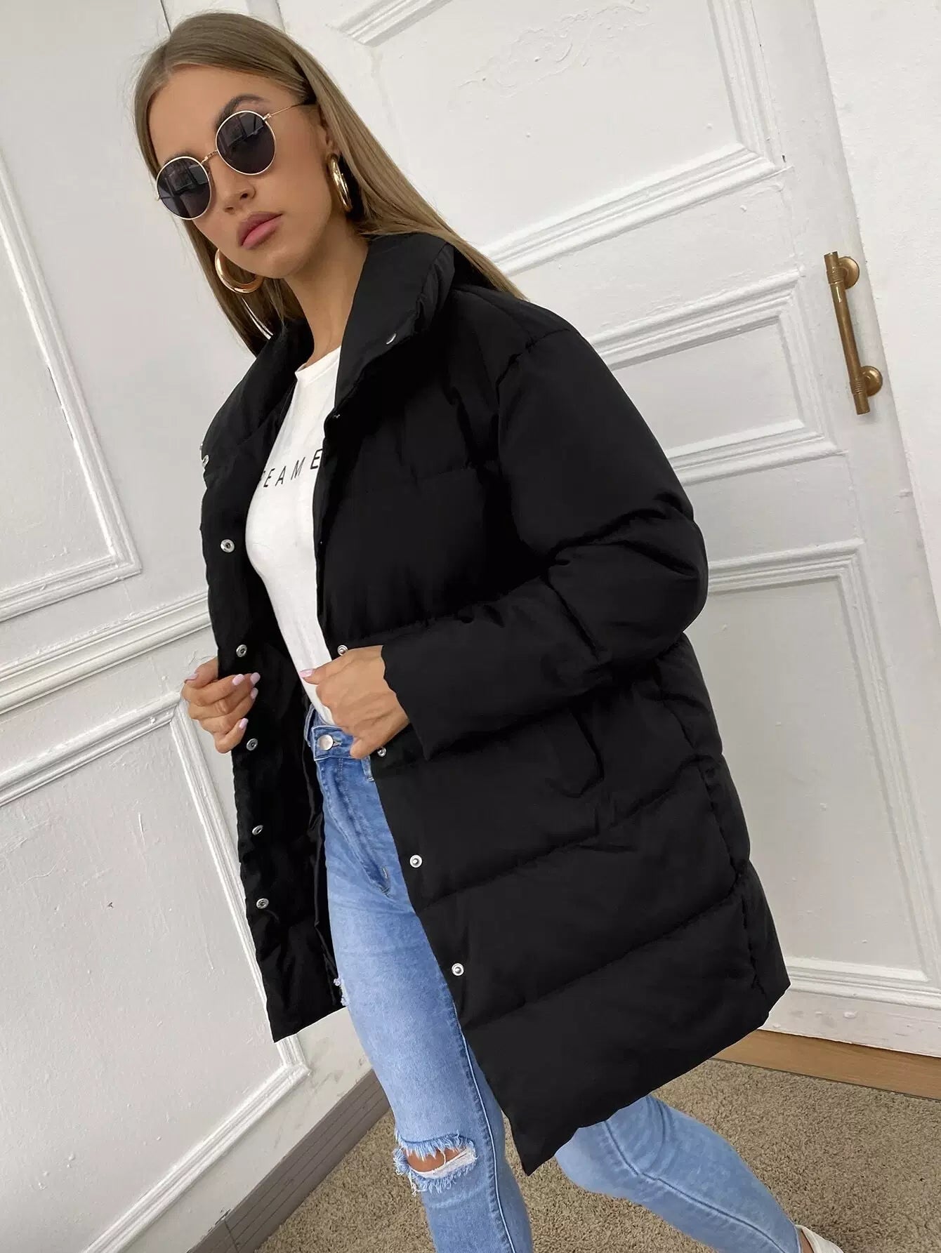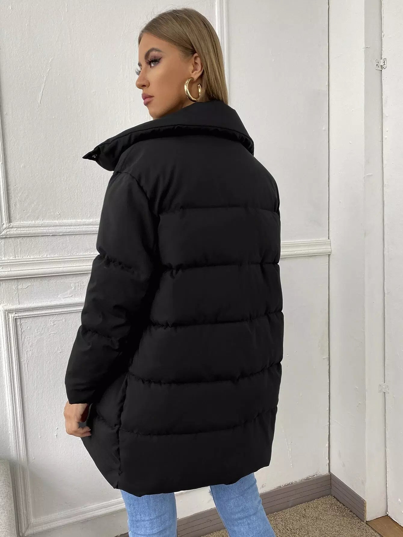 معطف منفوخة بأزرار سادة