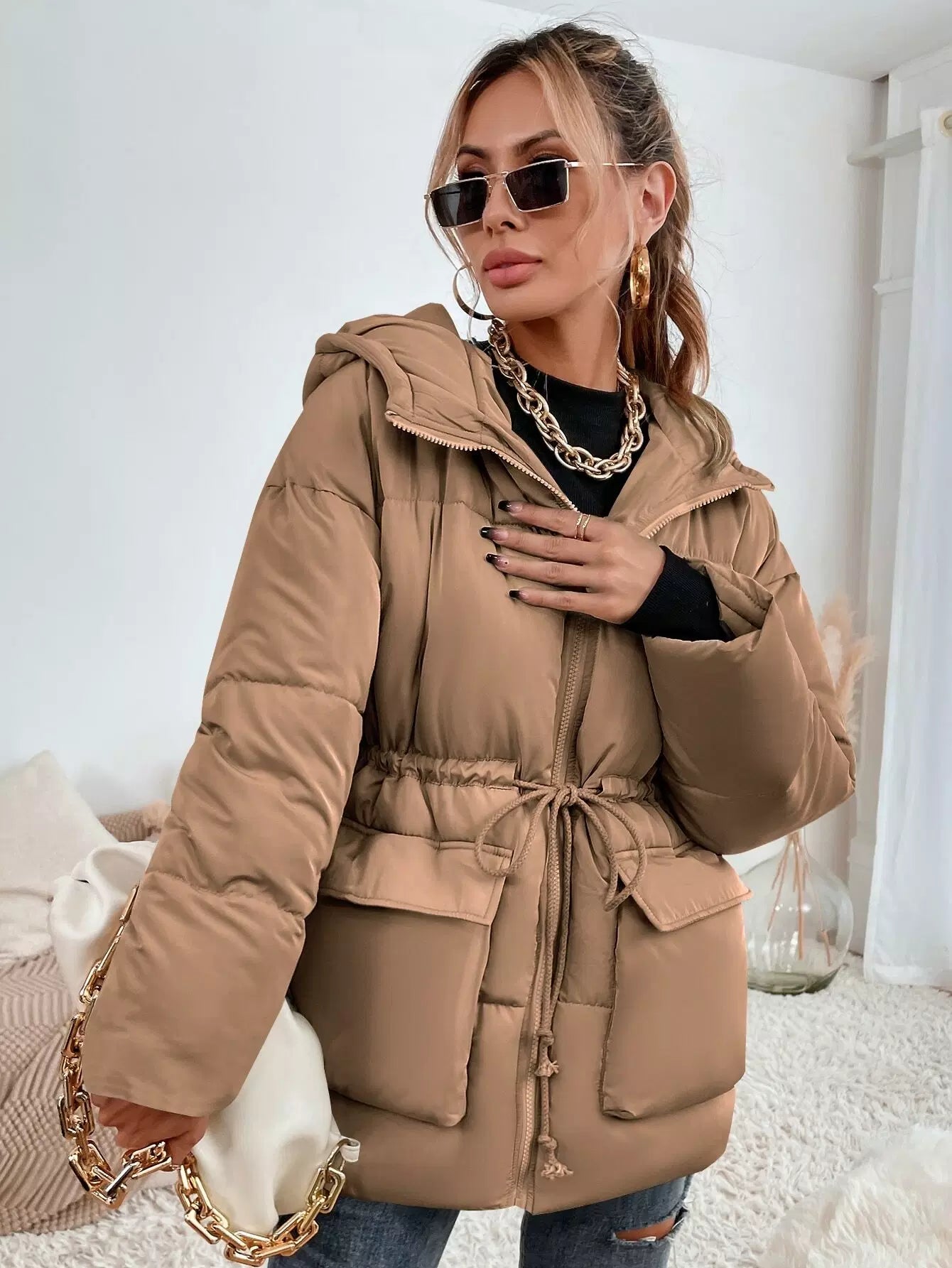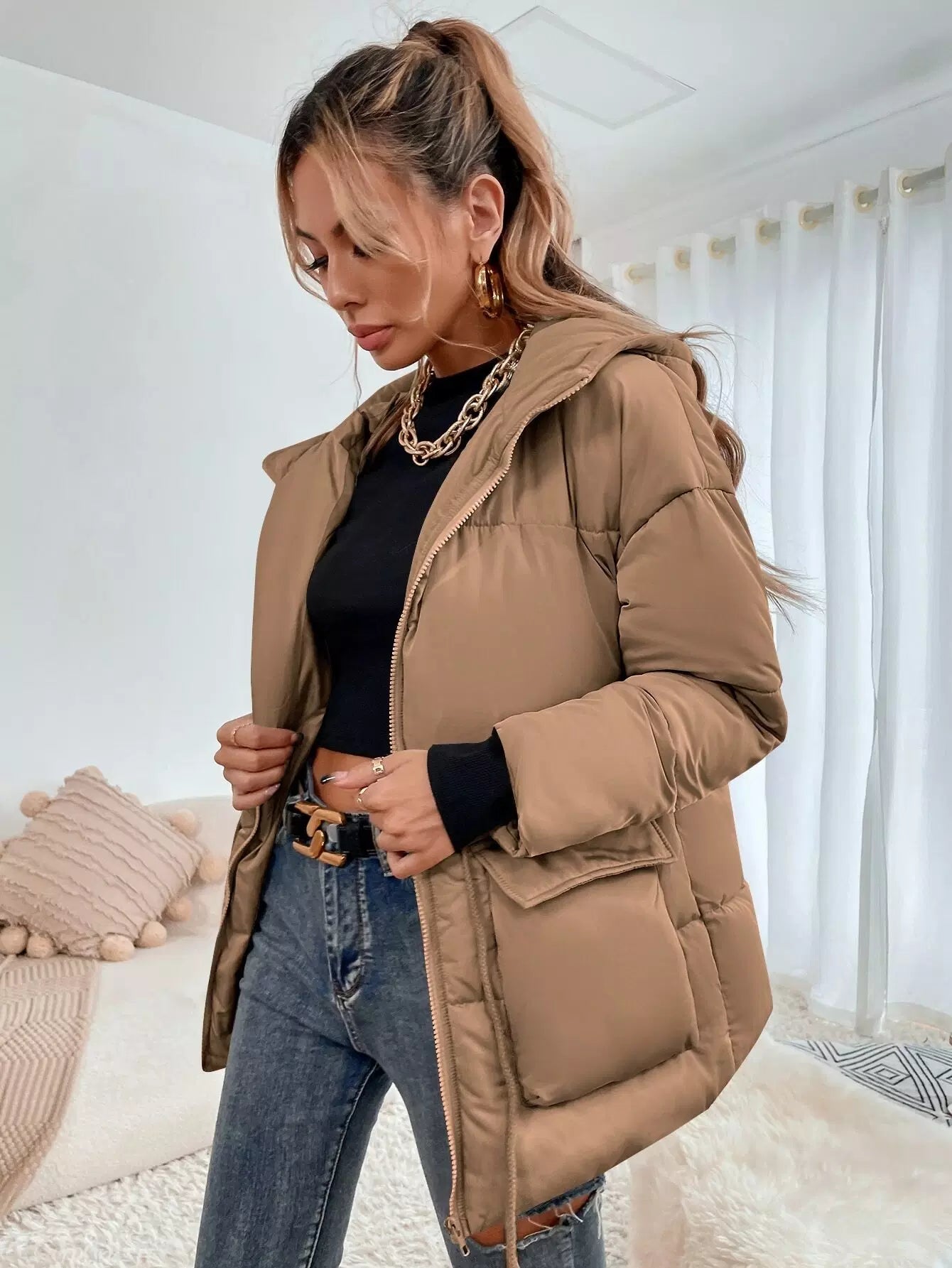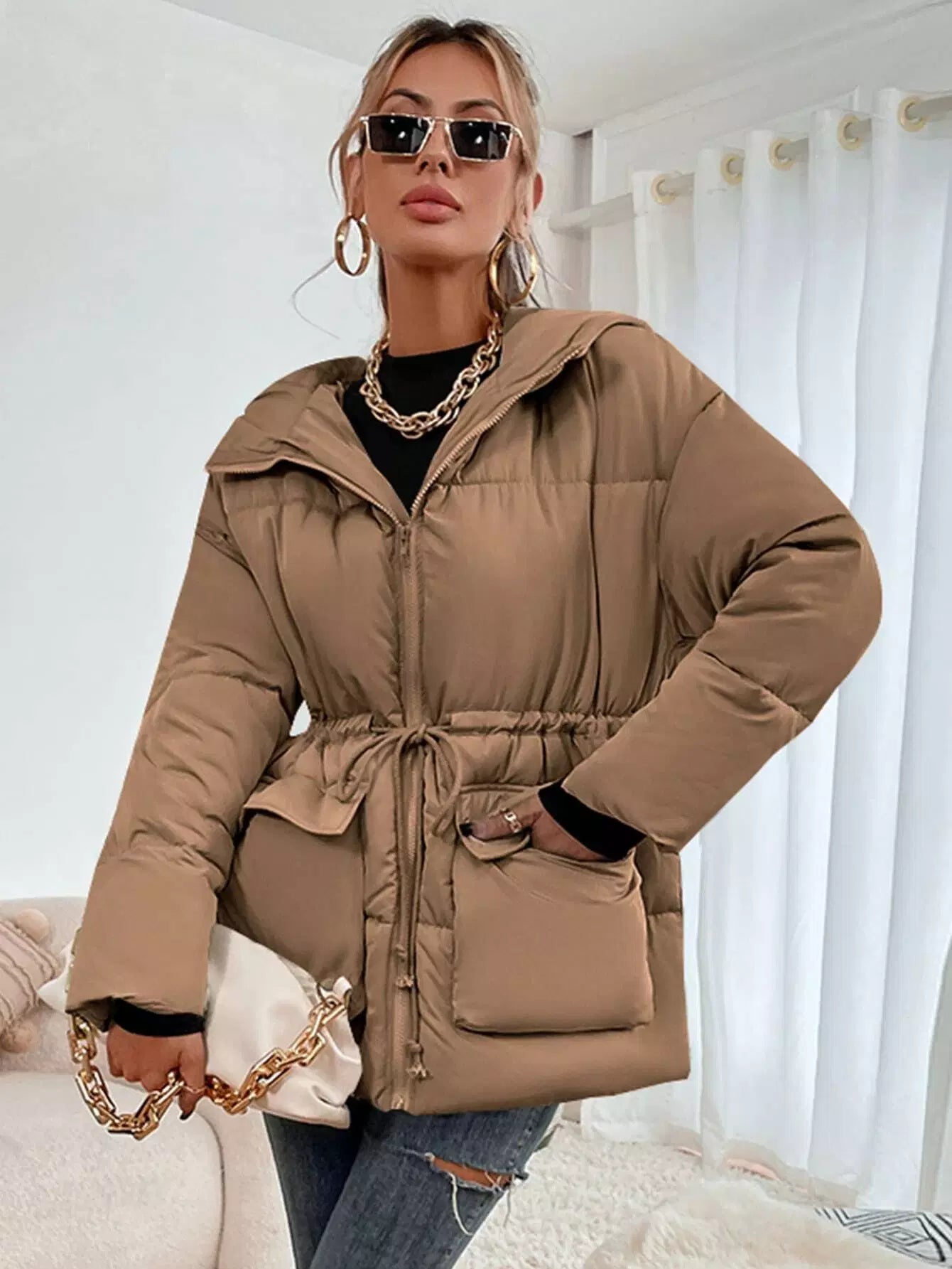 معطف سادة منفوخة منفوخة بسحّاب بسحاب