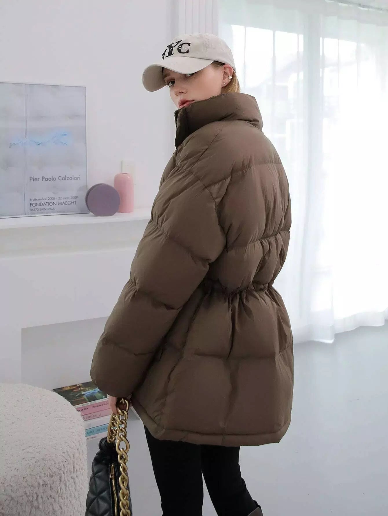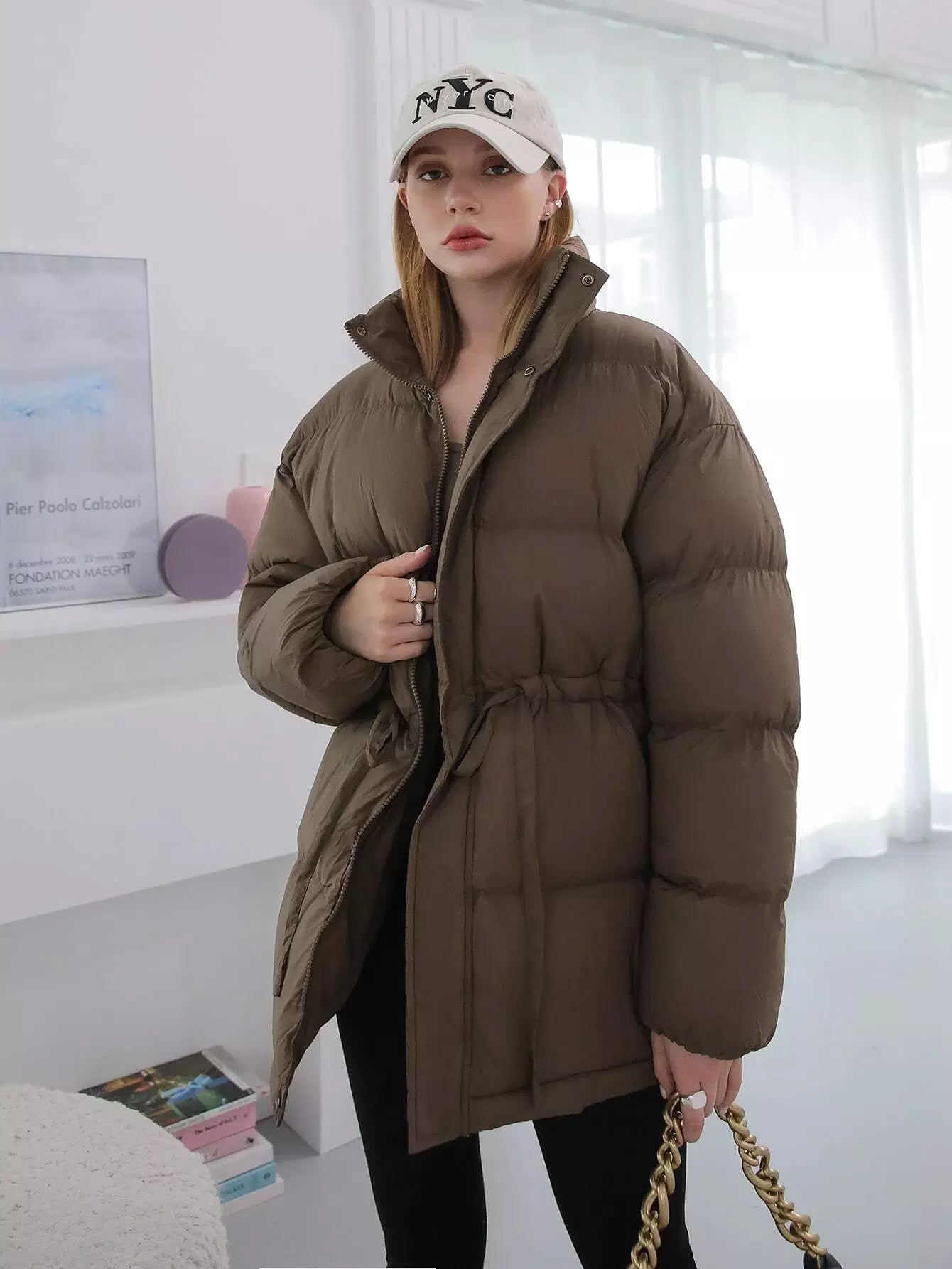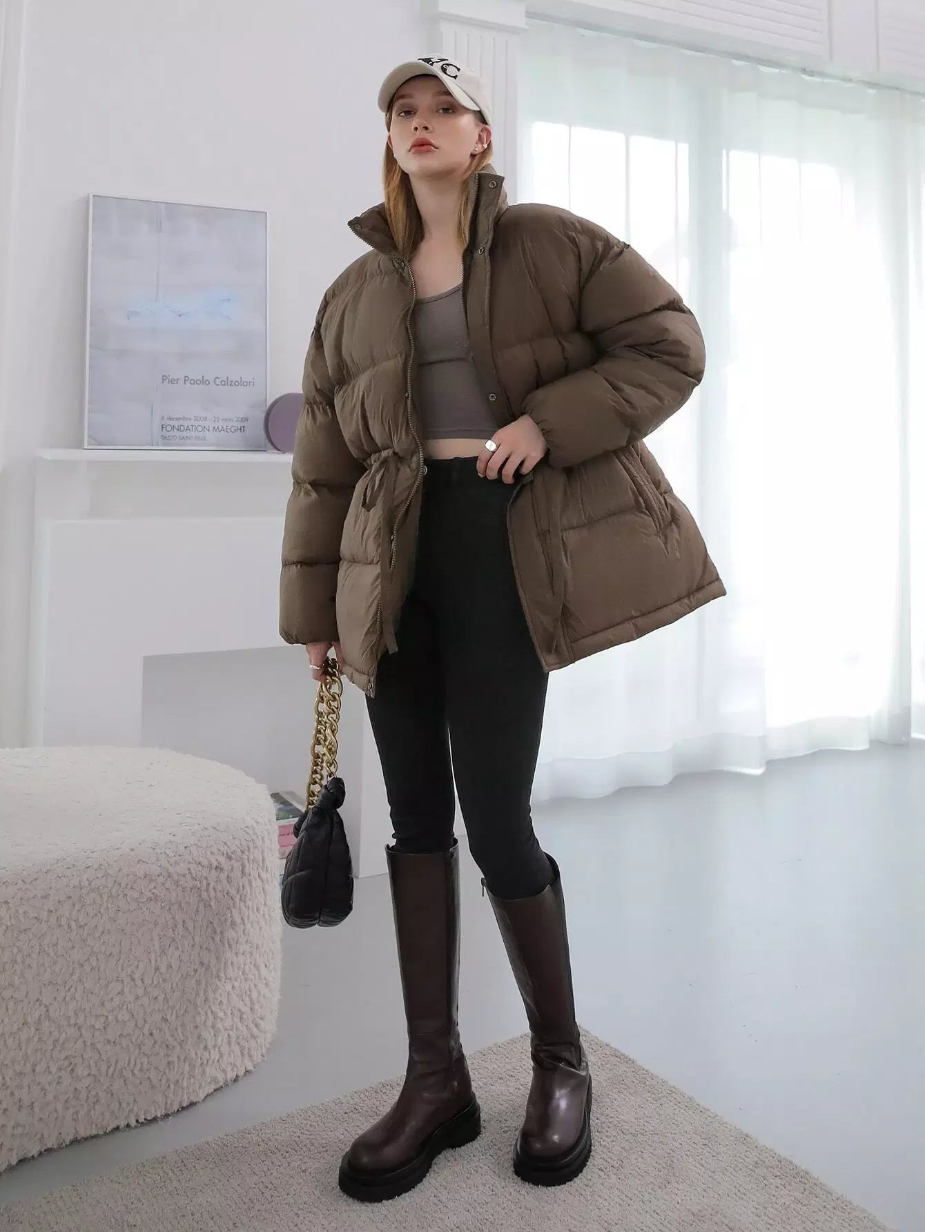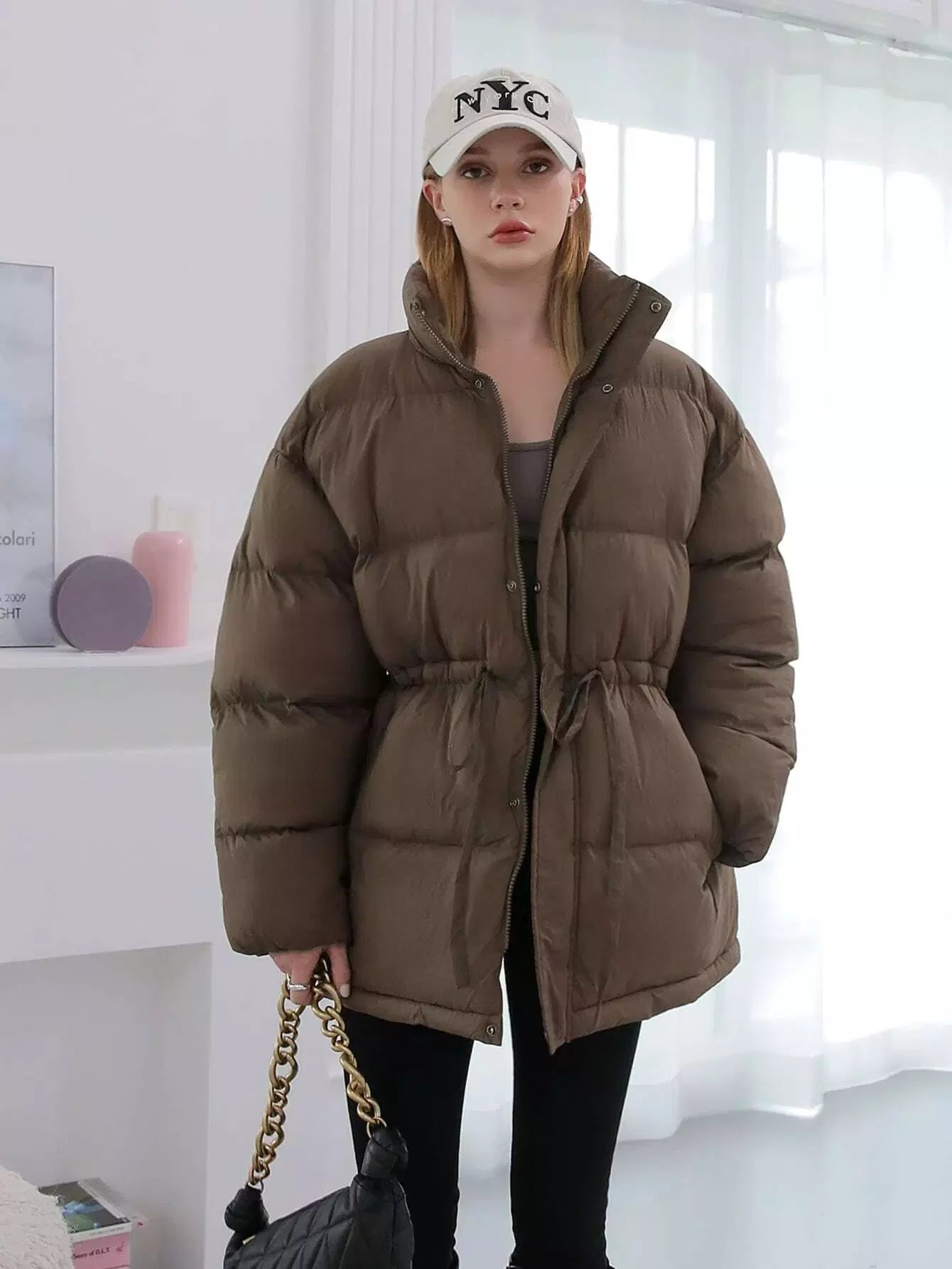 معطف سادة منفوخة منفوخة الخصر بسحّاب سادة