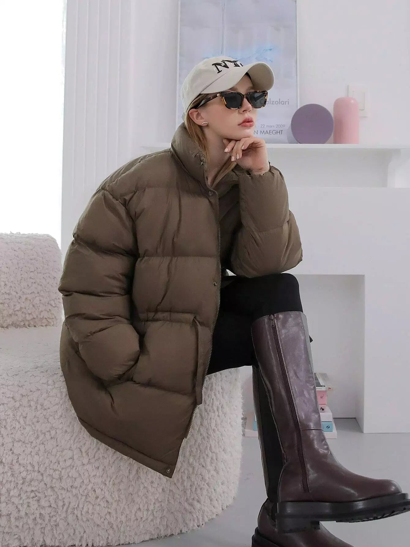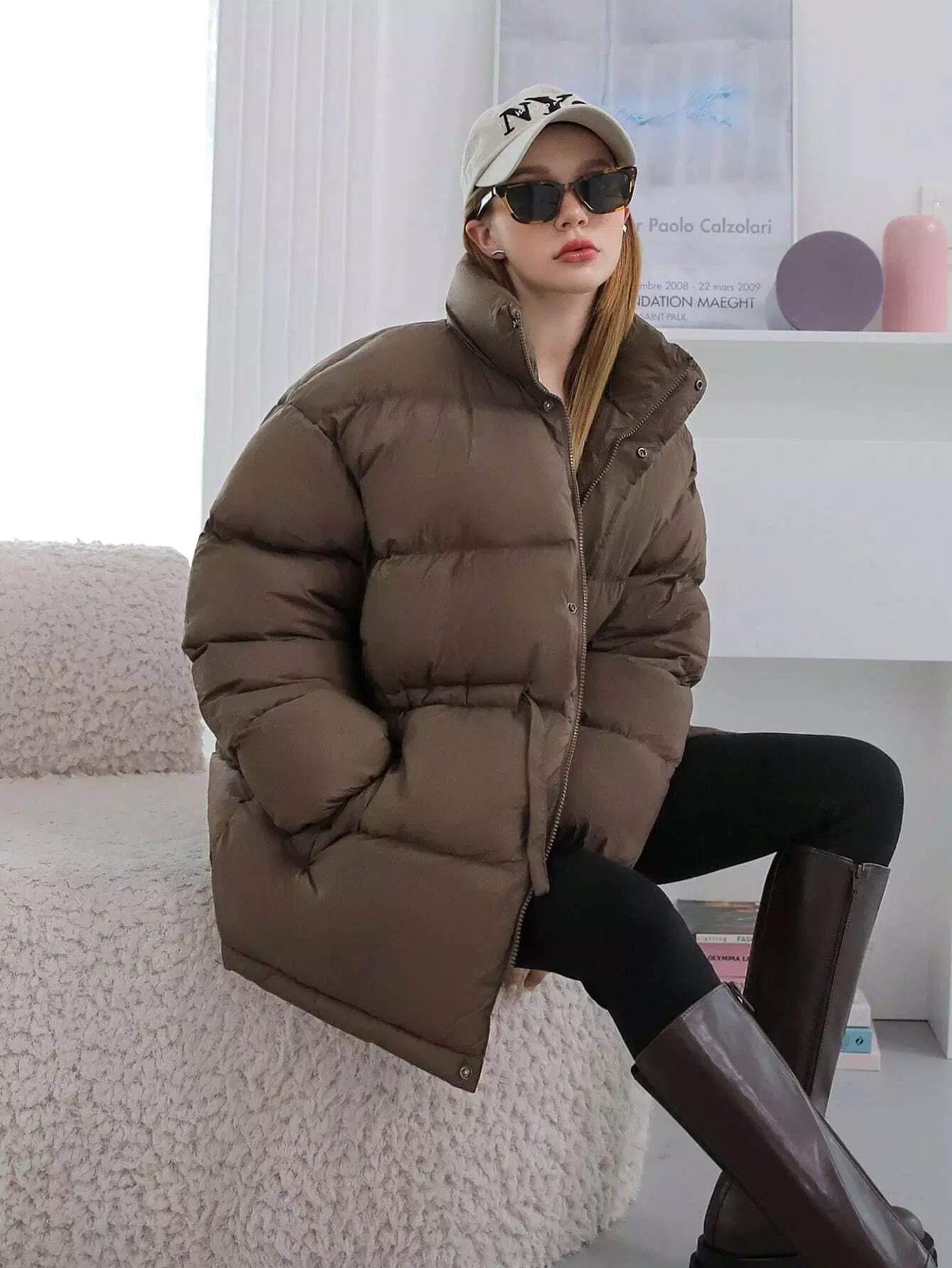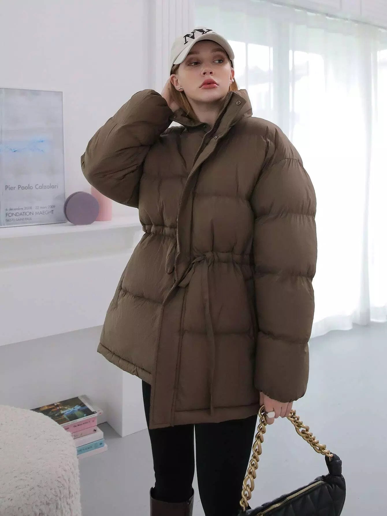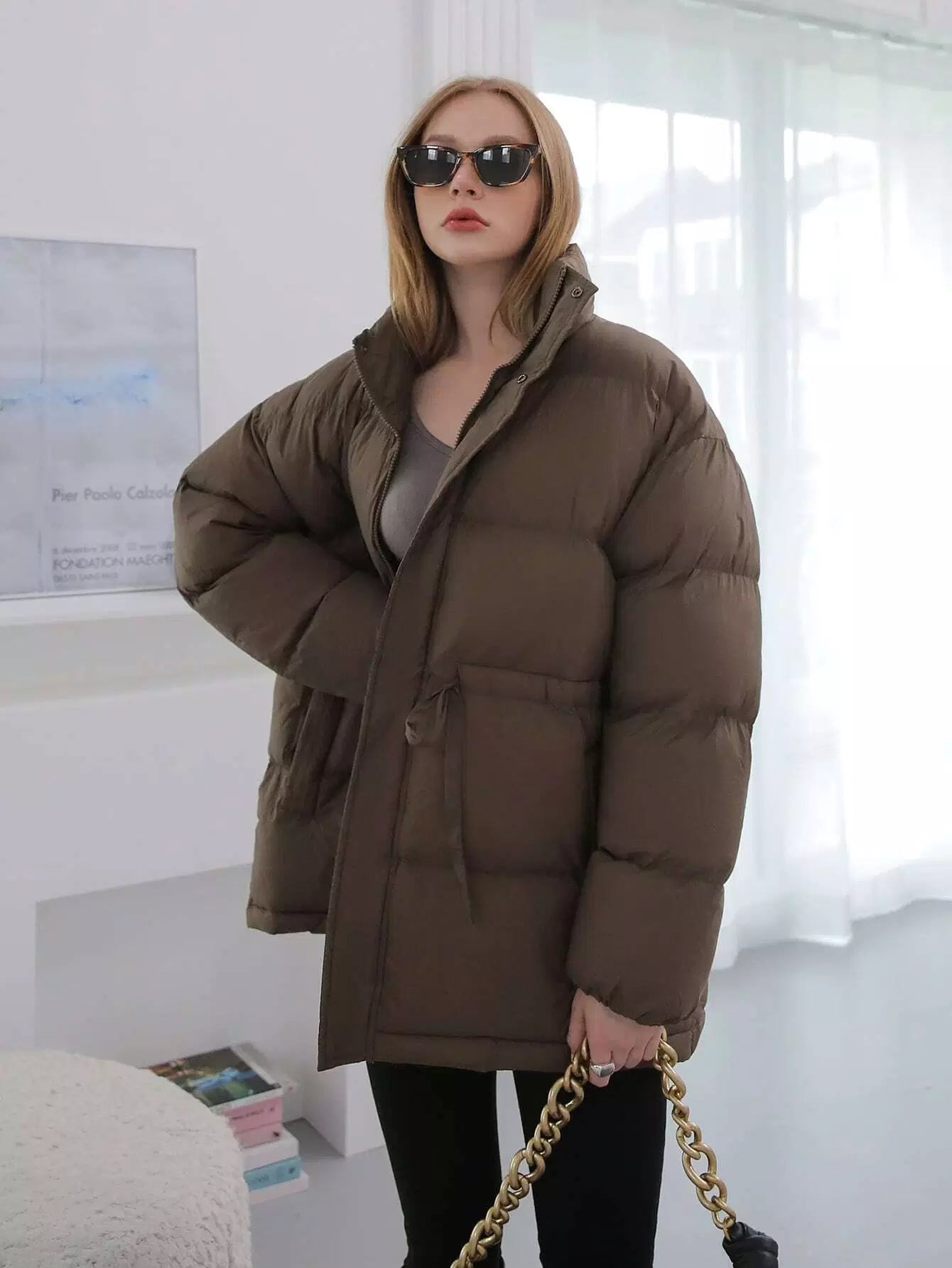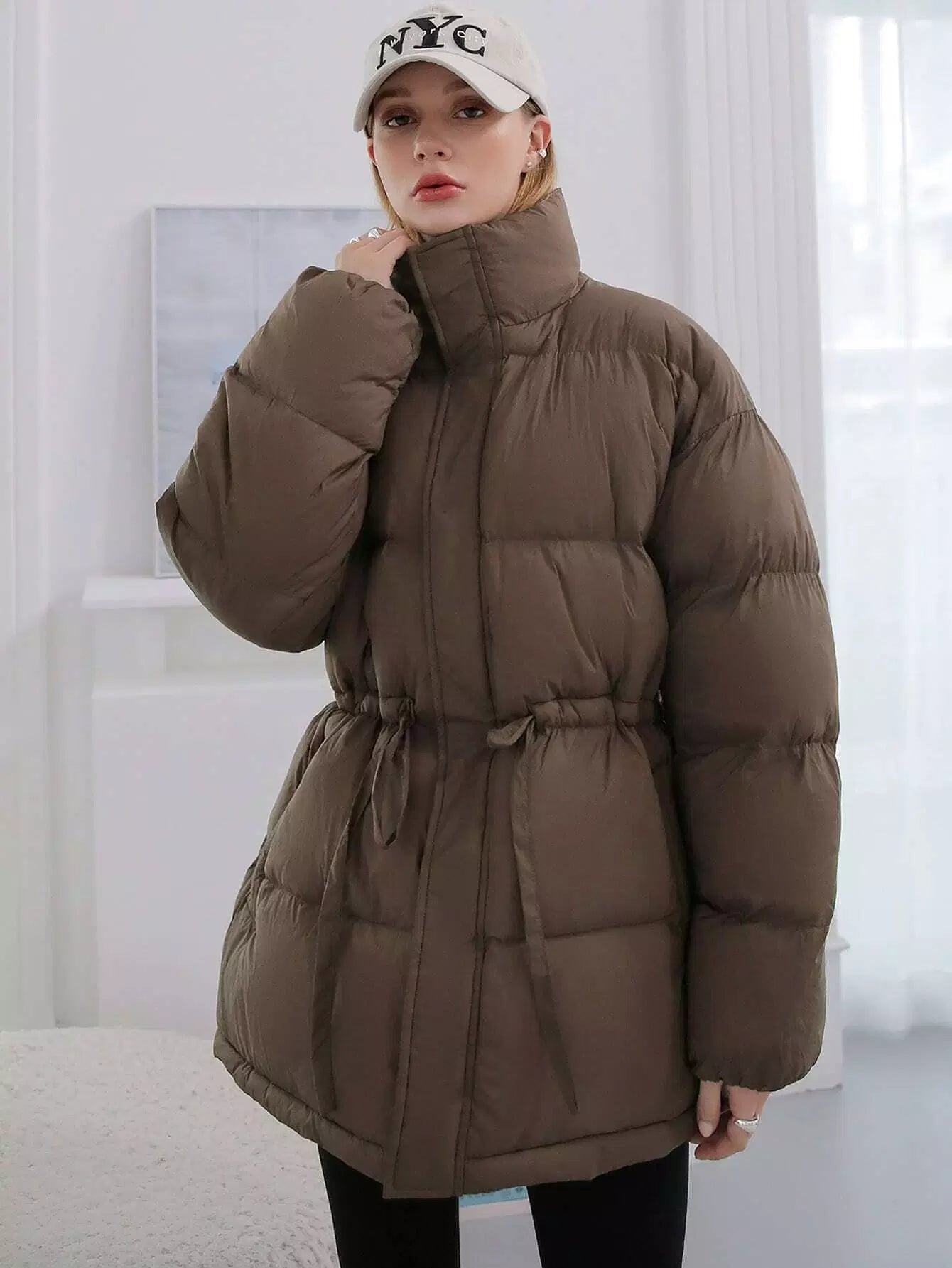معطف سادة منفوخة منفوخة الخصر بسحّاب سادة