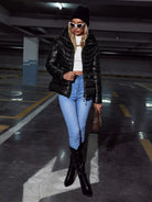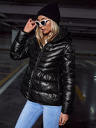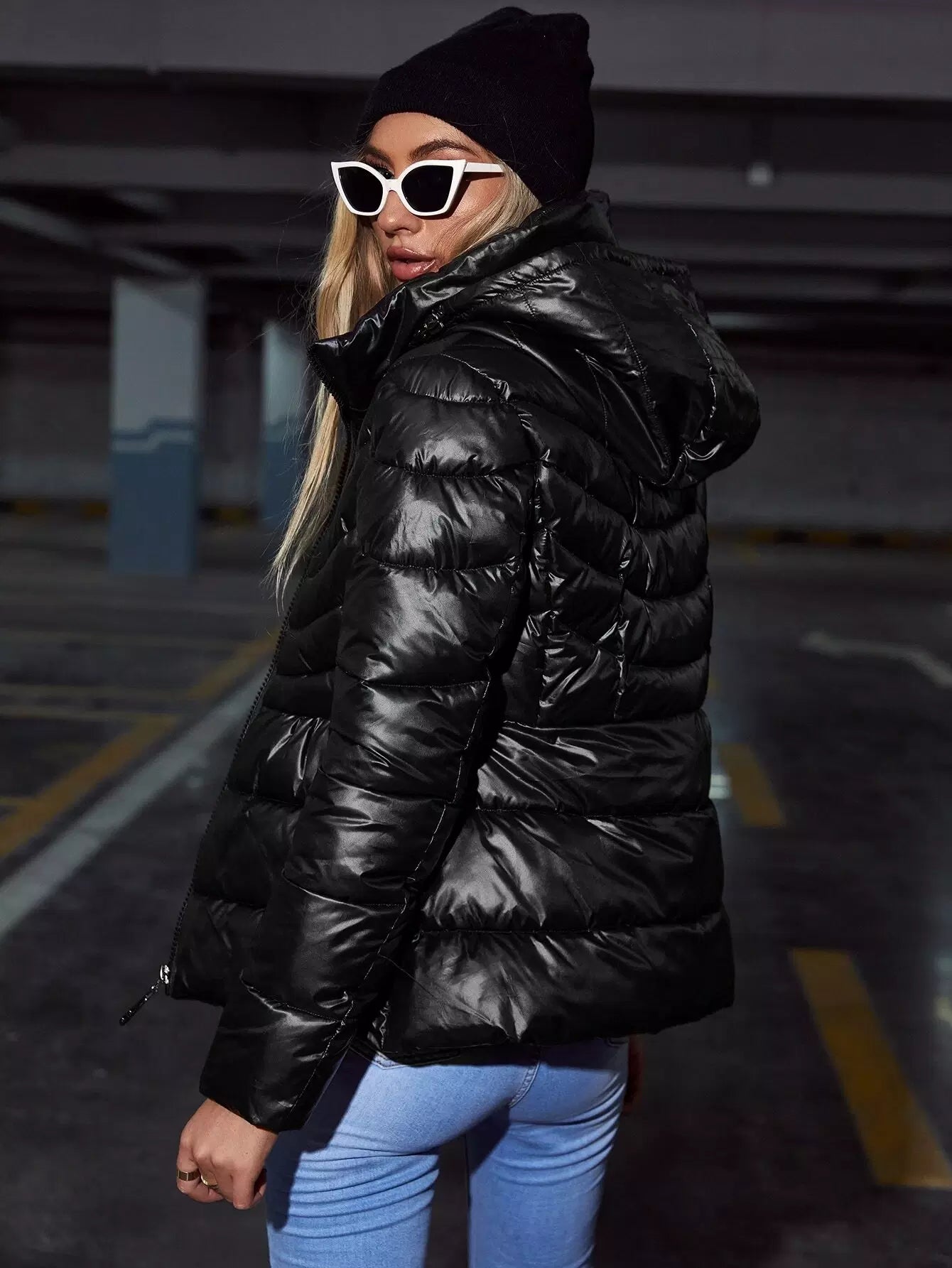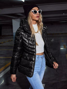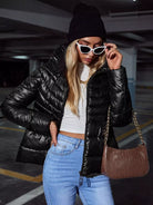 معطف سادة منفوخة بقلنسوة بسحاب سادة