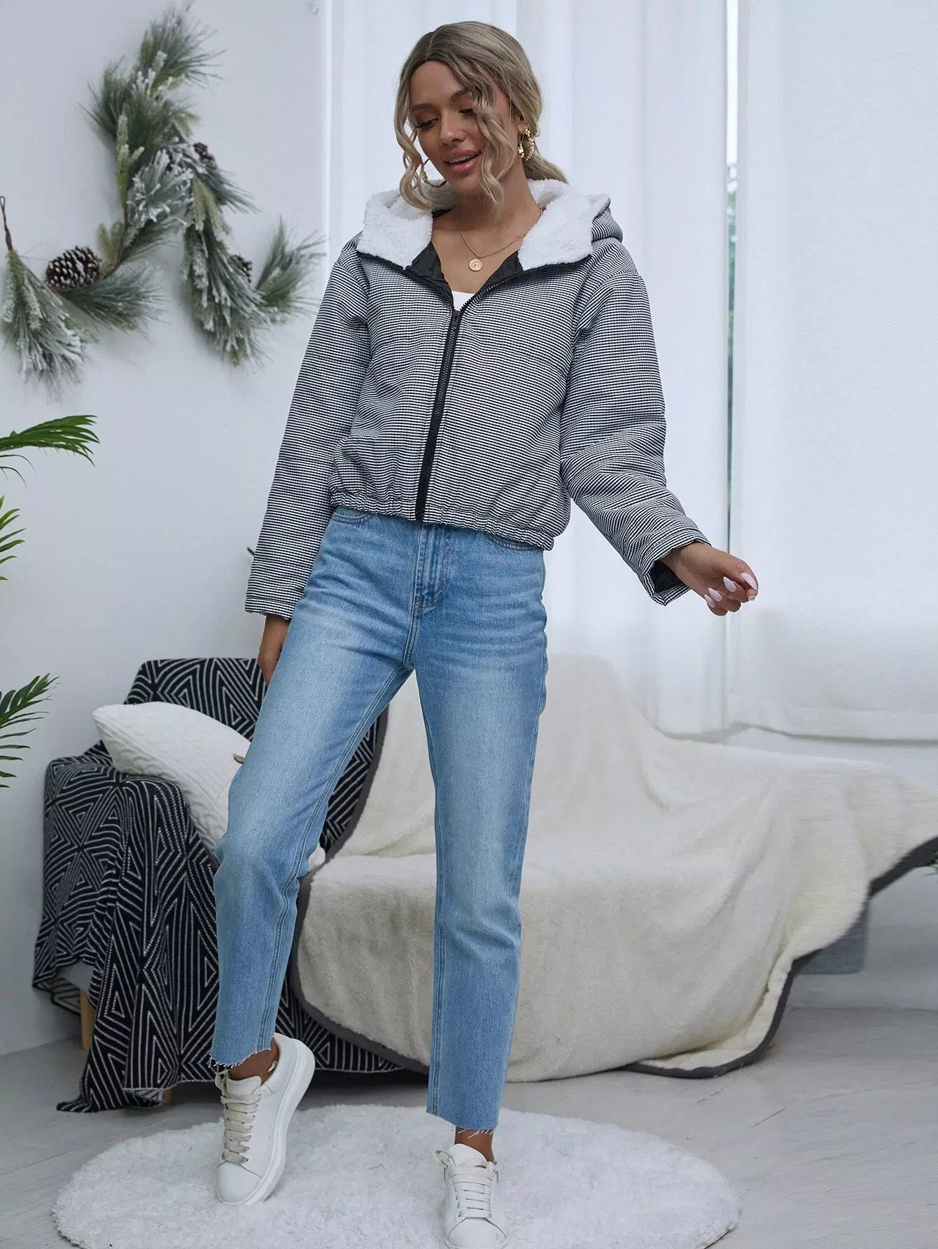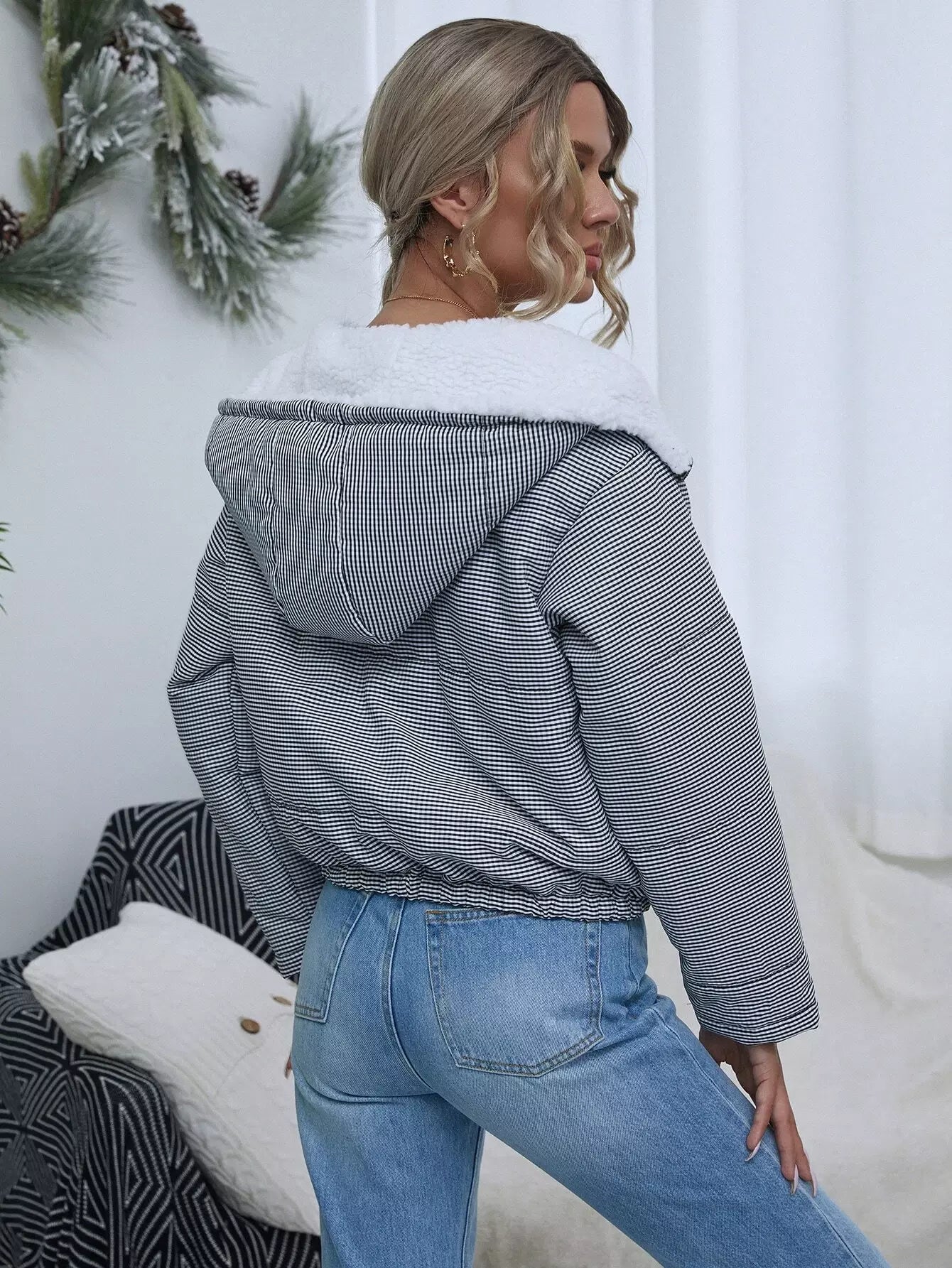 جاكيت منفوخة من القماش القطني بسحاب بغطاء من القماش القطني