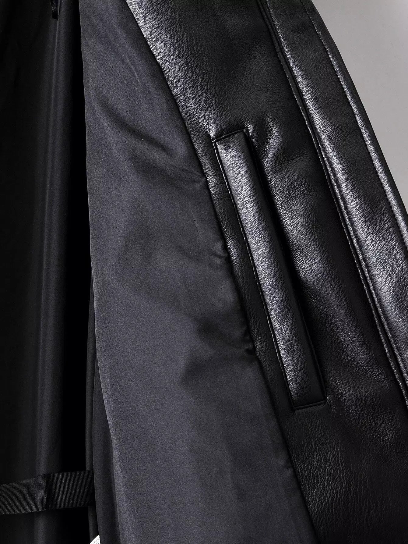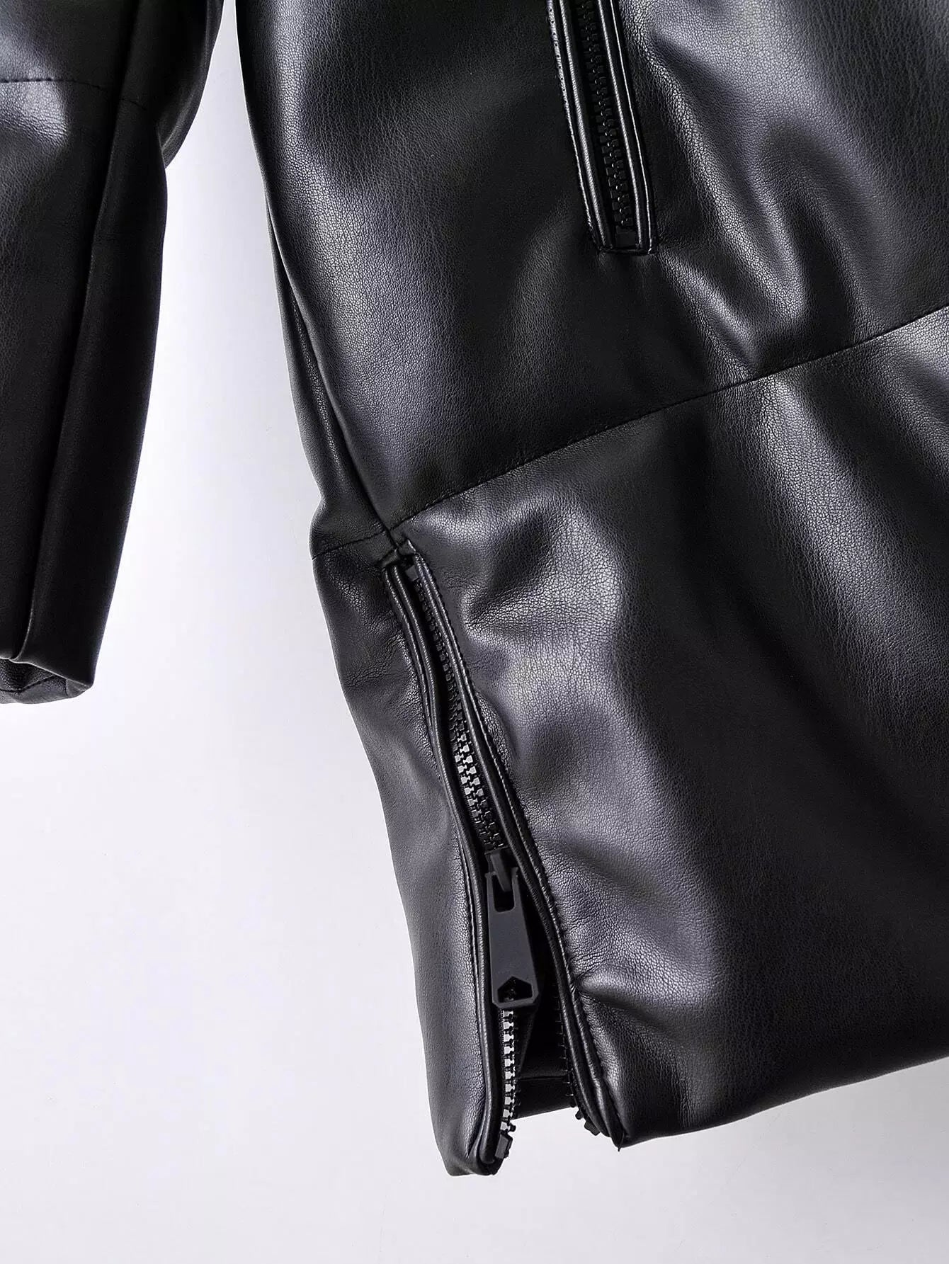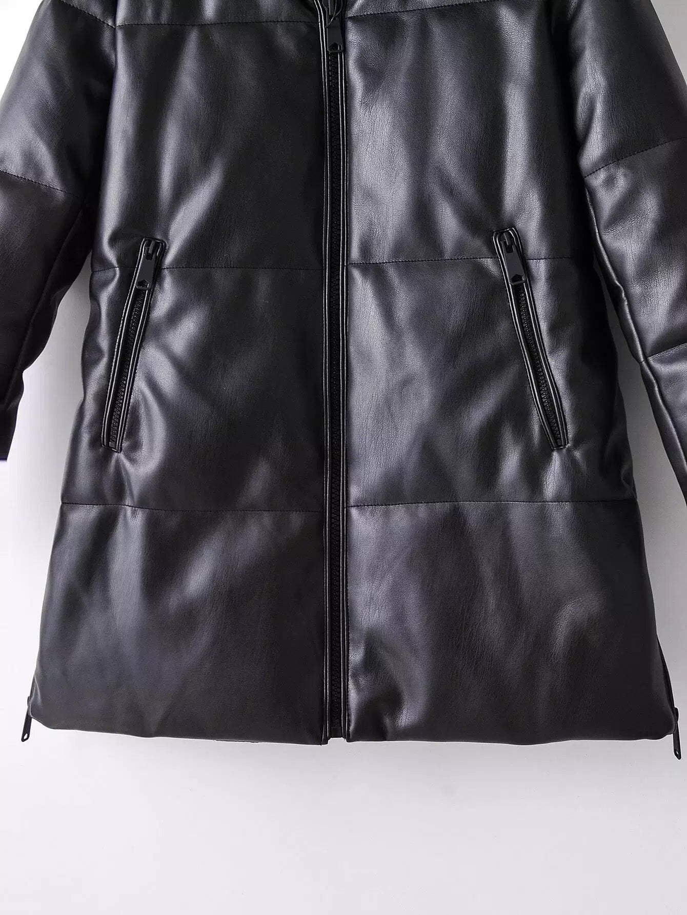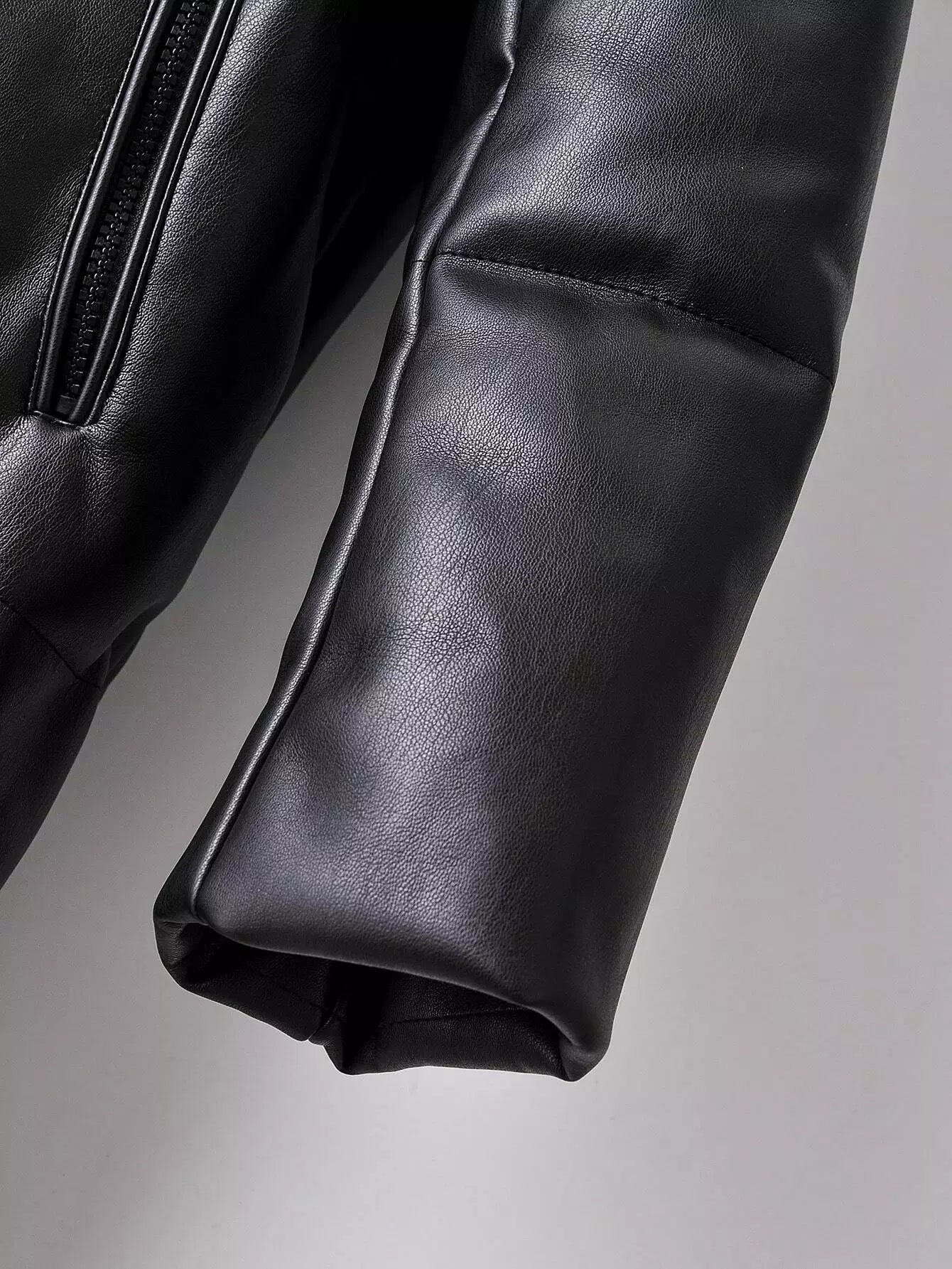معطف مبطن من جلد البولي يوريثان بغطاء جلدي بسحّاب