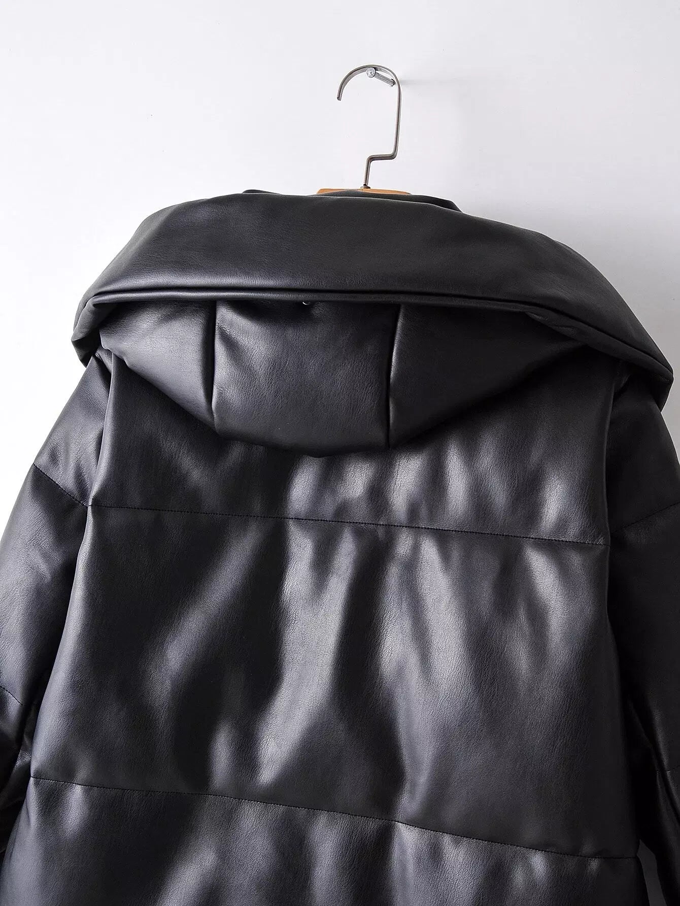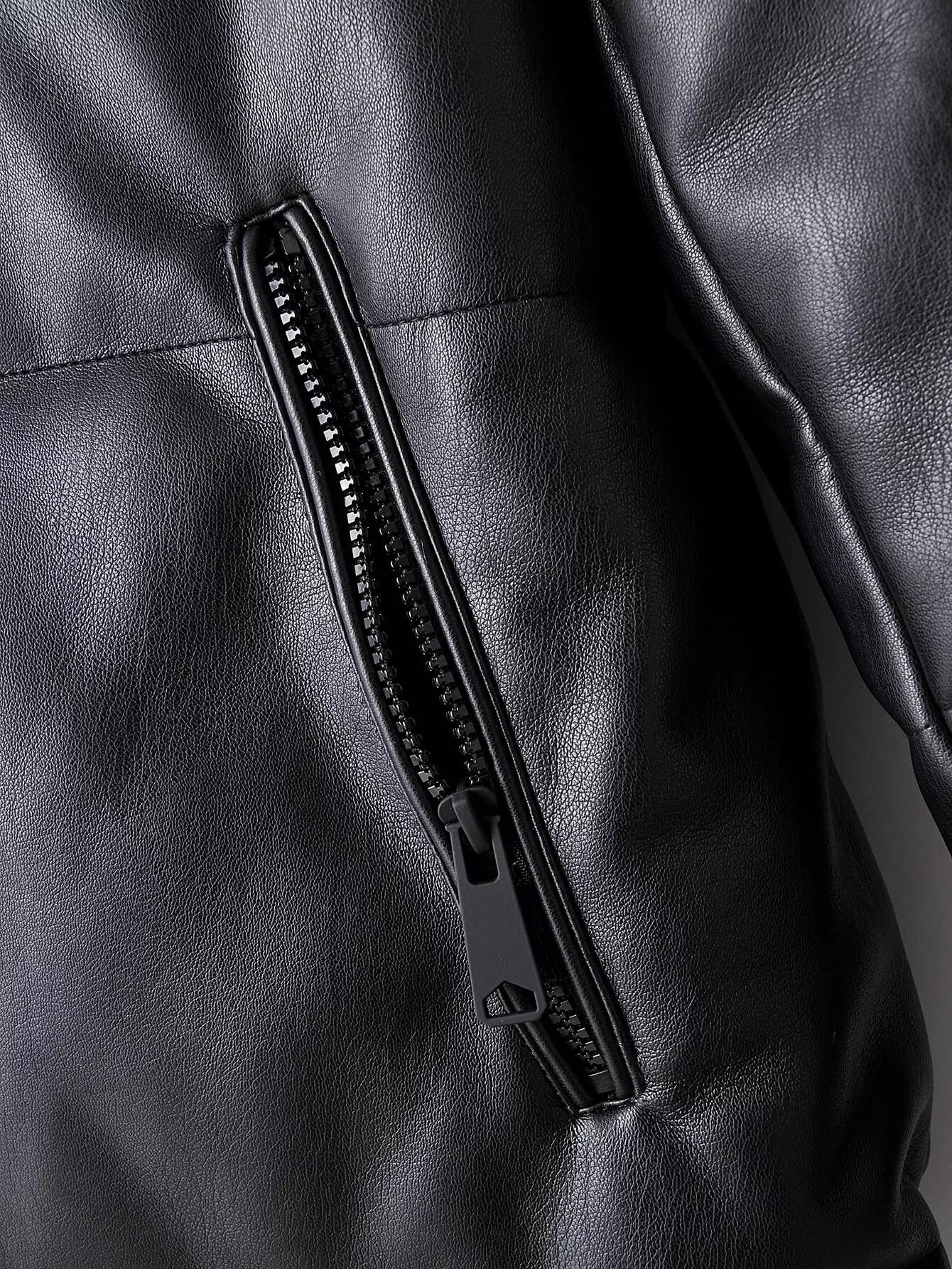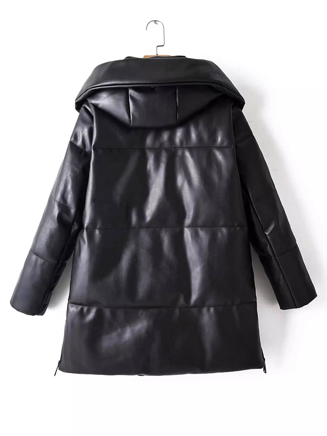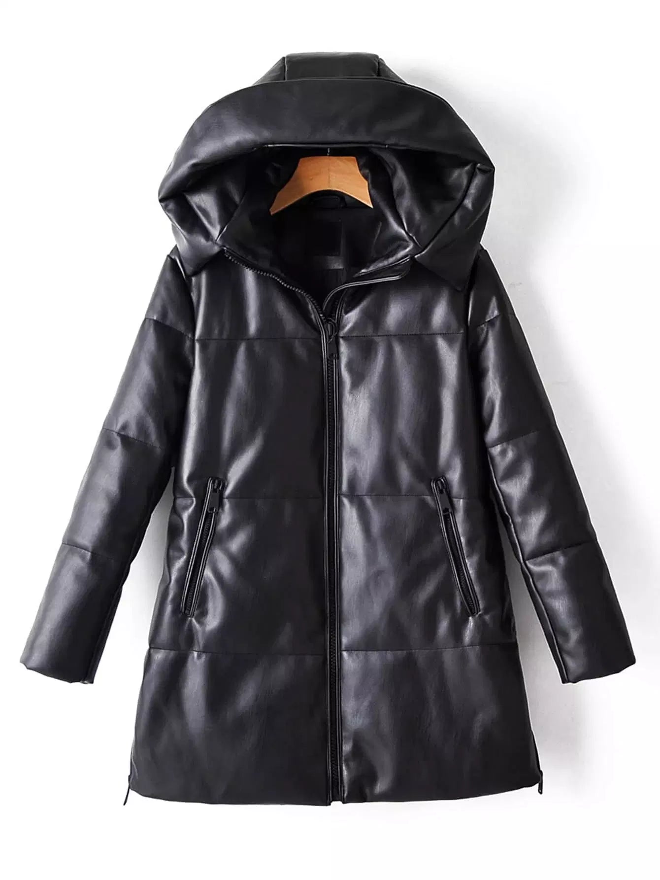 معطف مبطن من جلد البولي يوريثان بغطاء جلدي بسحّاب
