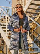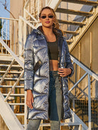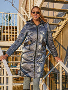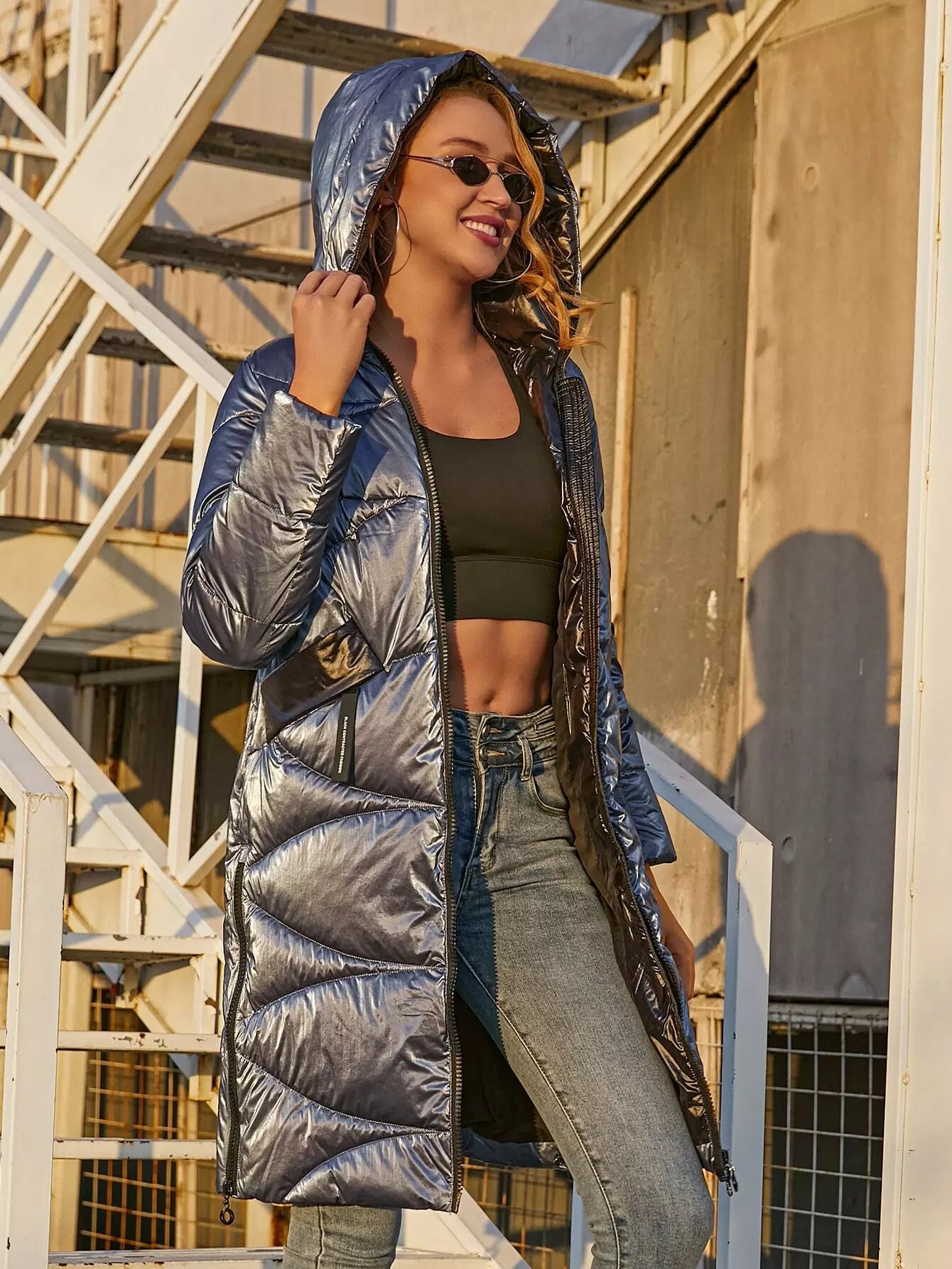 معطف بقبعة منفوخة بسحاب بقلنسوة