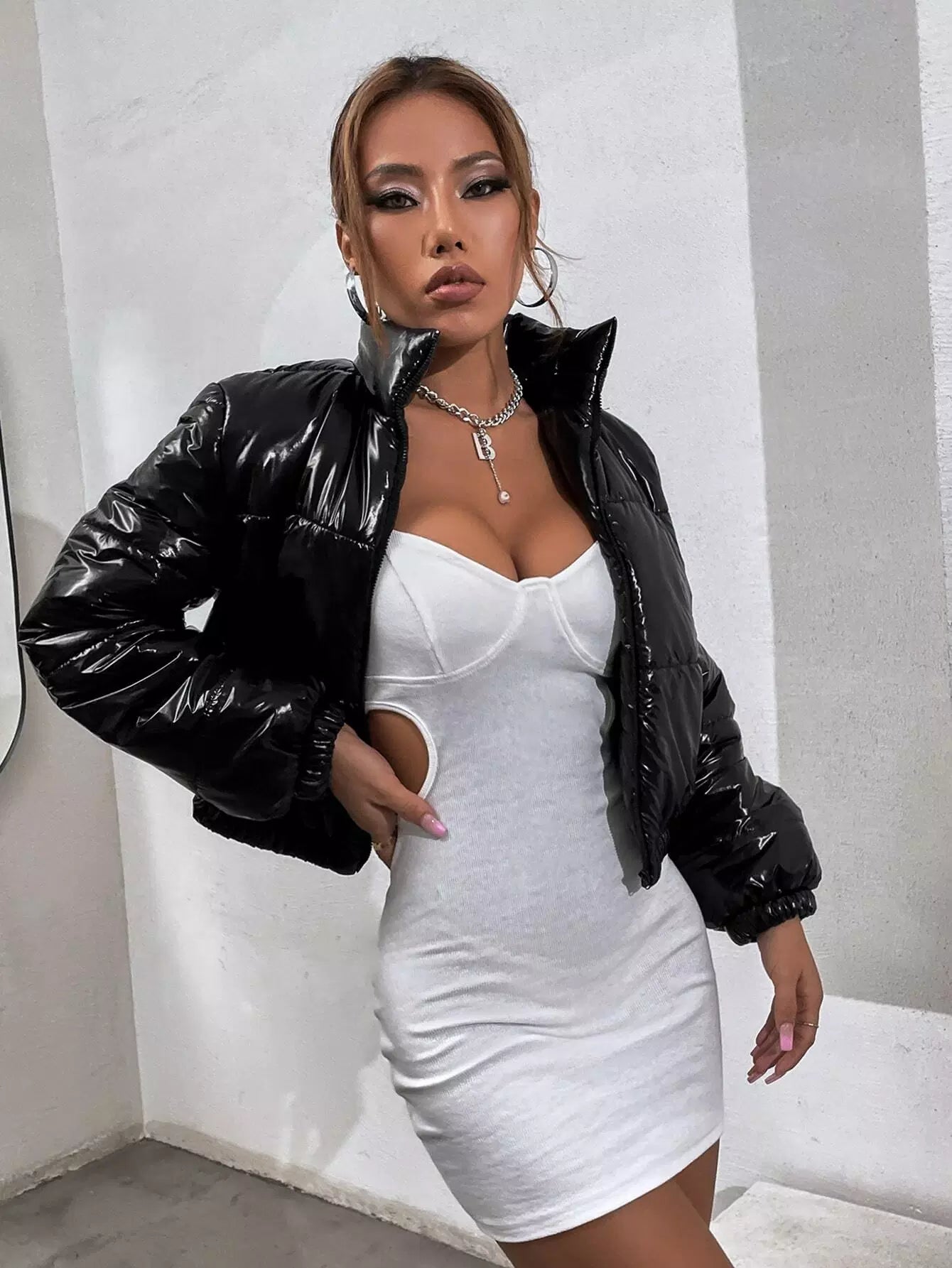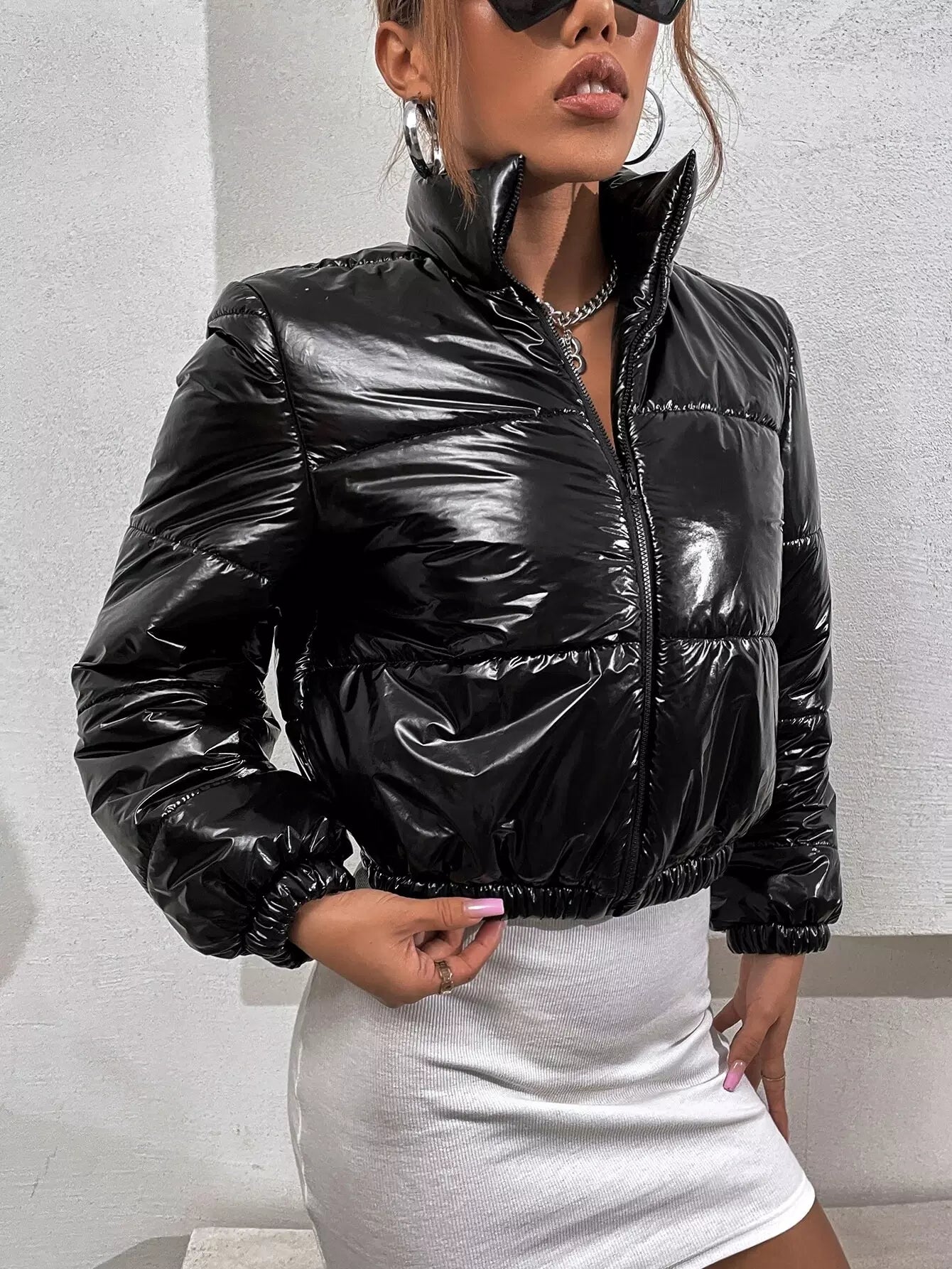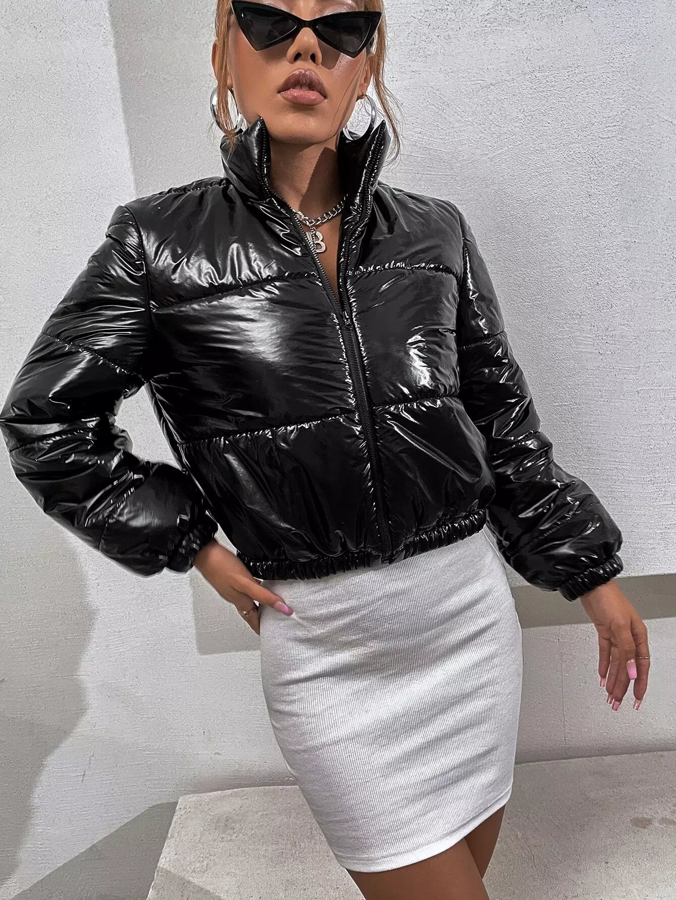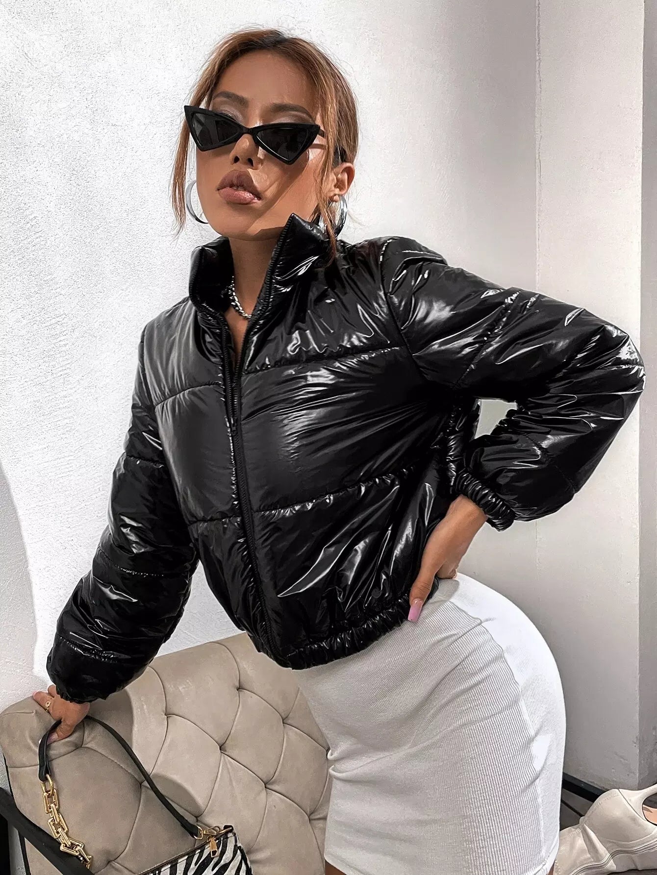 معطف من جلد البولي يوريثان المنفوخ بسحّاب