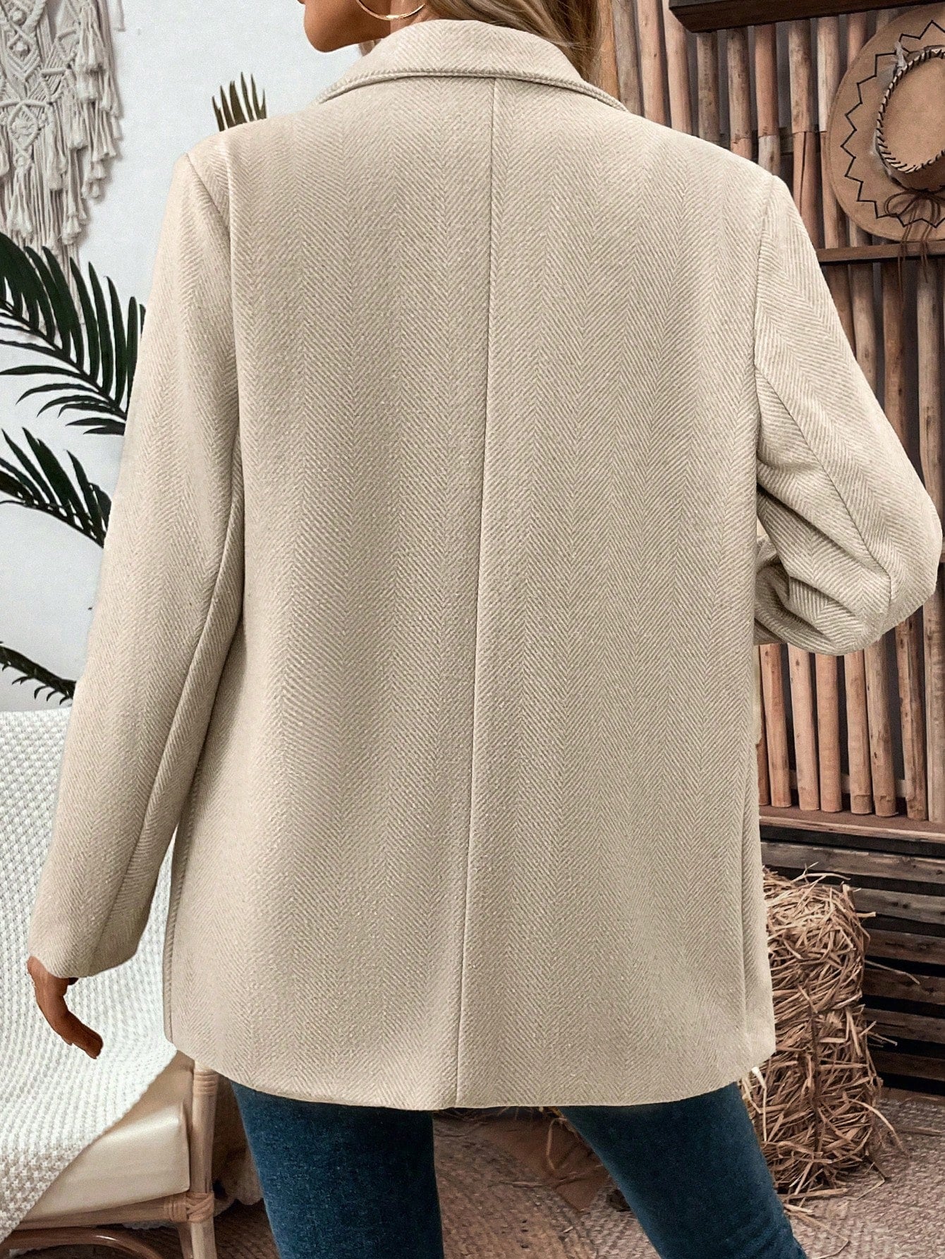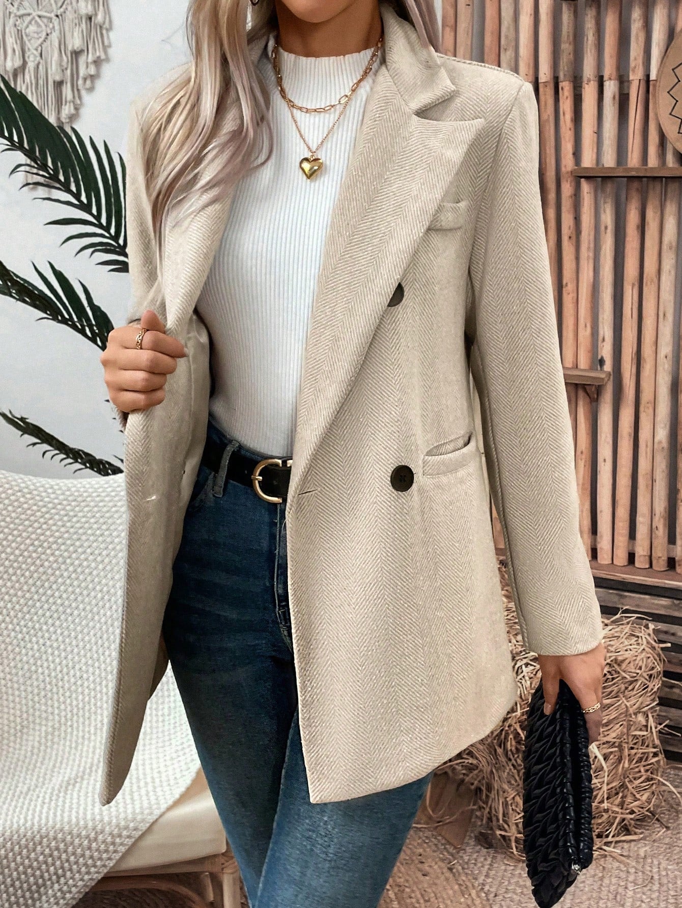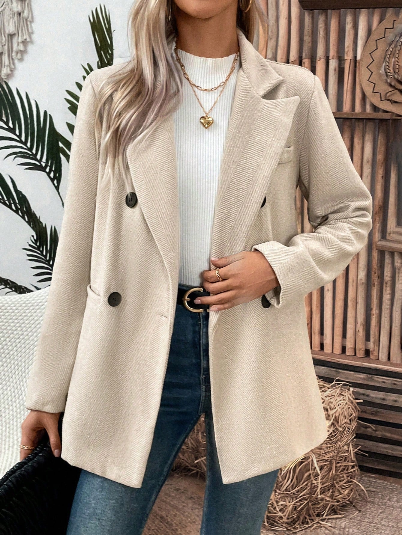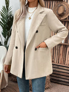 جاكيت بدلة نسائي من كلاسي، بياقة متعرجة قابلة للطي، وأزرار مزدوجة، مناسب لفصل الخريف.