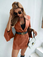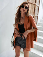 سترة بأكمام عباءة وطية صدر السترة بدون حزام