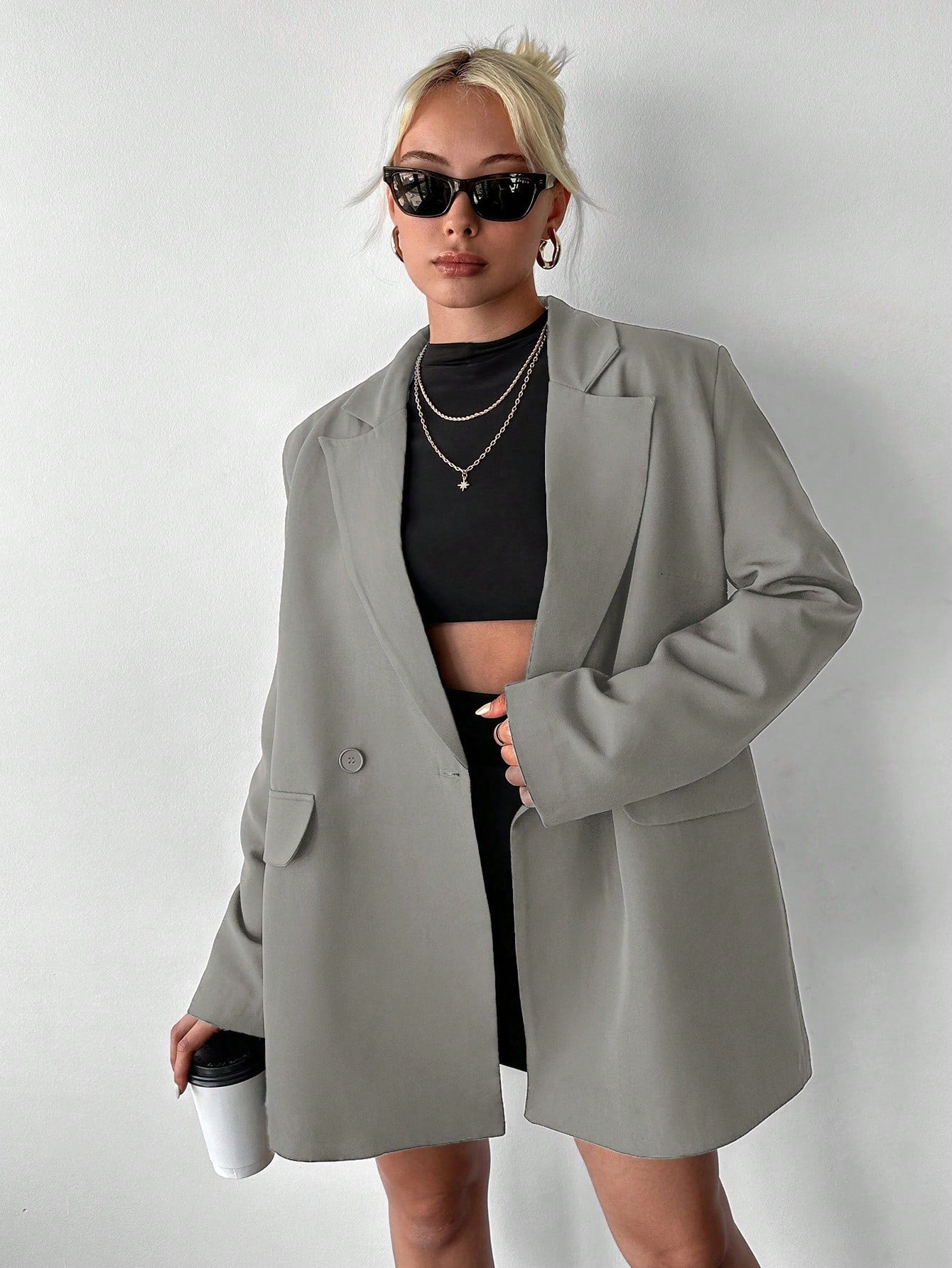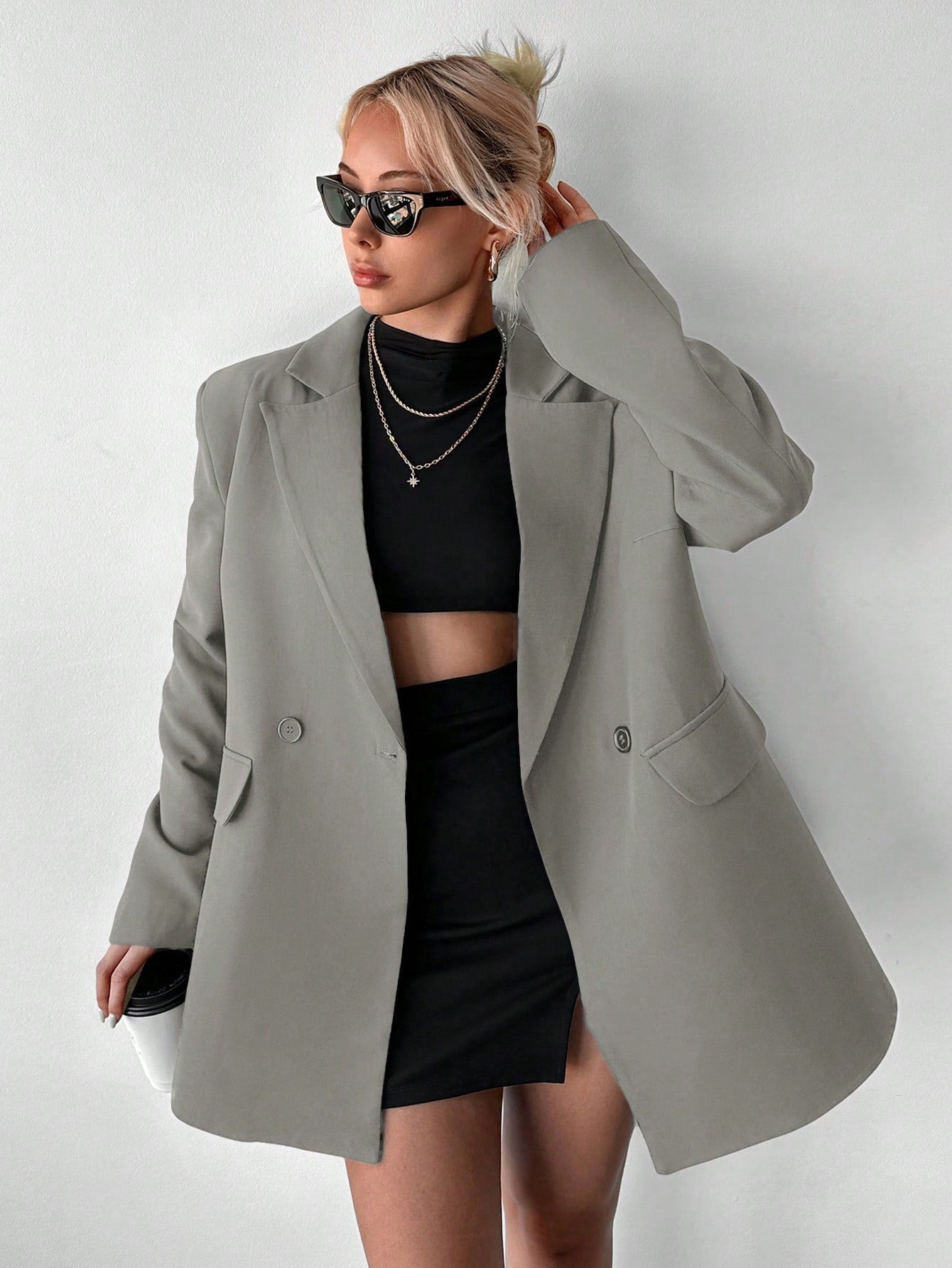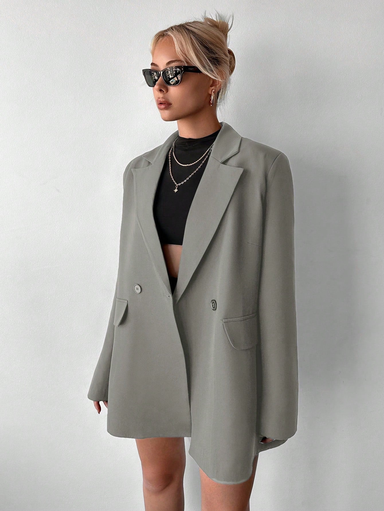 بليزر EURMUSE ذو تفاصيل طية صدرية قلابة وزرين