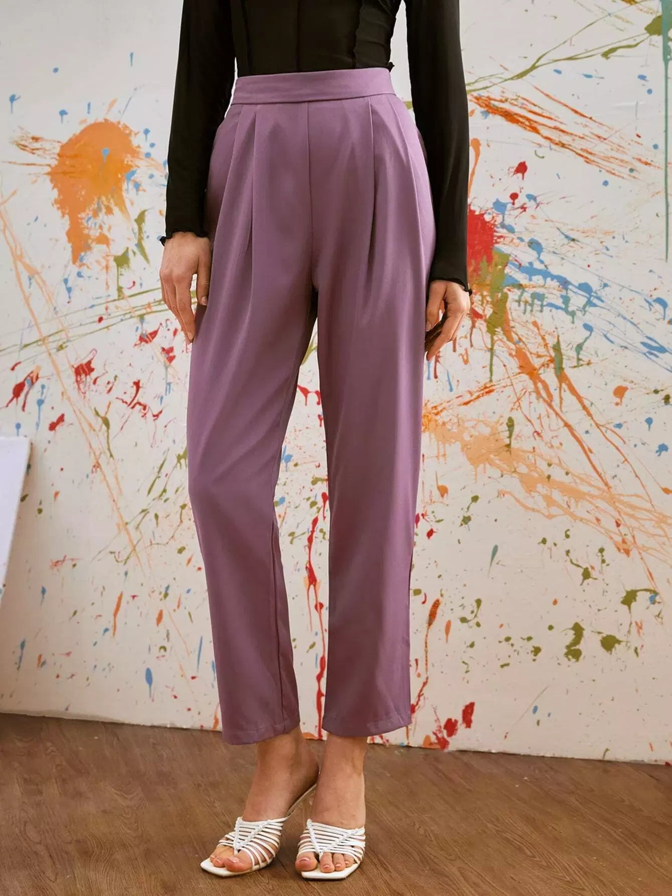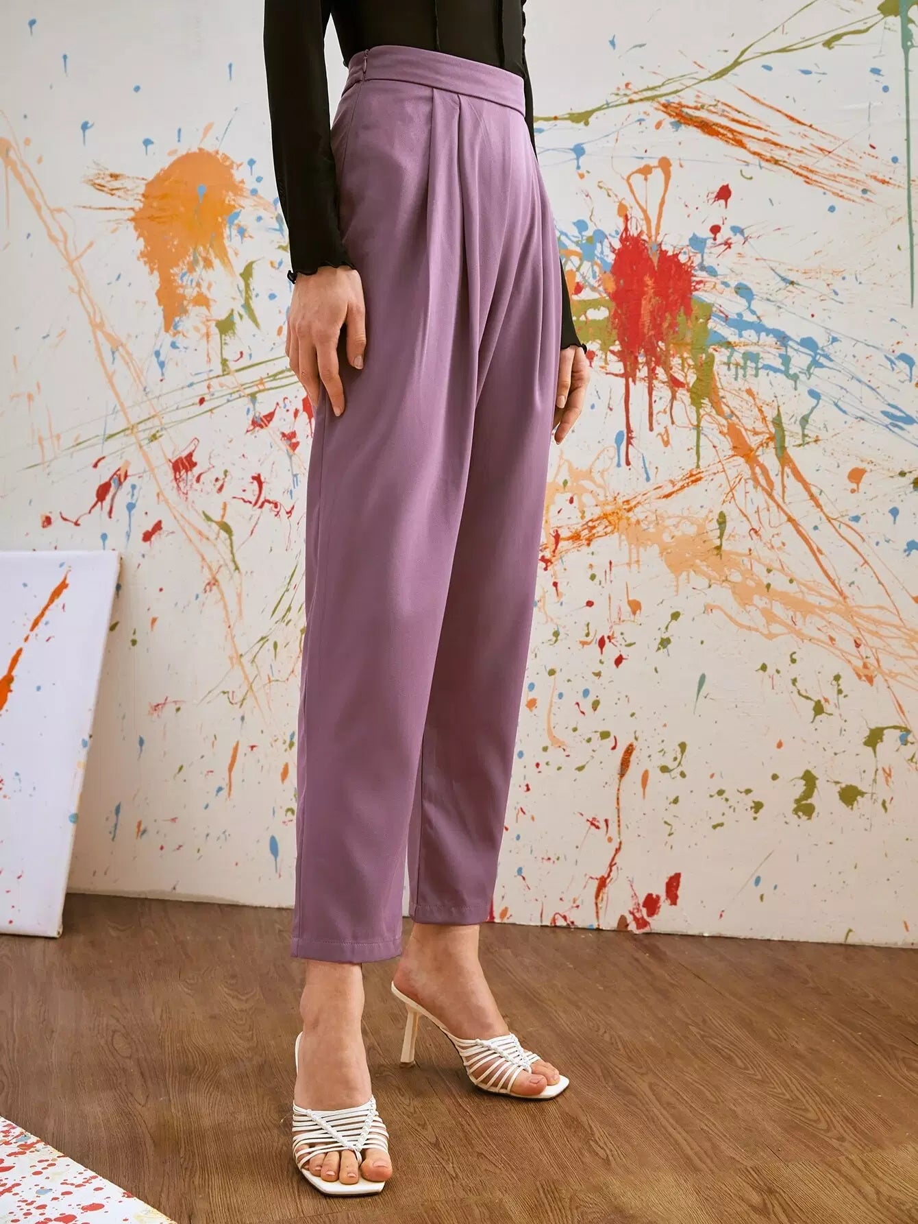 بنطلون بخصر عالٍ مطوي بطيات مطوية