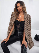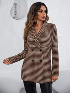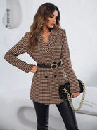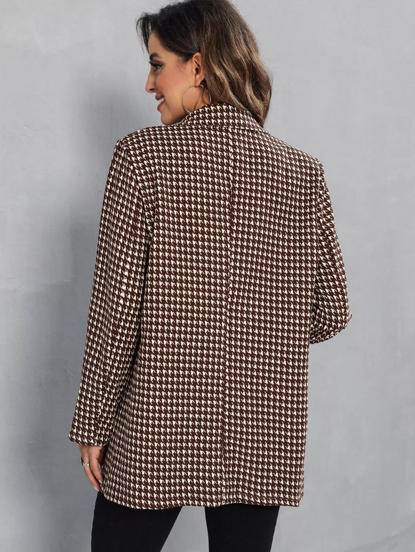 سترة بليزر بطبعة هاوندستوث مزدوجة الصدر بدون حزام