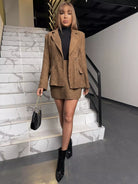 سترة سروال قصير بياقة بياقة على الياقة بغطاء للرأس بغطاء مزدوج الصدر