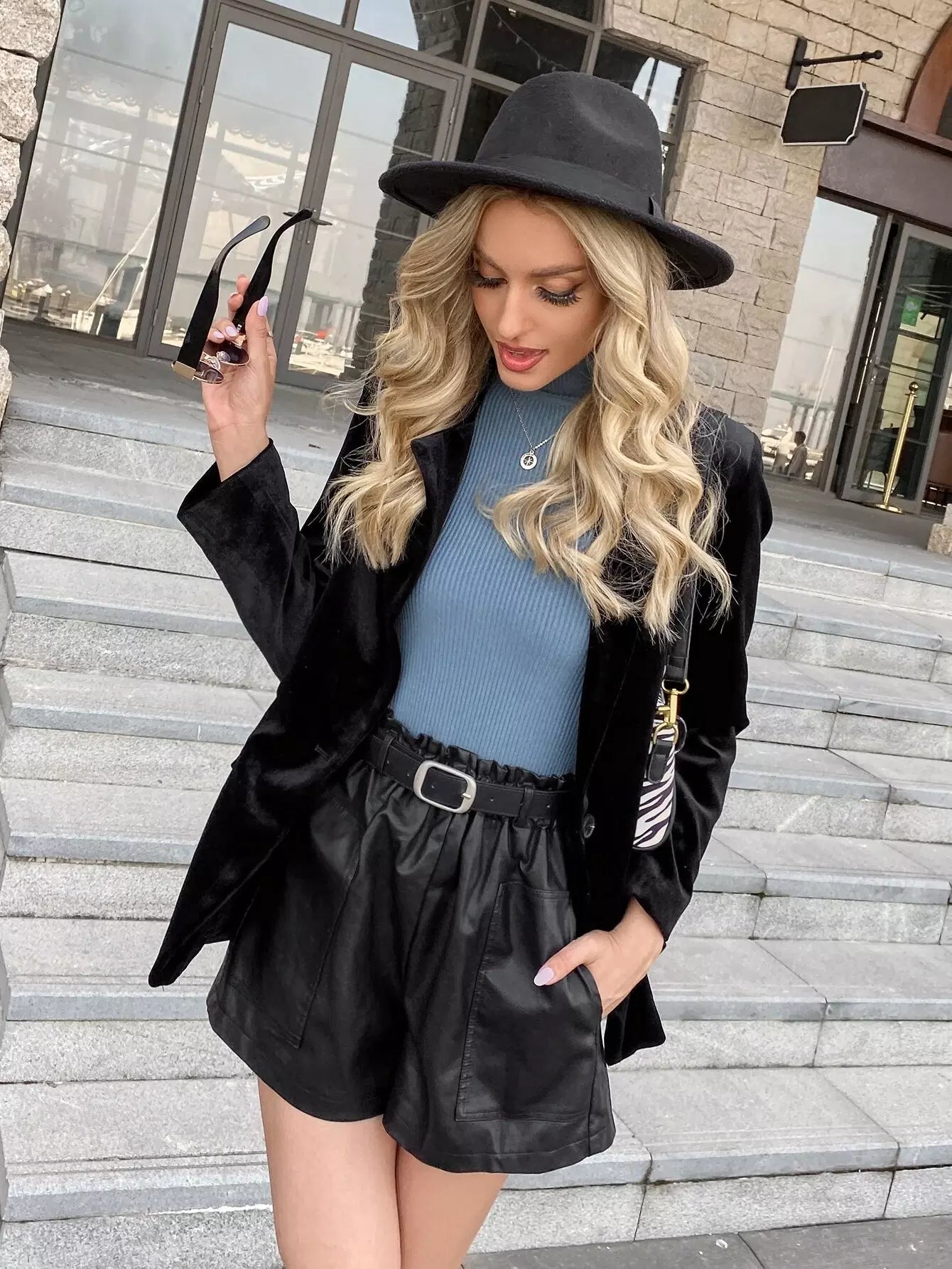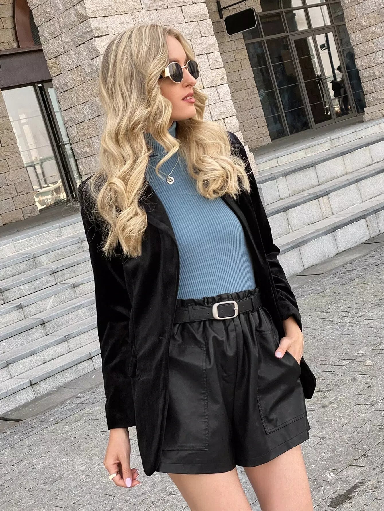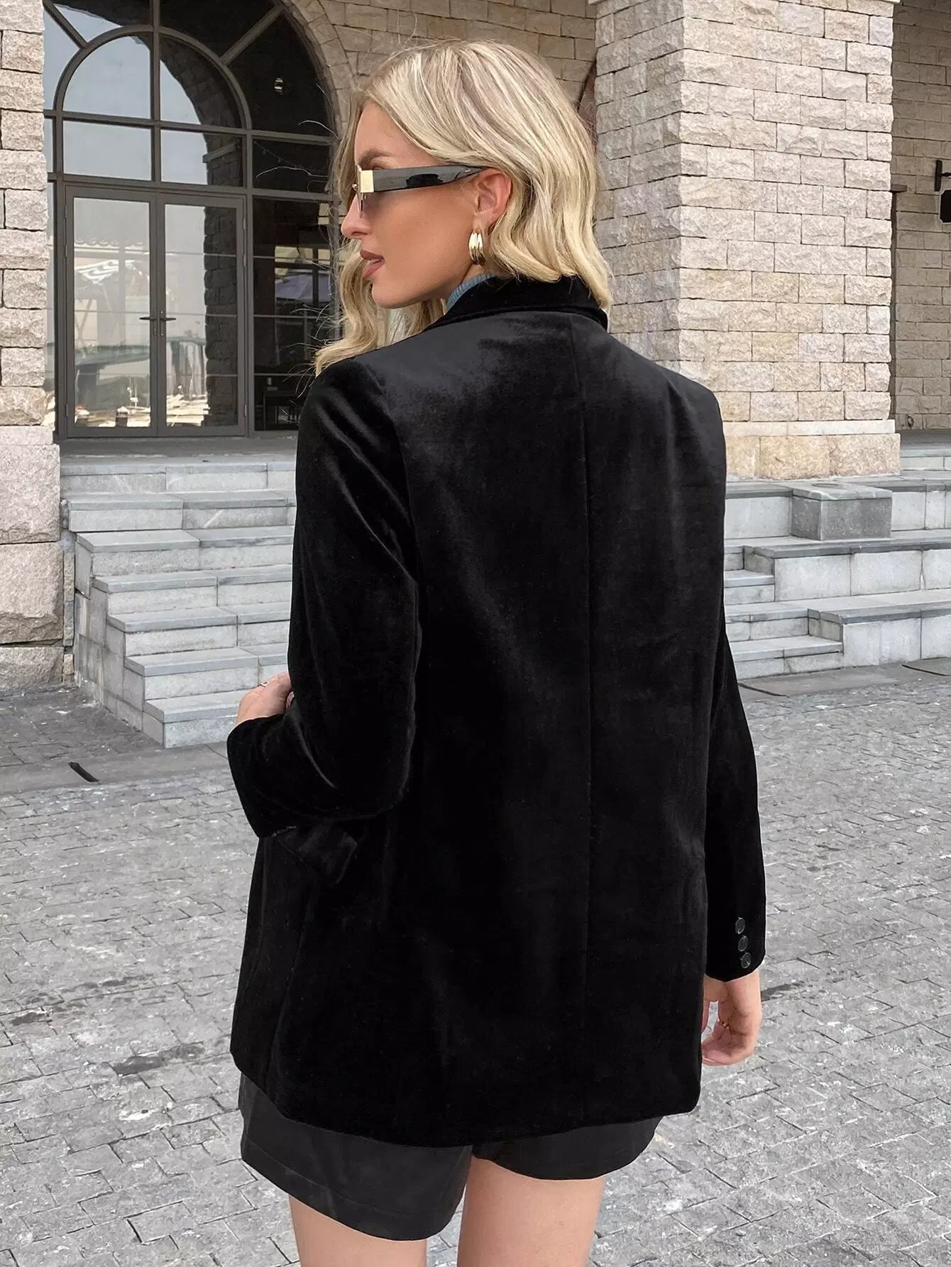 بليزر مخملي بياقة بياقة بياقة واحدة بأزرار مخملية