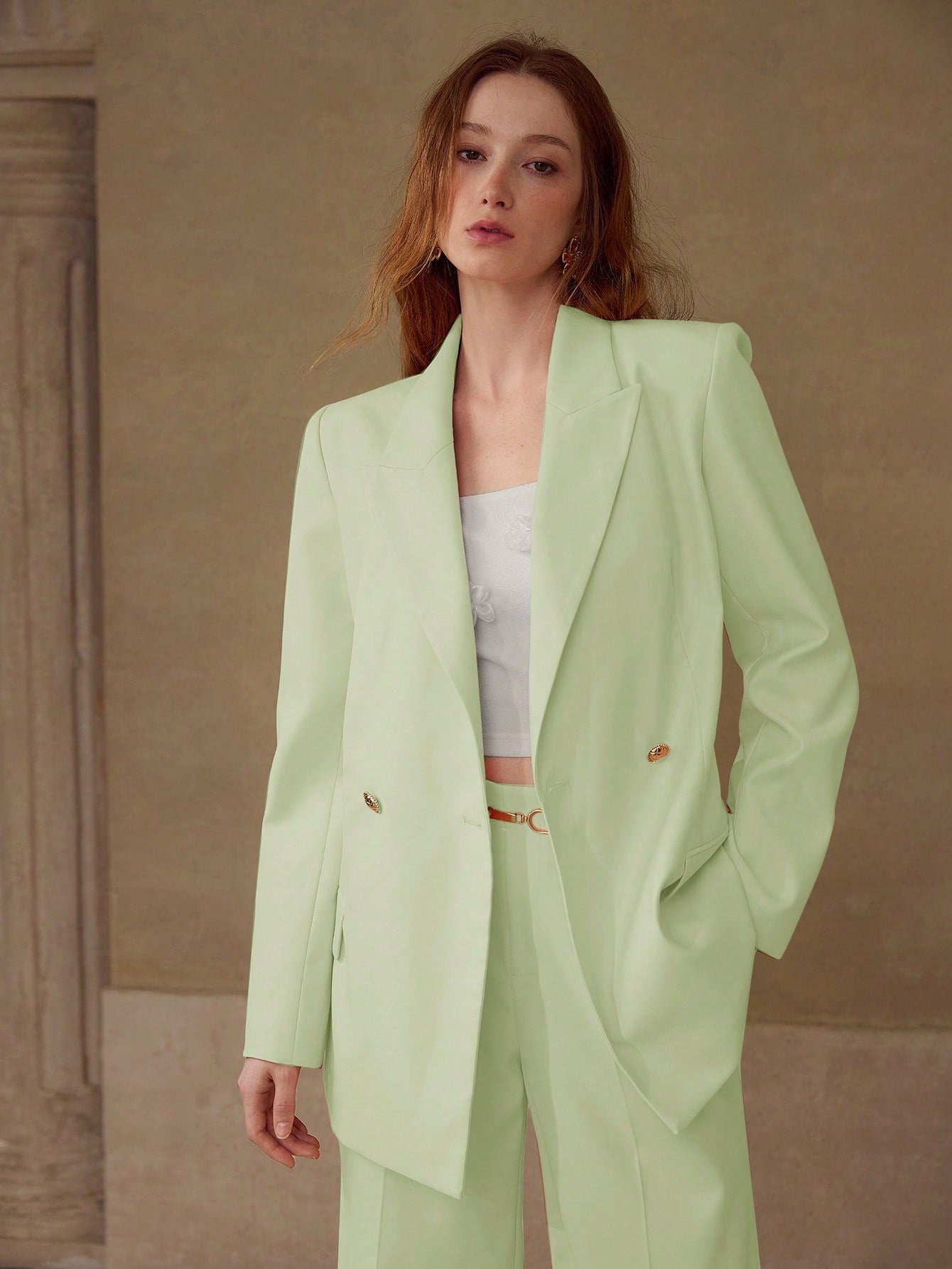 سترة MOTF PREMIUM مزدوجة الصدر مزينة بنقشة زهور بدون حزام
