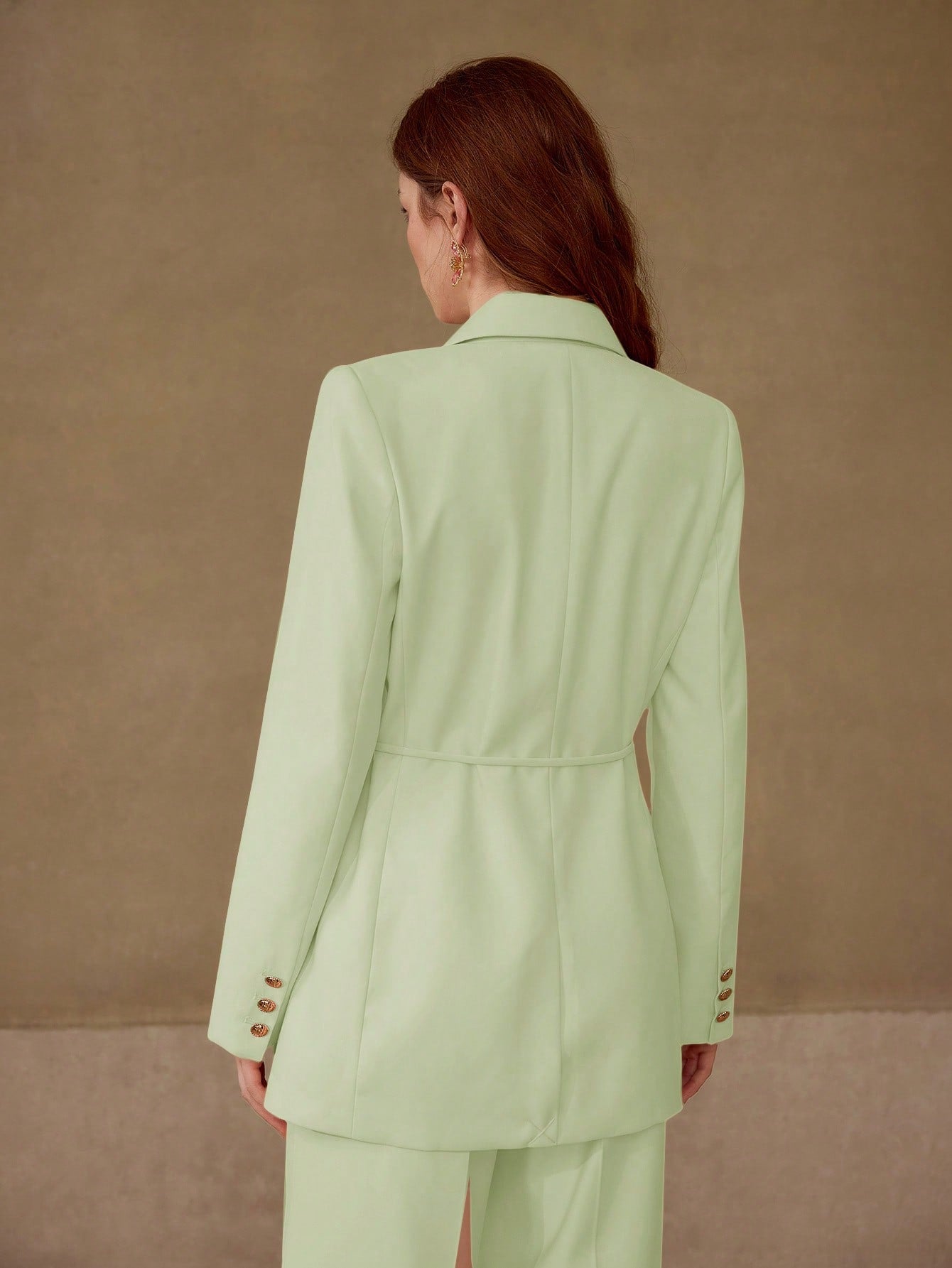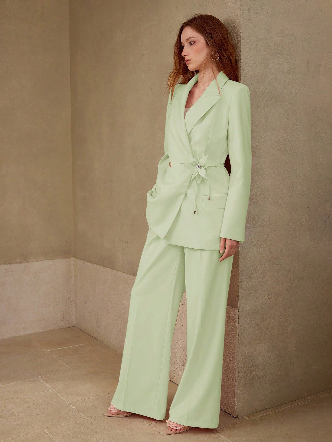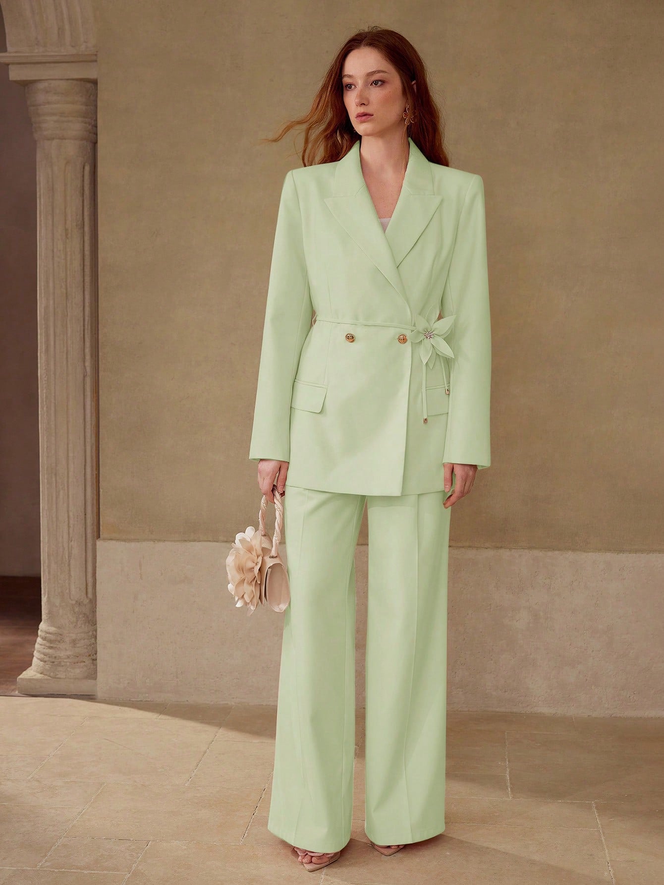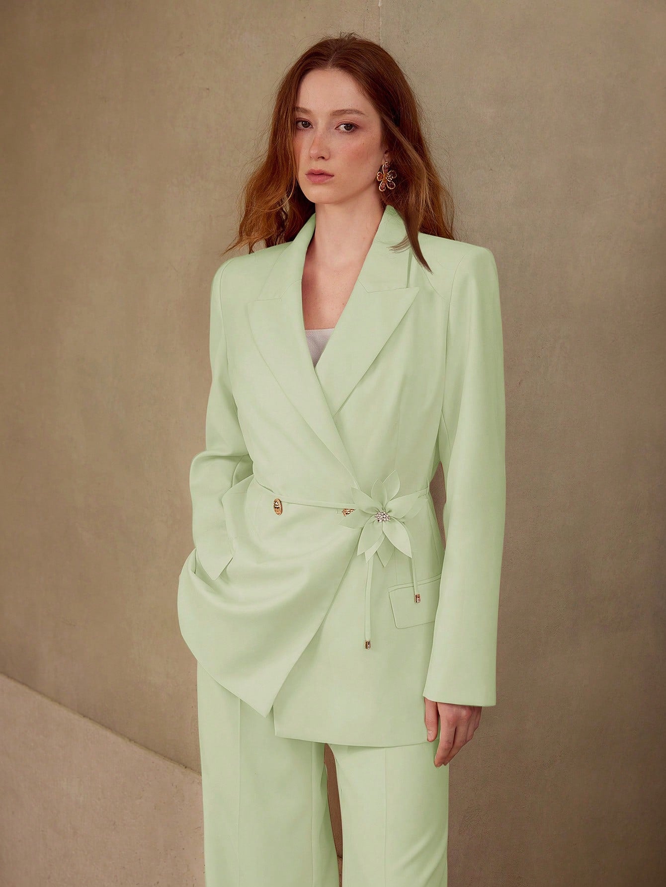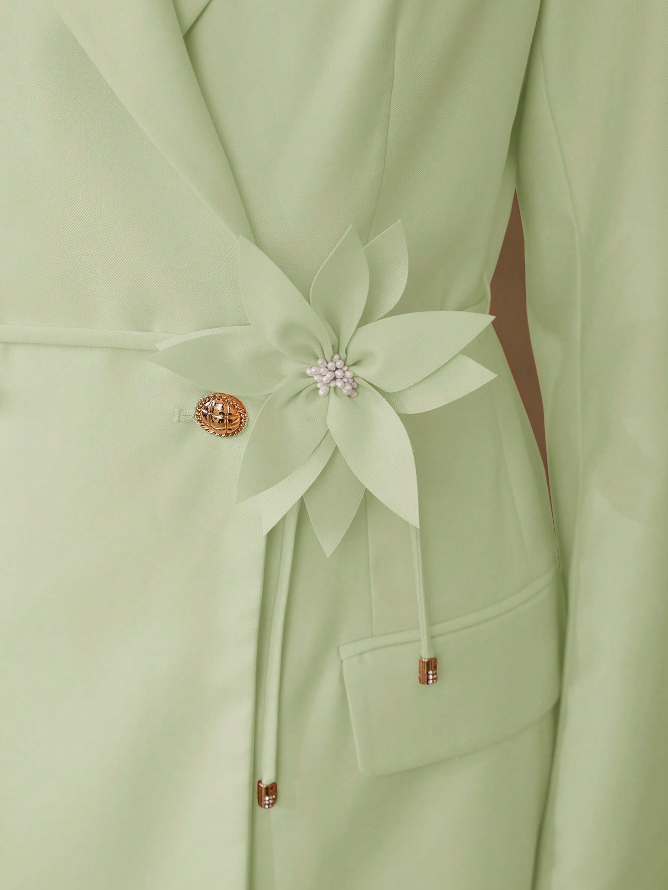 MOTF PREMIUM DOUBLE BREASTED STEREO FLORAL BELTED BLAZER